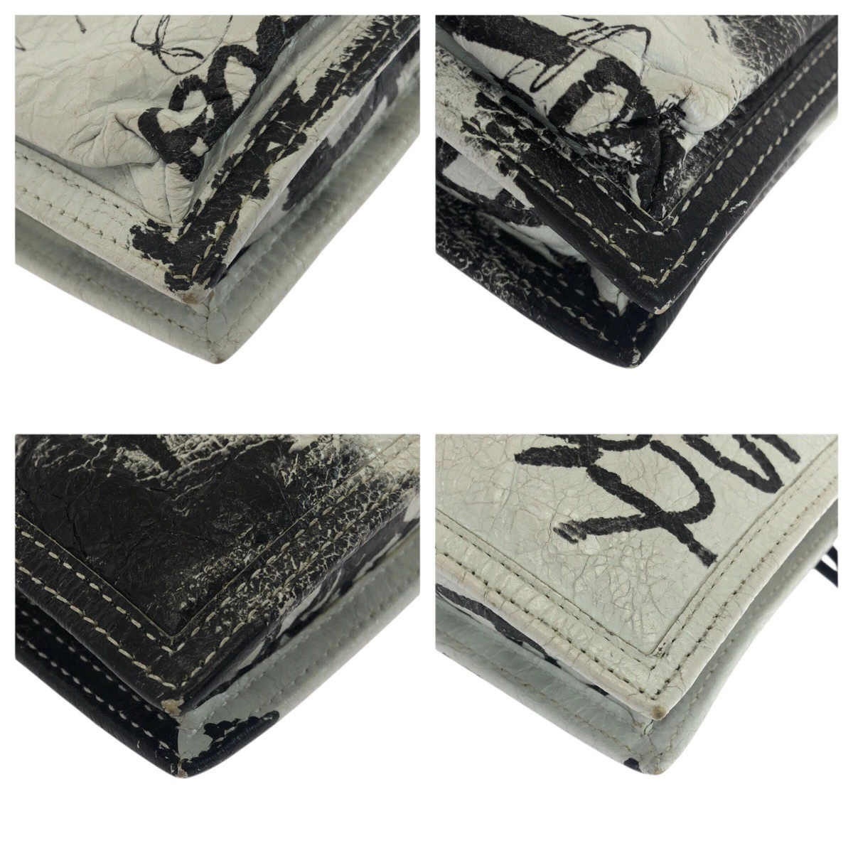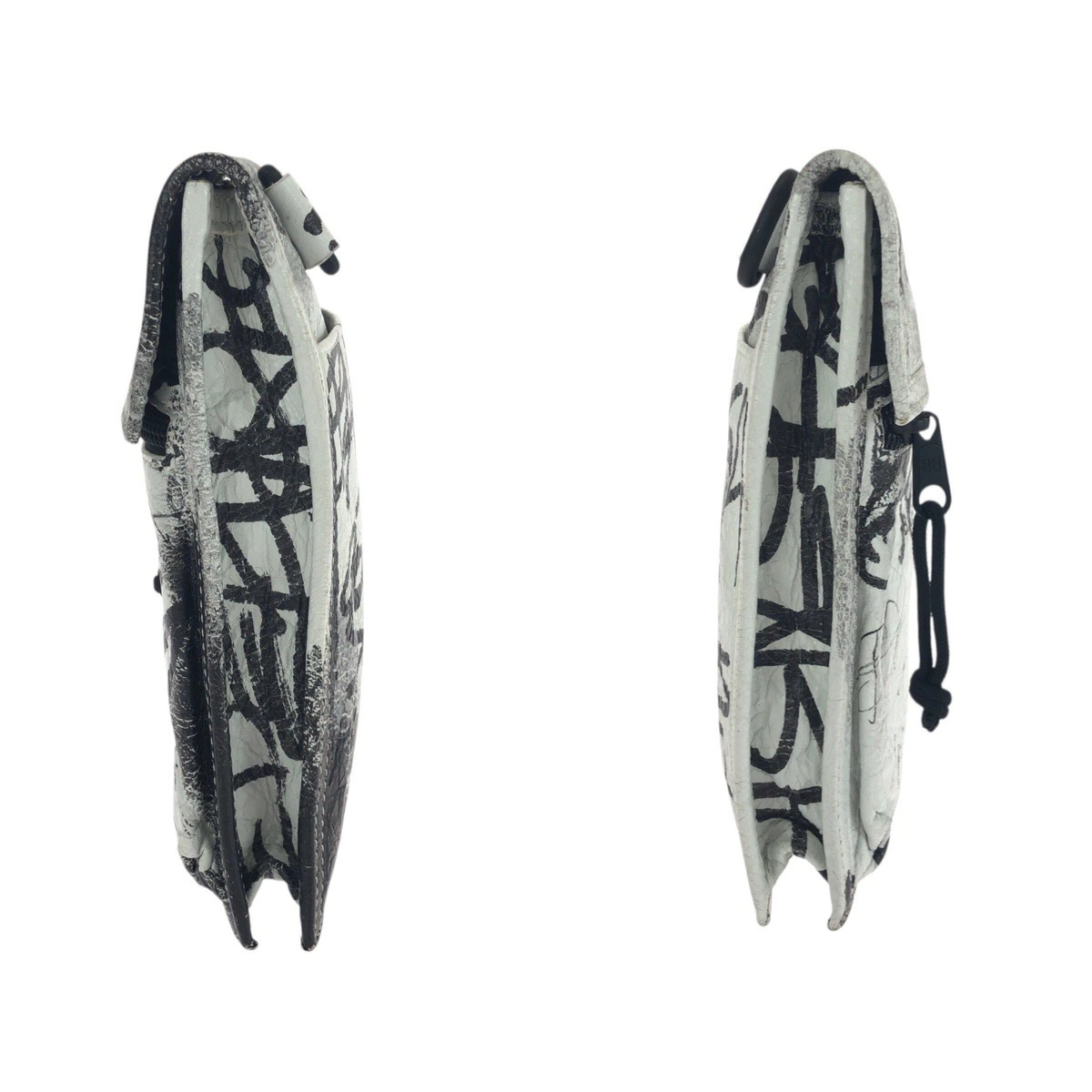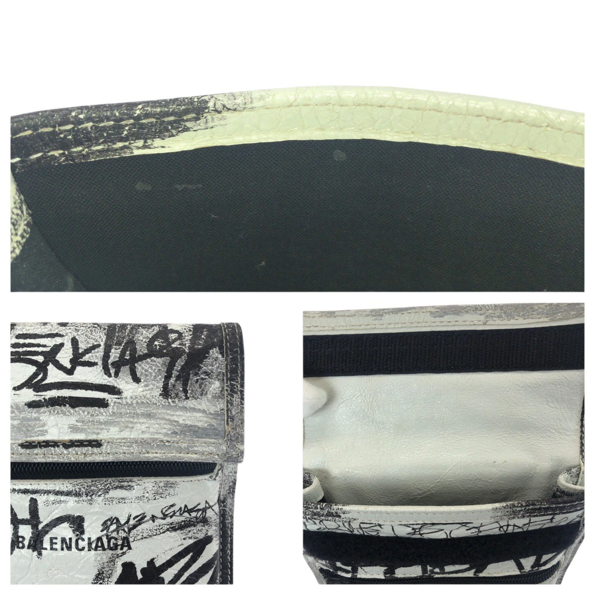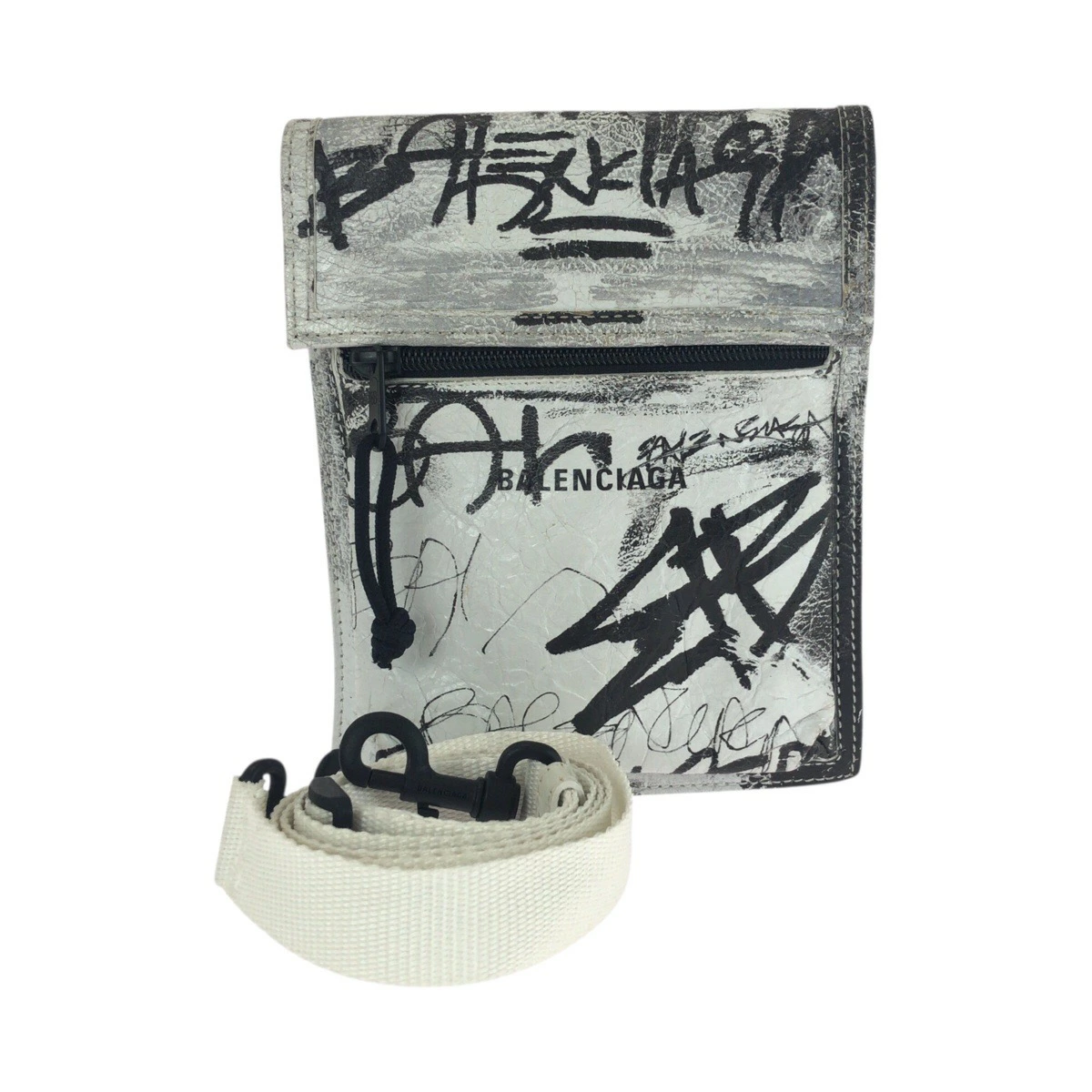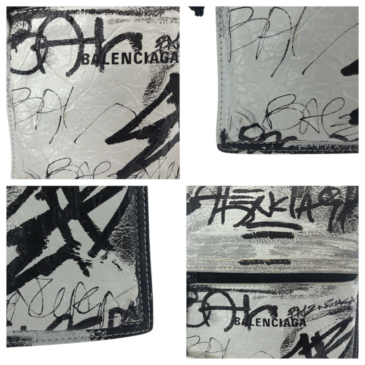 Excellent condition BALENCIAGA Graffiti Explorer white and black leather shoulder bag (655982) for women (506292) [Pre-owned]