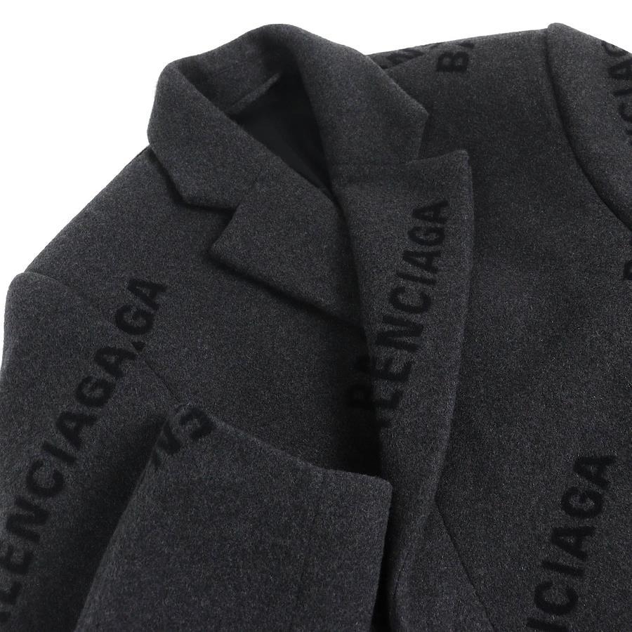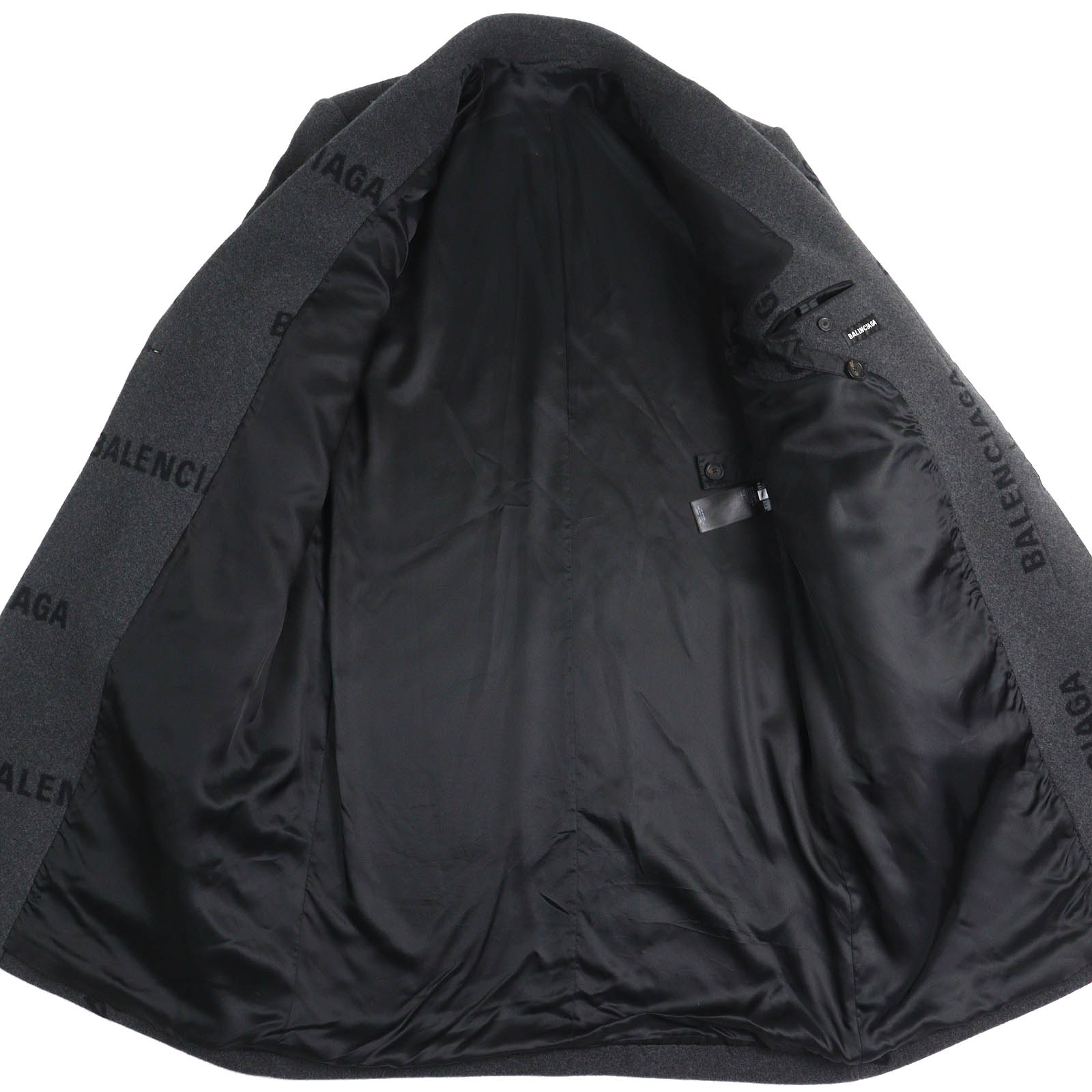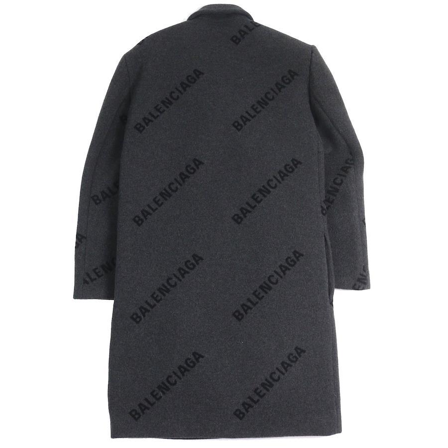 Excellent condition BALENCIAGA SHIFTED COAT 595272, 100% cashmere, all-over logo print, long coat, charcoal gray and black, size 46, made in Italy, authentic, men's [pre-owned]