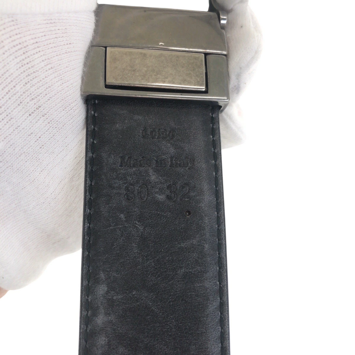 | サイズ | ベルト全長(バックル含む):約95cm ベルト幅:約3.5cm ウエスト:約75cm ~ 85cm 穴の数:5 バックル縦:約4.5cm バックル横:約7.5cm 表記サイズ:32 |