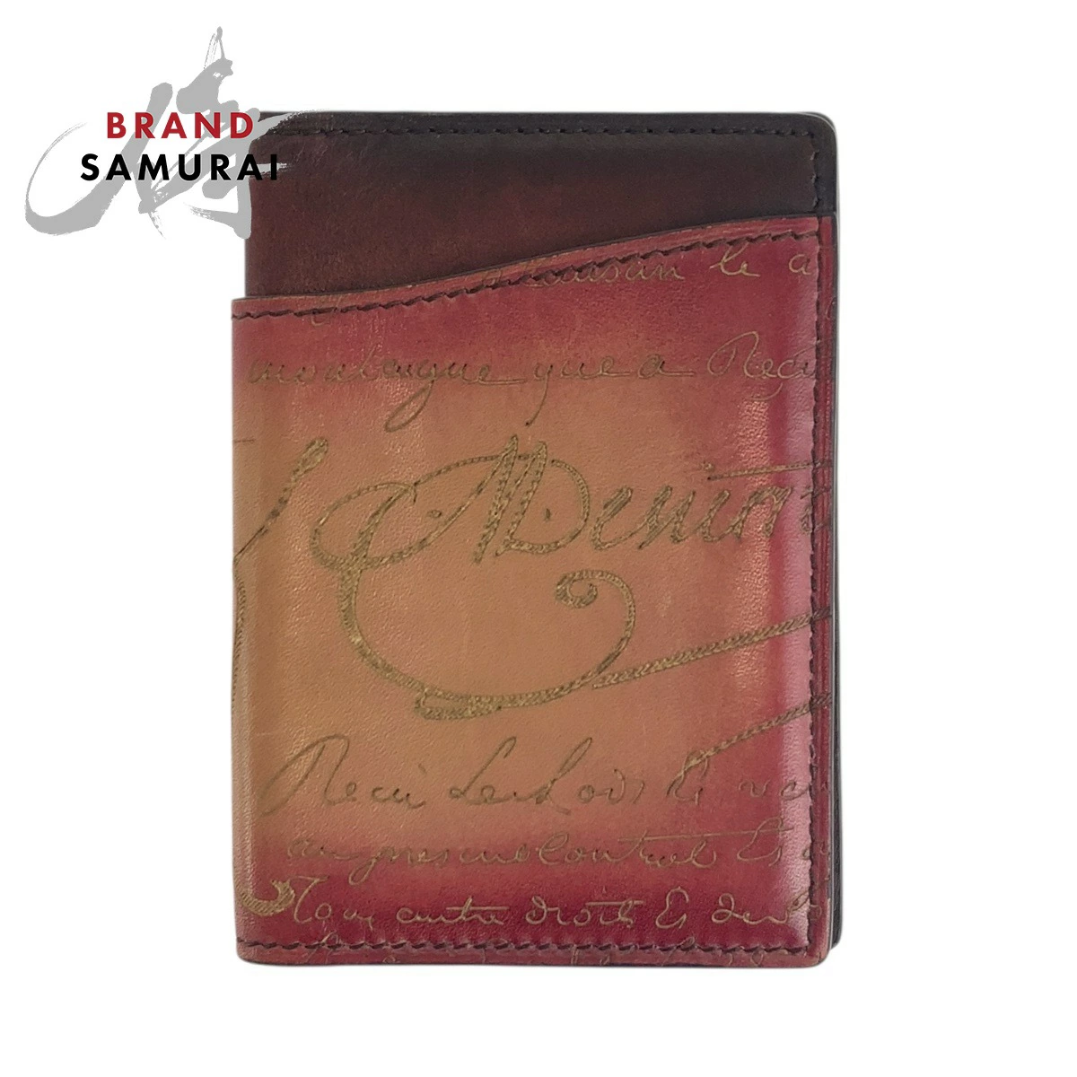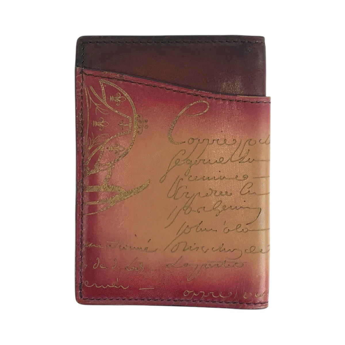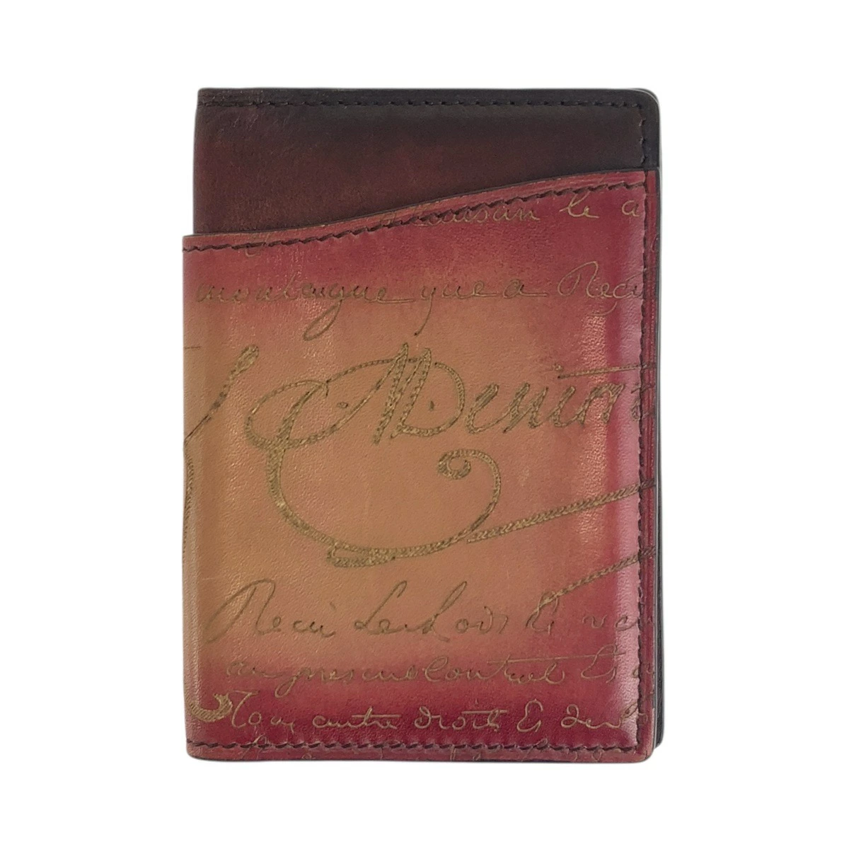 Excellent condition Berluti Calligraphy Scritto Brown and Bordeaux Leather F1213 Card Case/Business Card Holder for Men, 504291 [Pre-owned]