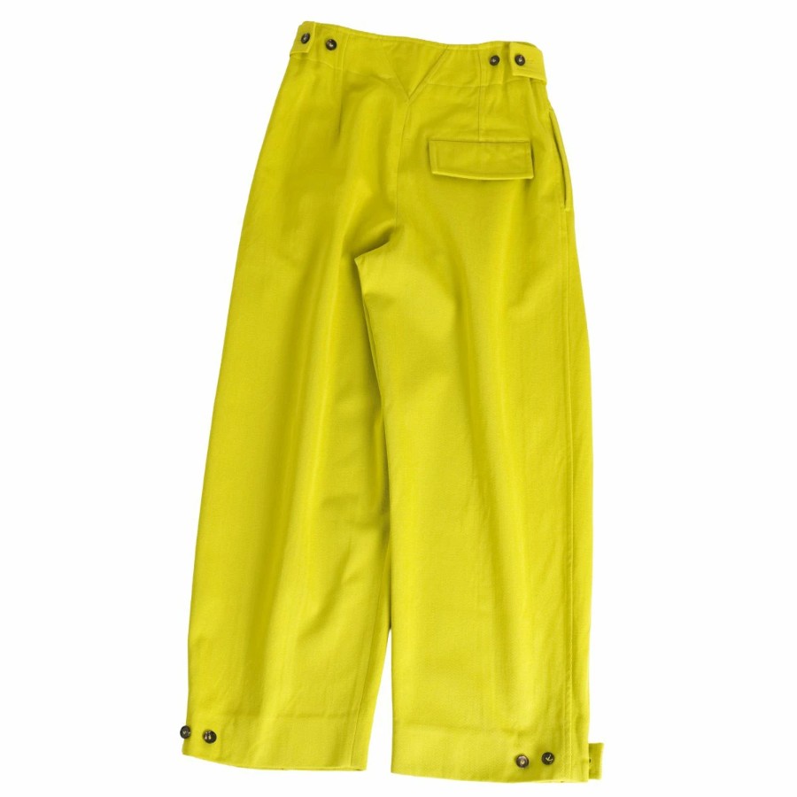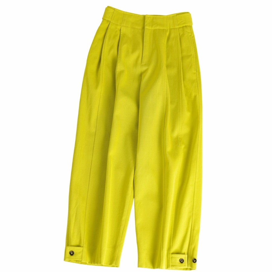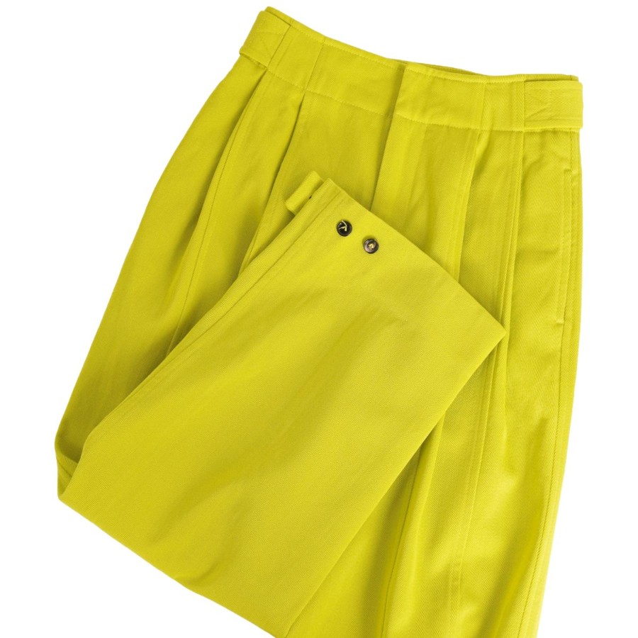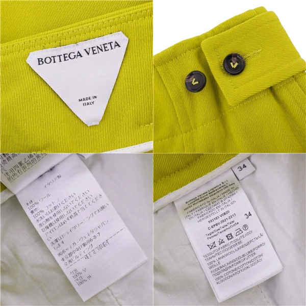 ボッテガヴェネタ BOTTEGA VENETA パンツ 2021 ワイドパンツ ロングパンツ ウール ボトムス レディース イタリア製 ライムイエロー サイズ34(S相当)