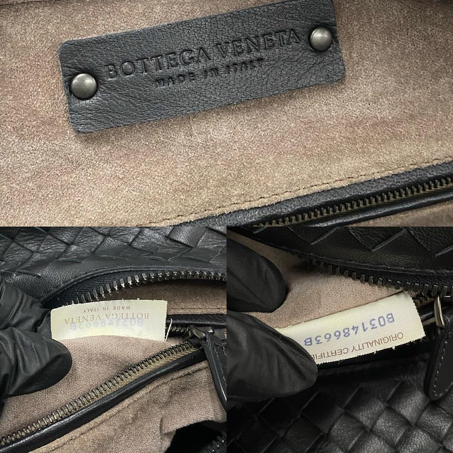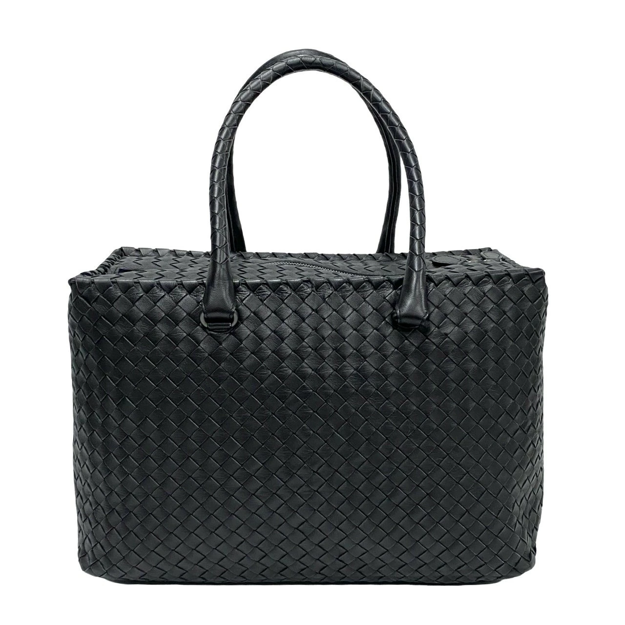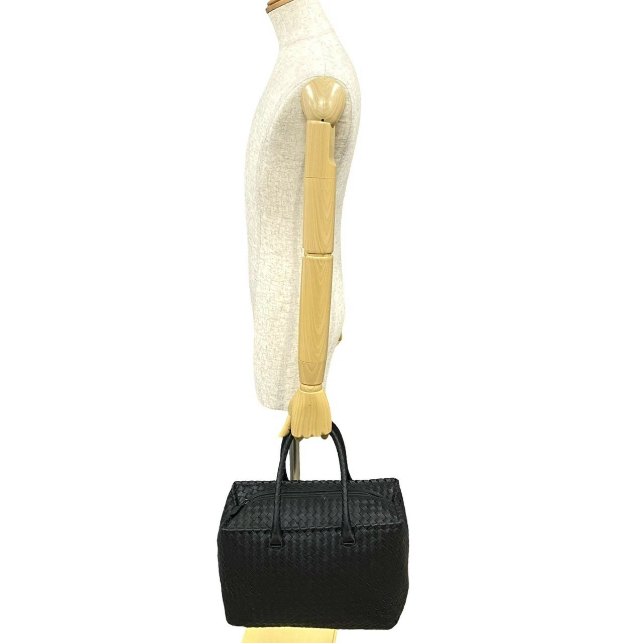 Excellent condition BOTTEGA VENETA Intrecciato leather Boston bag, handbag, or tote bag in black (product number 63537) [pre-owned]