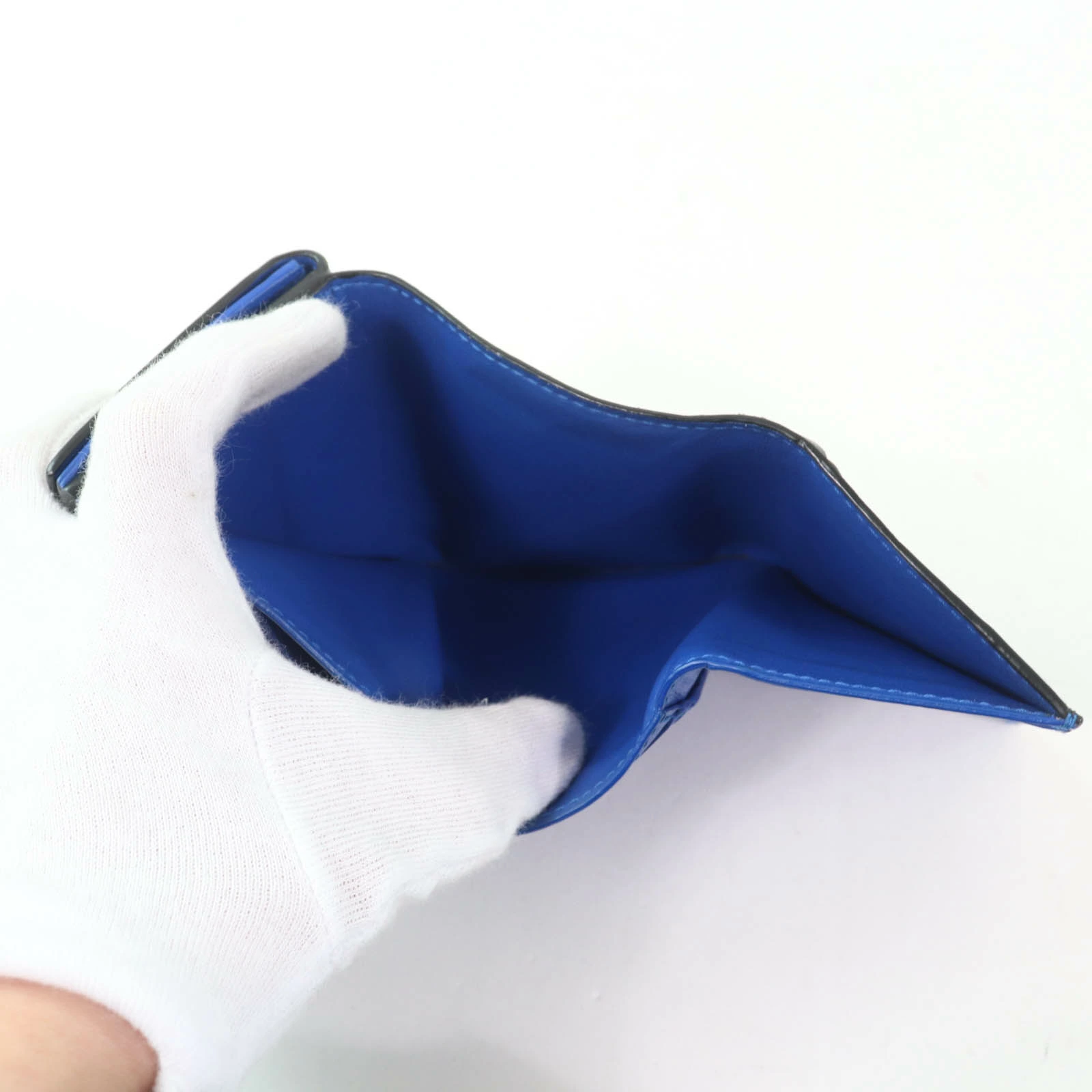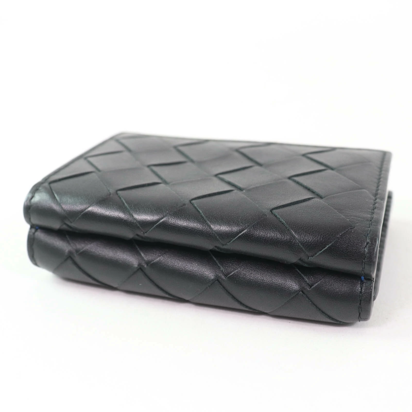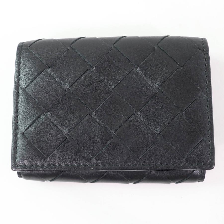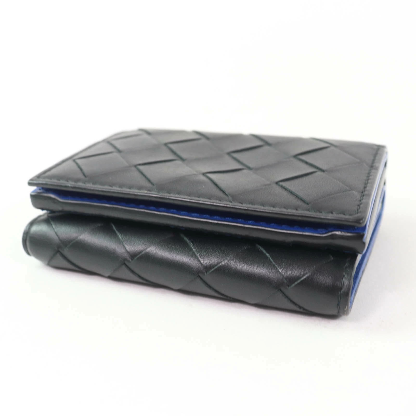 Excellent condition: Bottega Veneta leather intrecciato Tiny tri-fold wallet, compact wallet/purse, black and blue, box and dust bag included, made in Italy, women's [pre-owned]