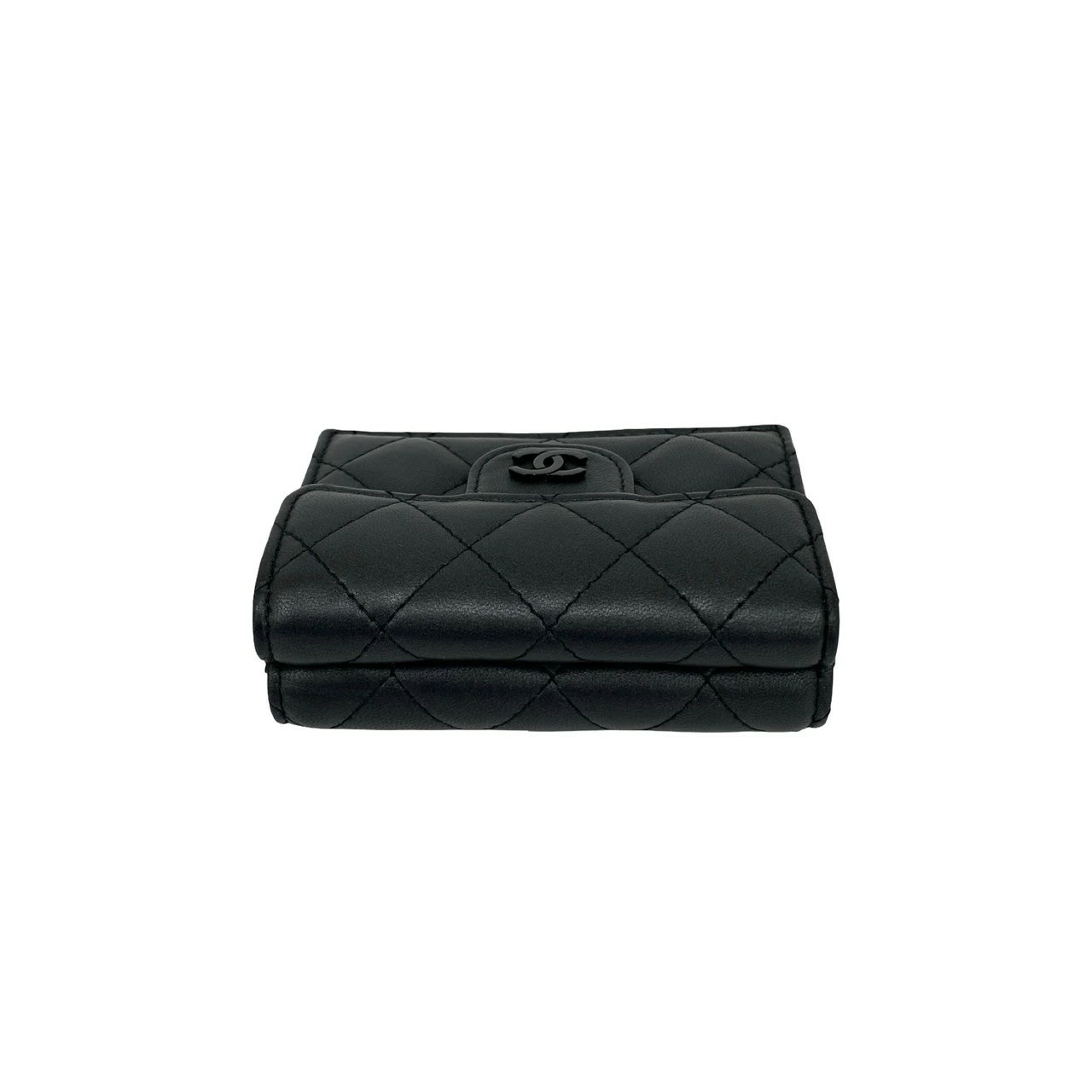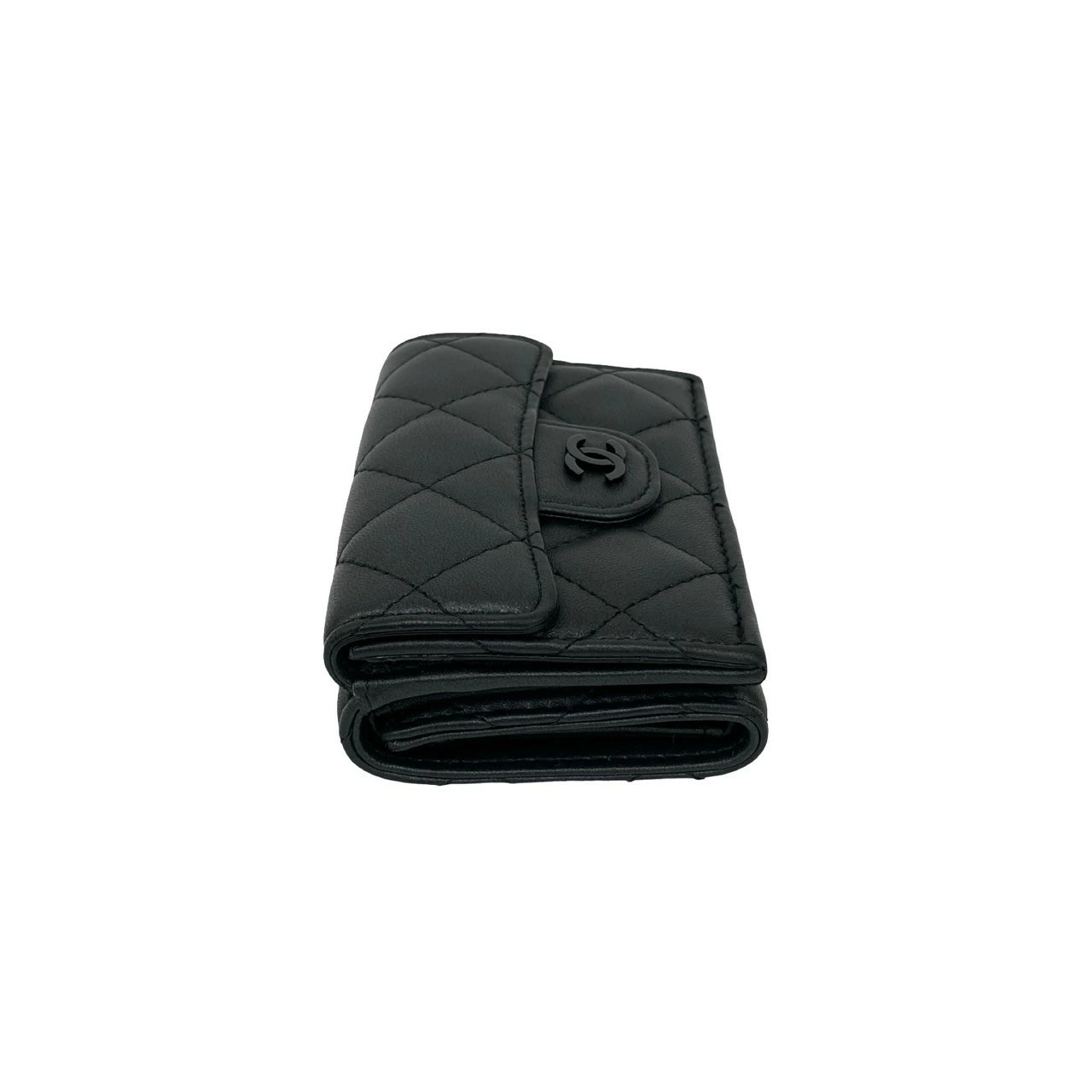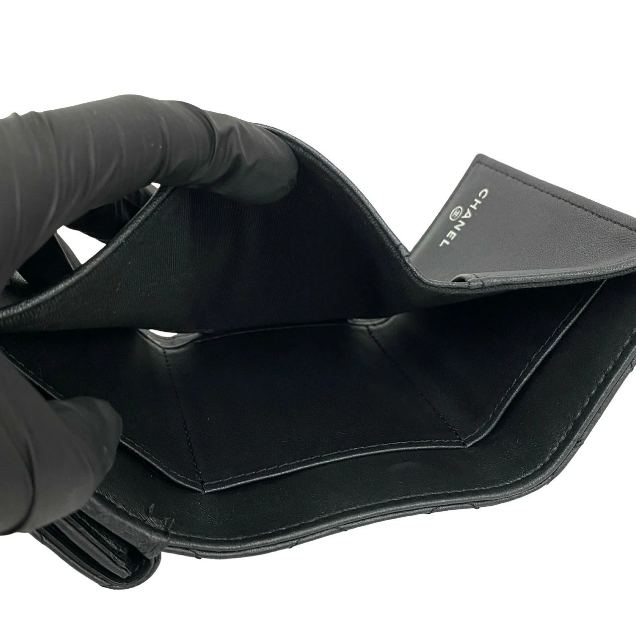 Excellent condition, box and bag included, sticker attached, random serial number, CHANEL Matelasse Coco lambskin leather tri-fold wallet in metallic black, e2140 [pre-owned]