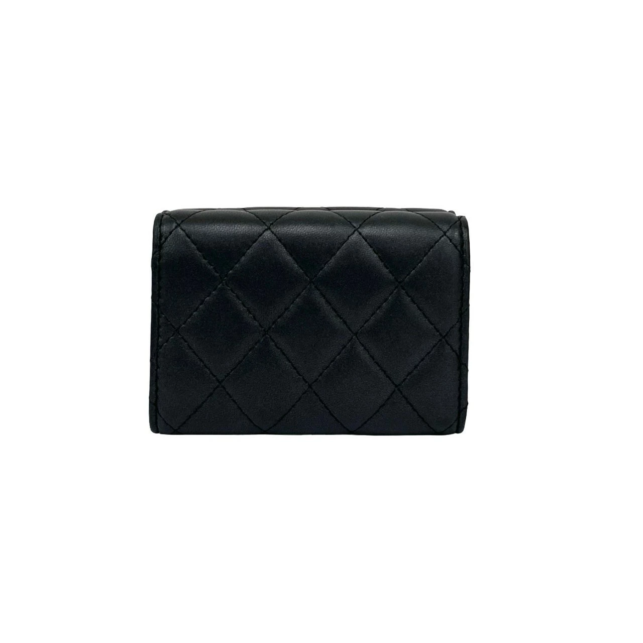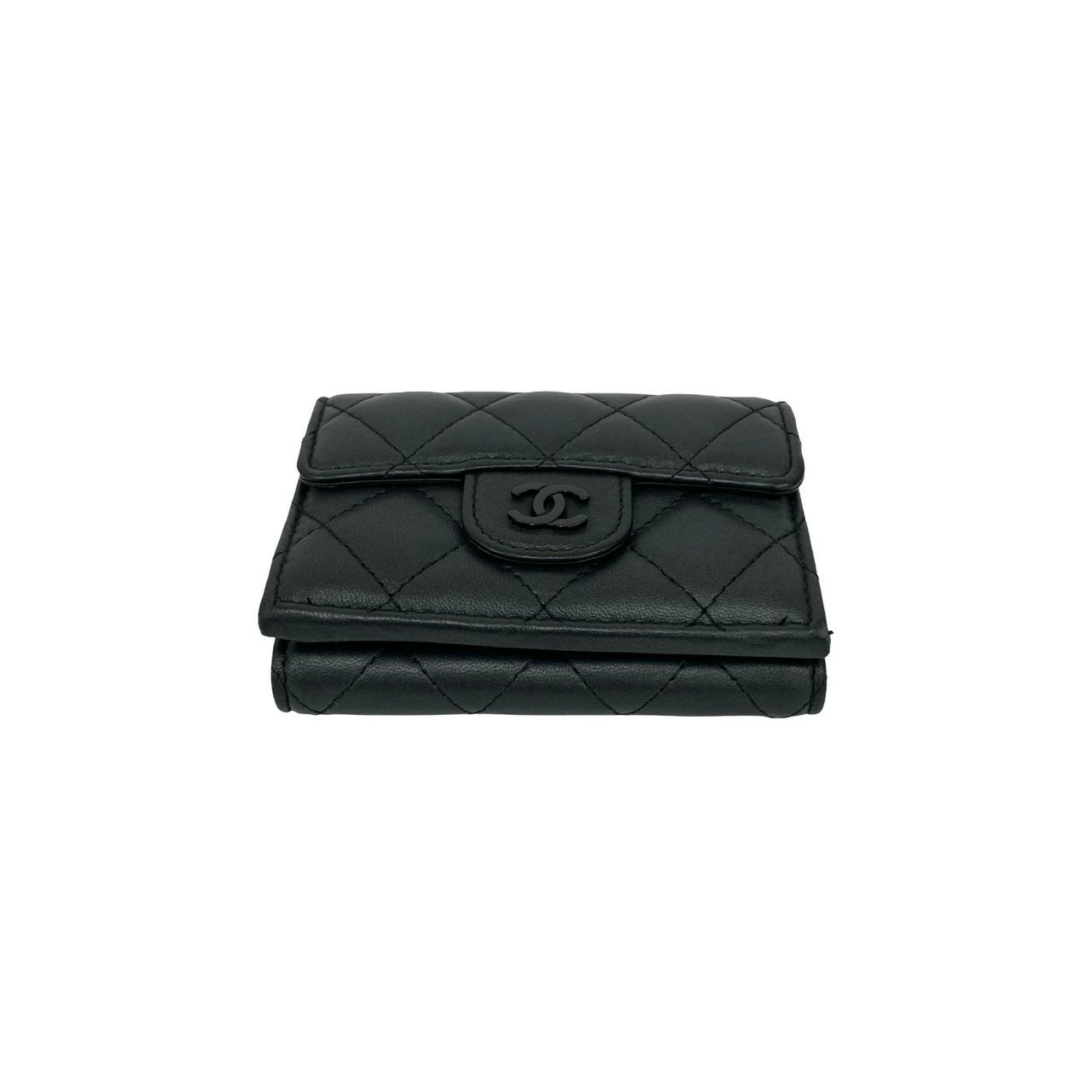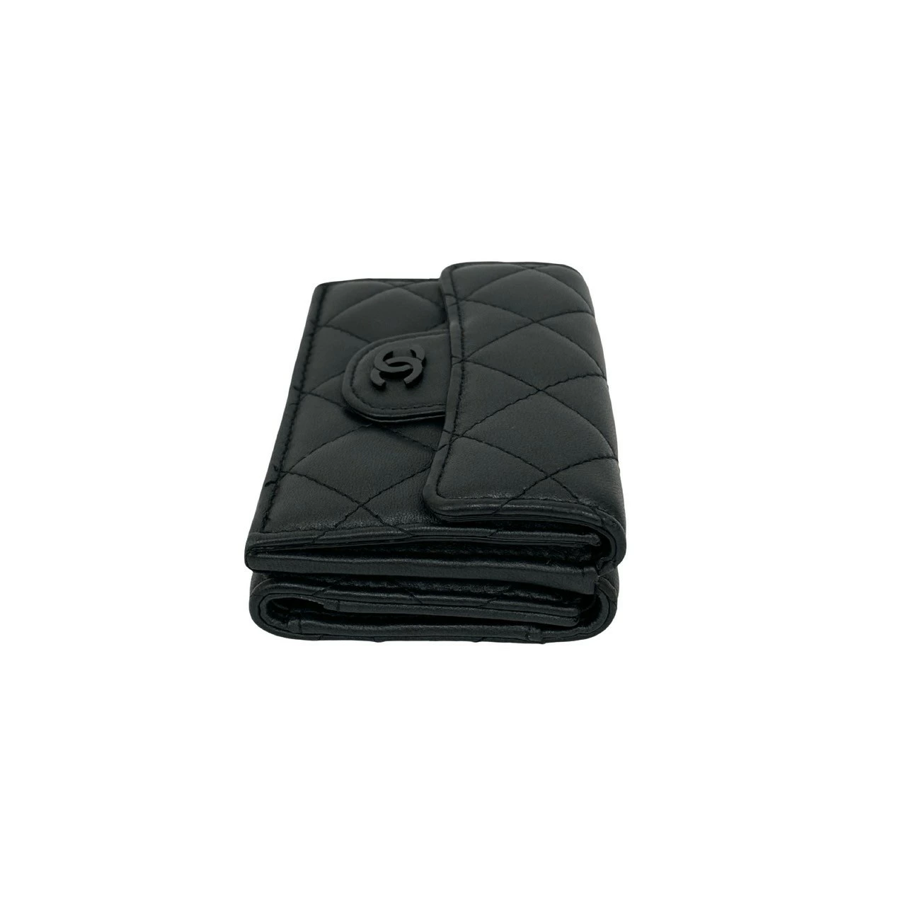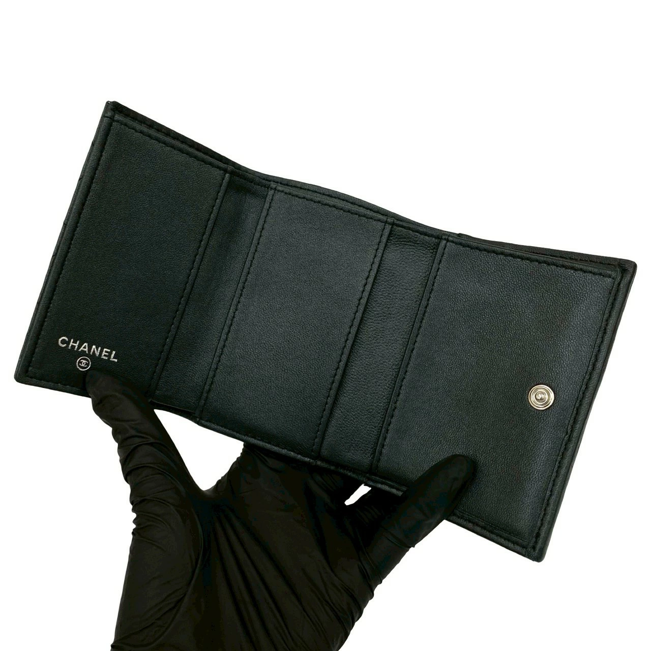 Excellent condition, box and bag included, sticker attached, random serial number, CHANEL Matelasse Coco lambskin leather tri-fold wallet in metallic black, e2140 [pre-owned]