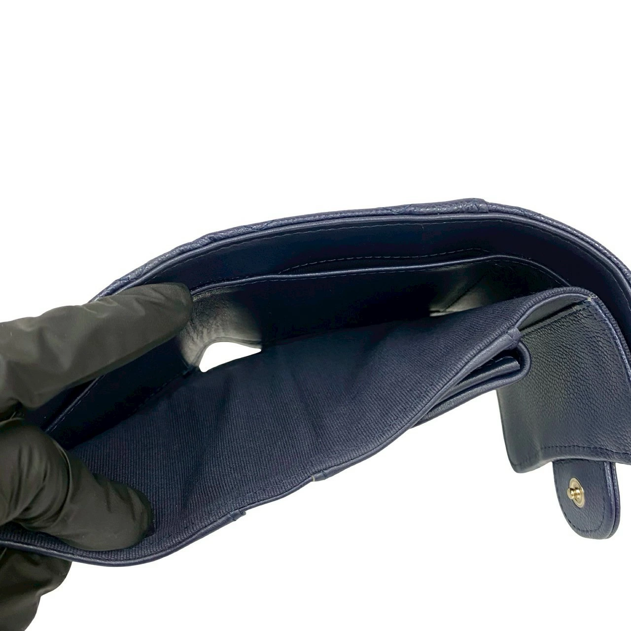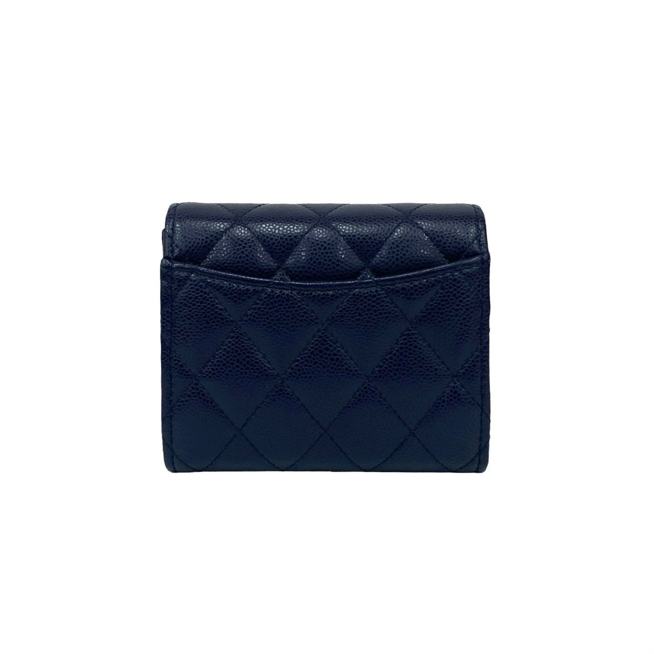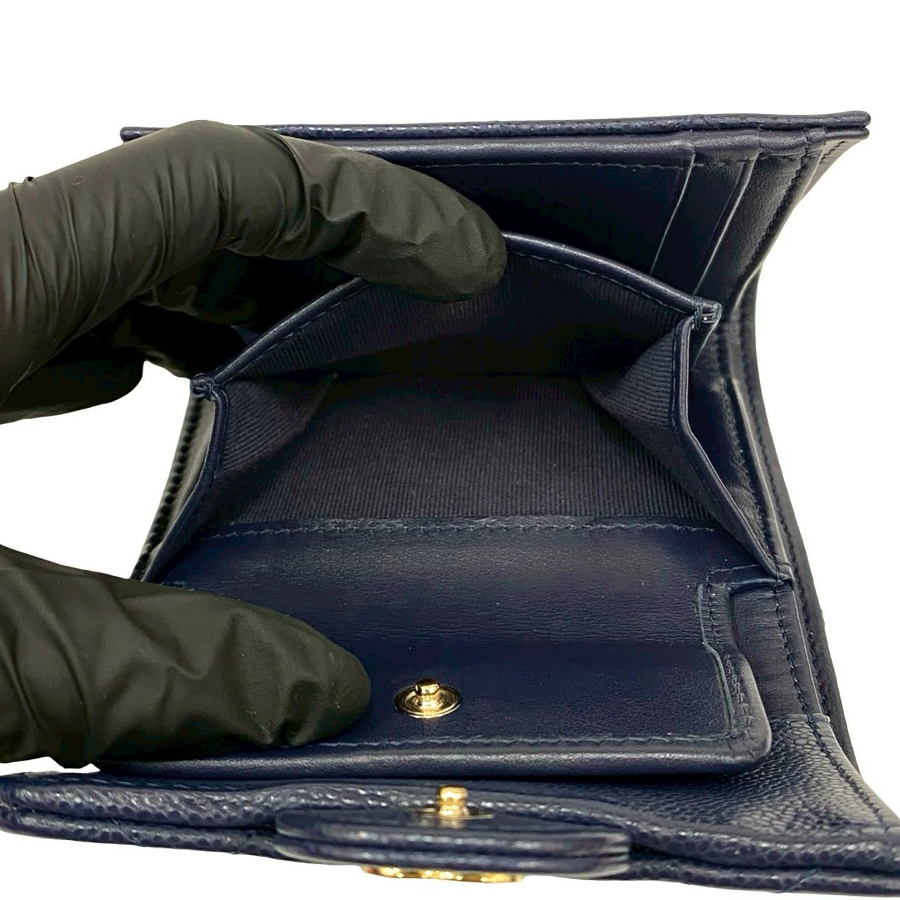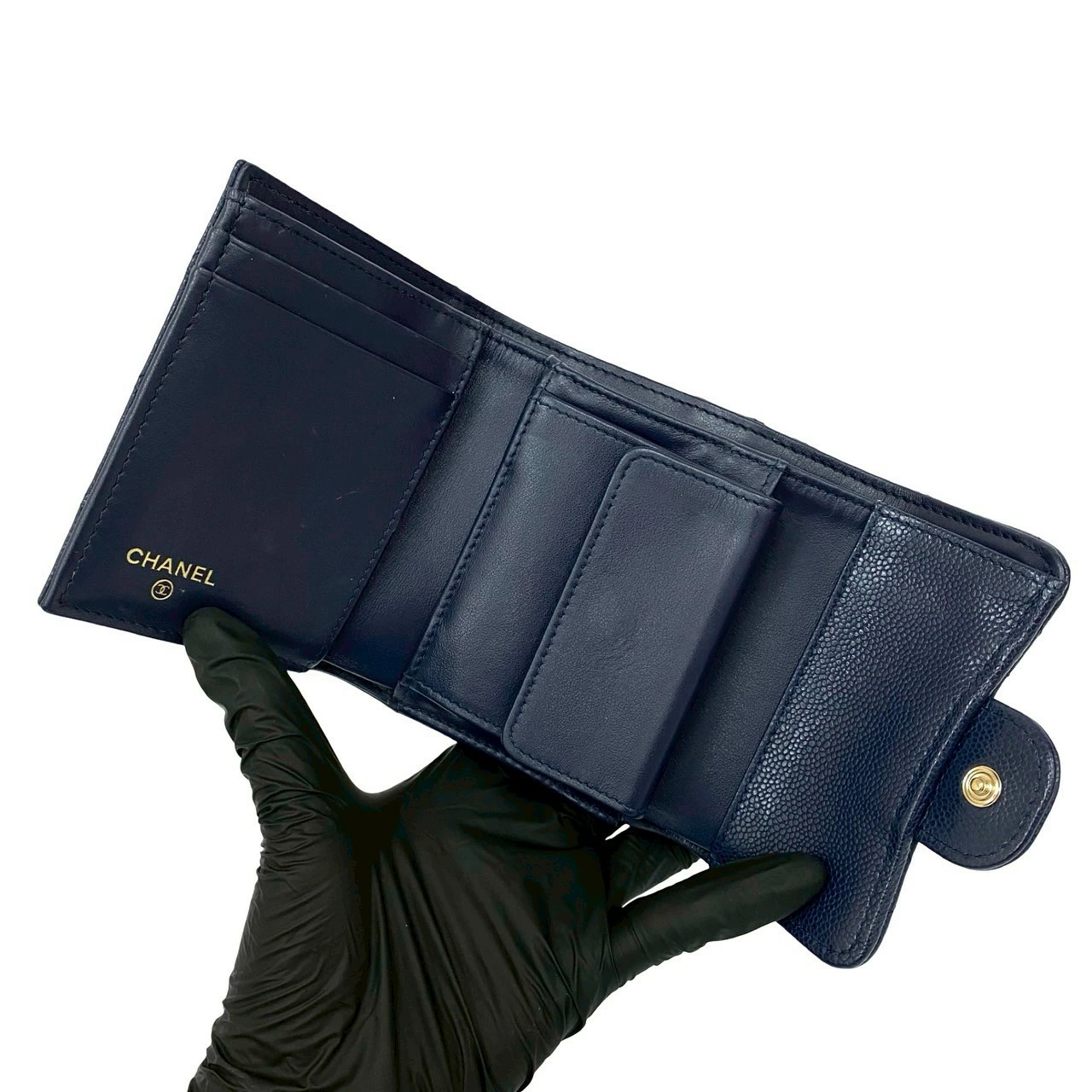 Excellent condition, box and bag included, sticker attached, random serial number, CHANEL Matelasse Coco caviar leather tri-fold wallet, navy, 34422 [pre-owned]