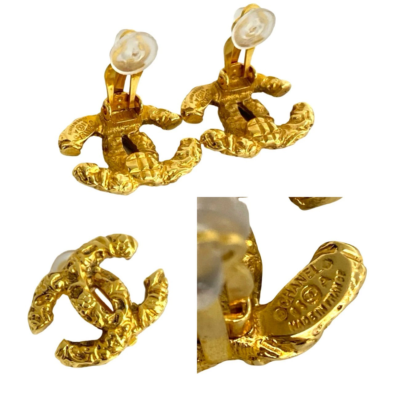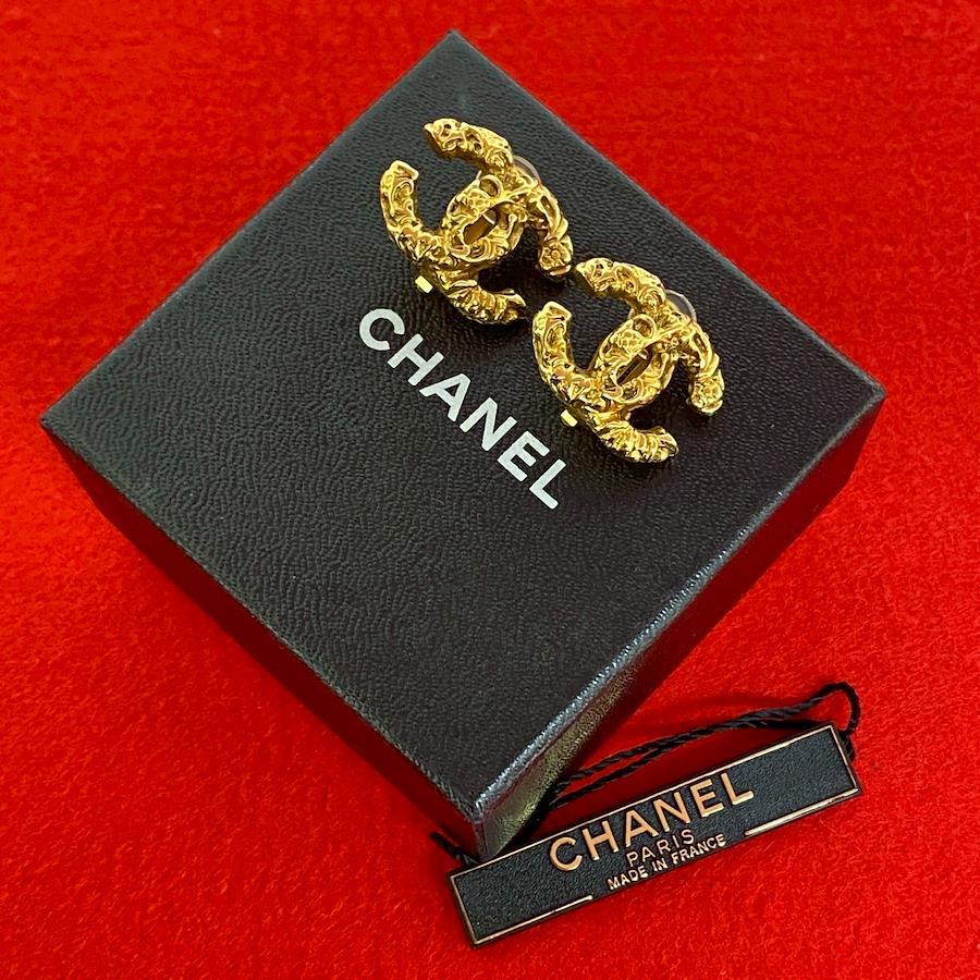 Excellent condition, box included. CHANEL vintage Coco Mark motif earrings and ear cuff, gold, 16506. [Pre-owned]
