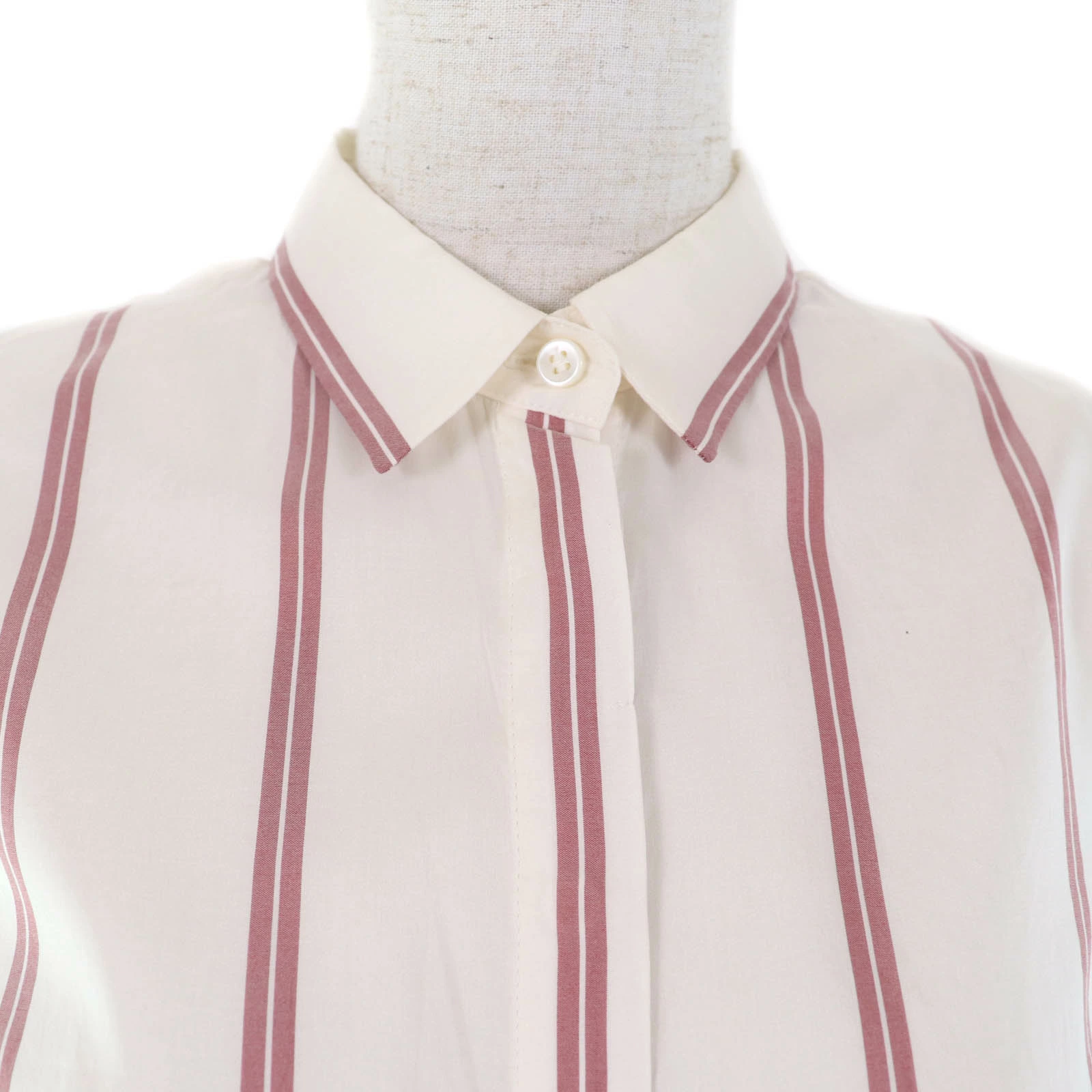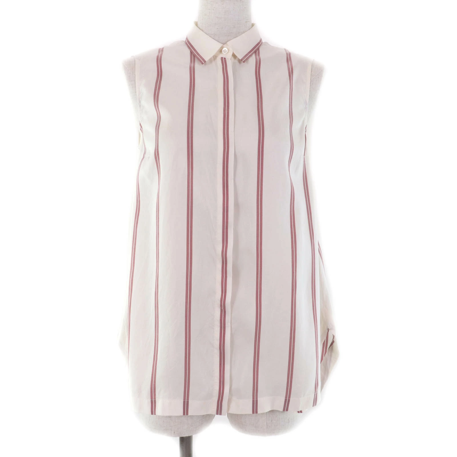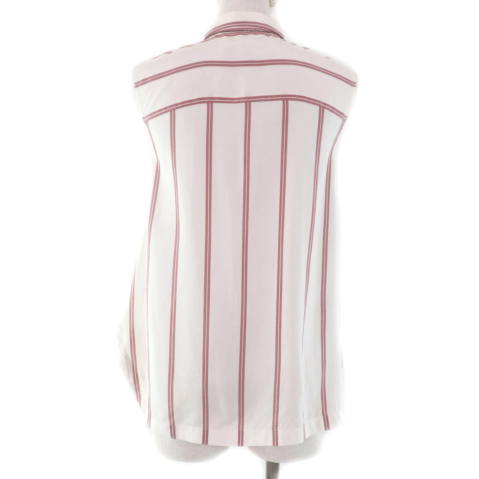 Excellent condition Brunello Cucinelli 100% silk striped sleeveless shirt, ivory, size XS, made in Italy, women's [pre-owned]