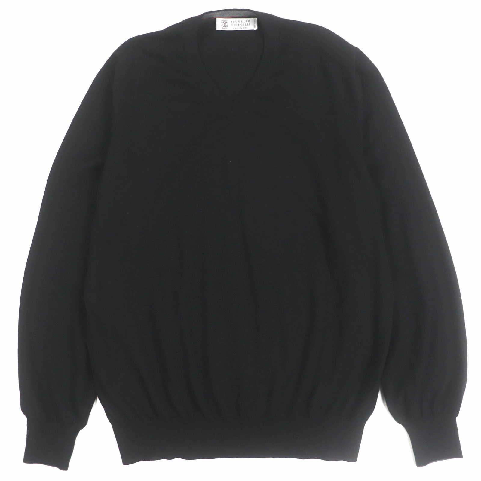 Excellent condition: Brunello Cucinelli wool and cashmere V-neck pullover knit sweater, black, size 50, made in Italy, men's [pre-owned]