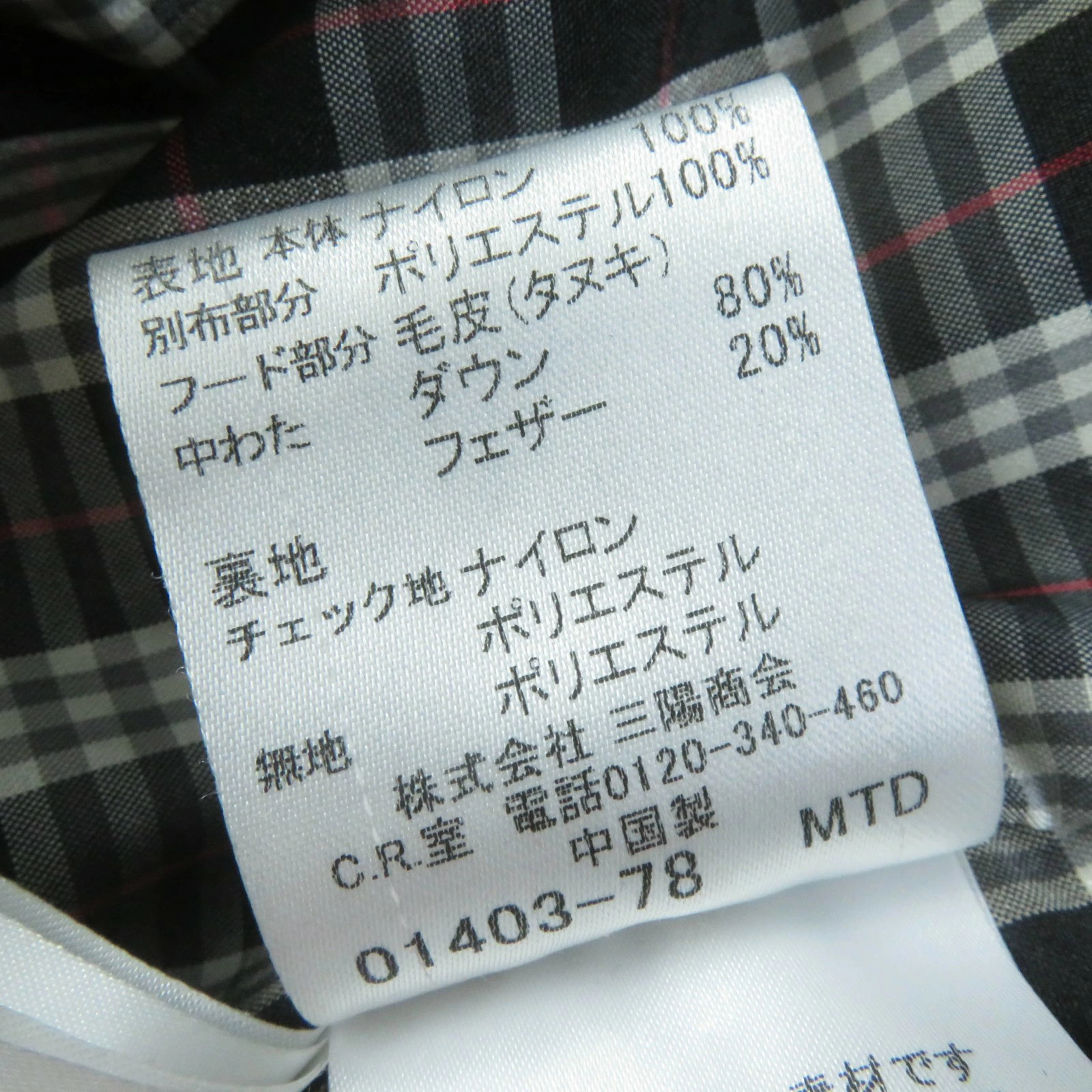 | 素材 (material) | 本体:ナイロン100% 一部:ポリエステル100% ファー:ラクーン 中綿:ダウン90% :フェザー10% 裏地:ナイロン :ポリエステル :ポリエステル | ||||||||||||||||