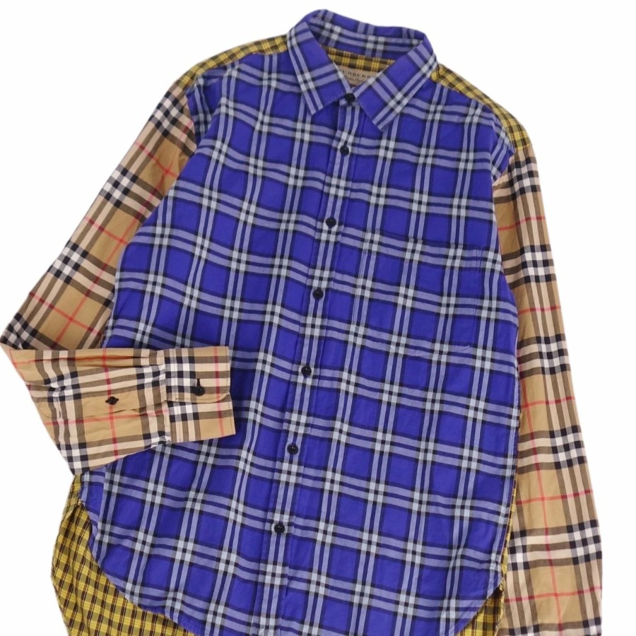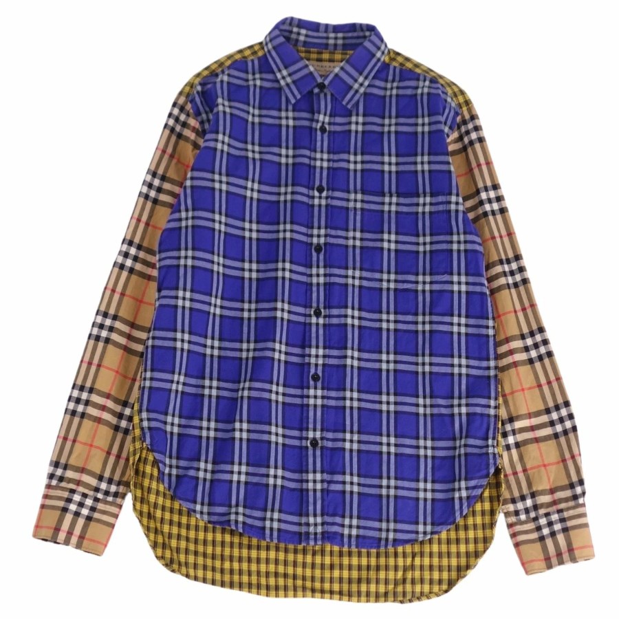 バーバリー BURBERRY シャツ ロングスリーブ 長袖 チェック コットン トップス メンズ ベージュ/ネイビー サイズM