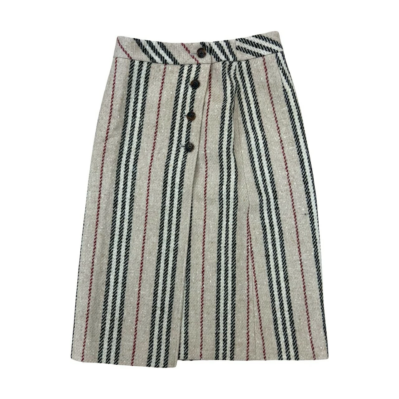 Excellent condition BURBERRY Nova Check Striped Wool Skirt, Size 36, Women's, Beige, 43033 (Pre-owned)