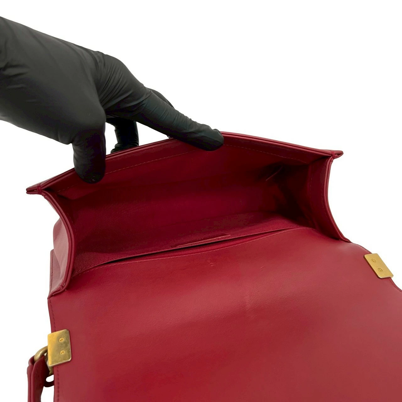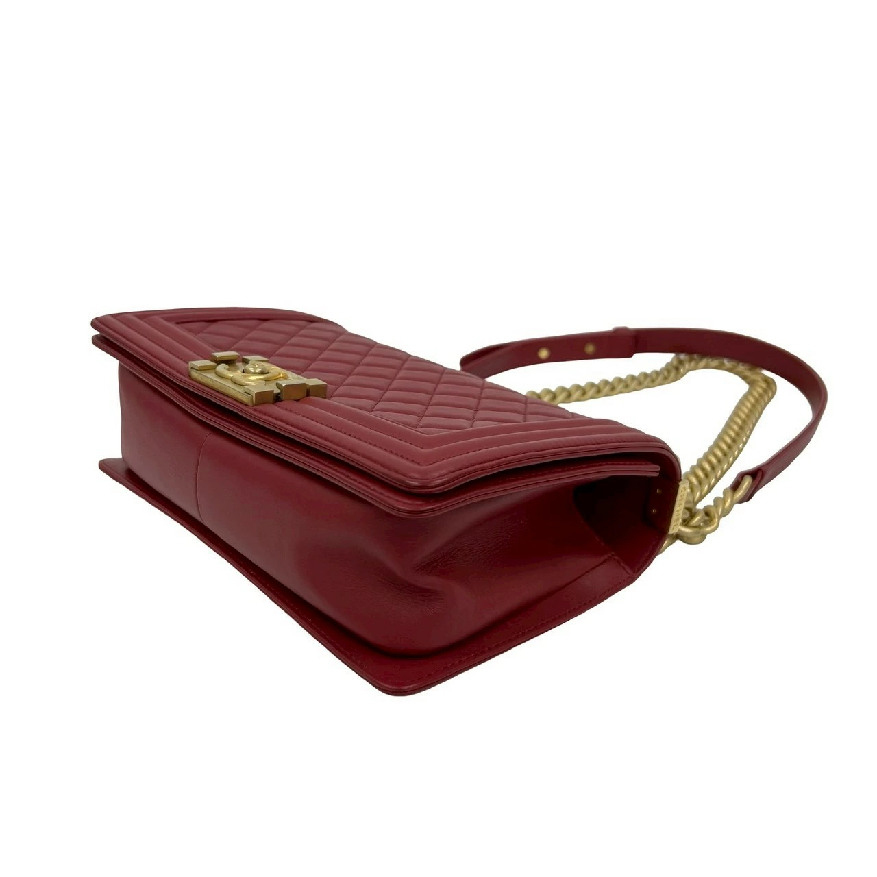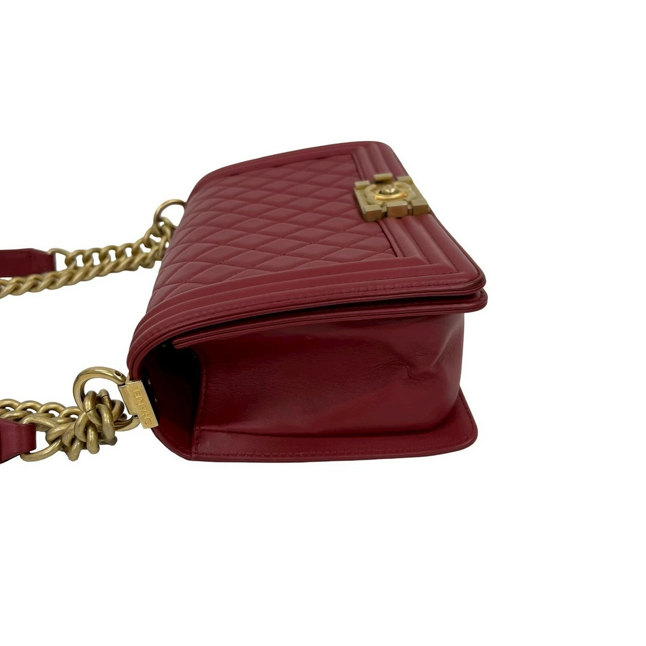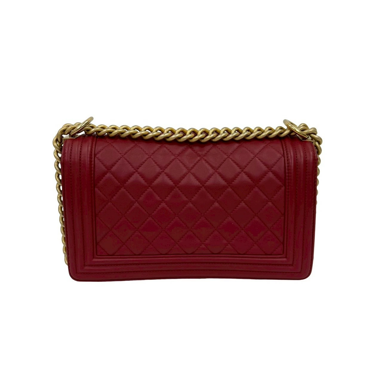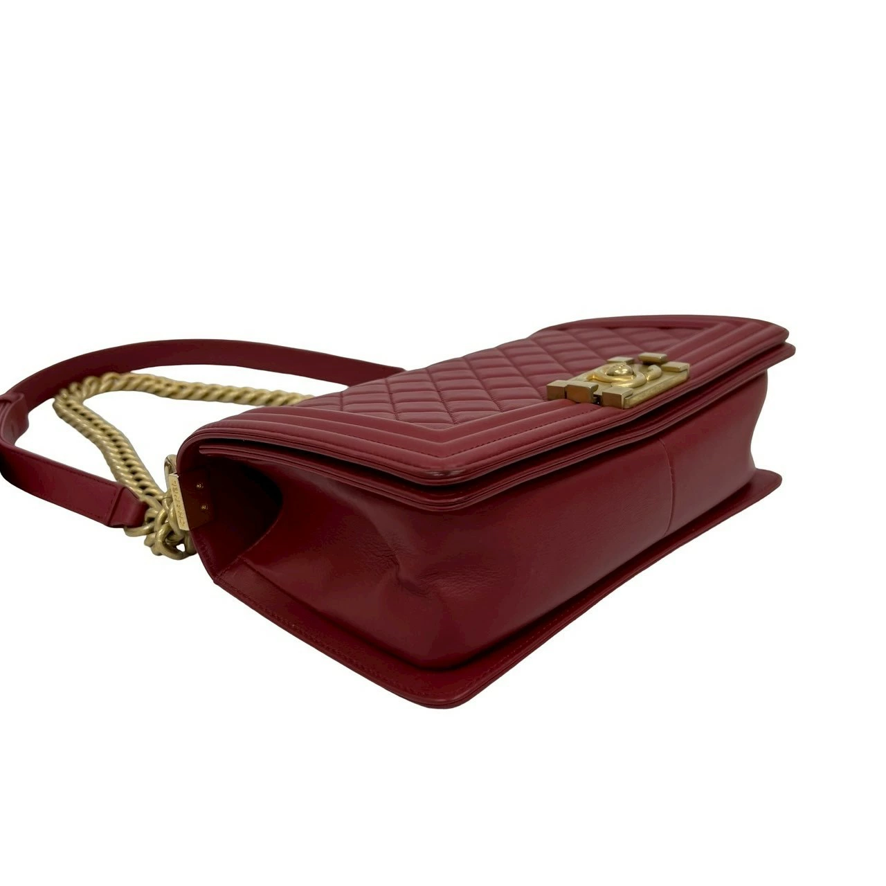 Excellent condition, card and sticker included. CHANEL Boy Chanel lambskin Coco Mark chain shoulder bag, red, model number 42526. Pre-owned.