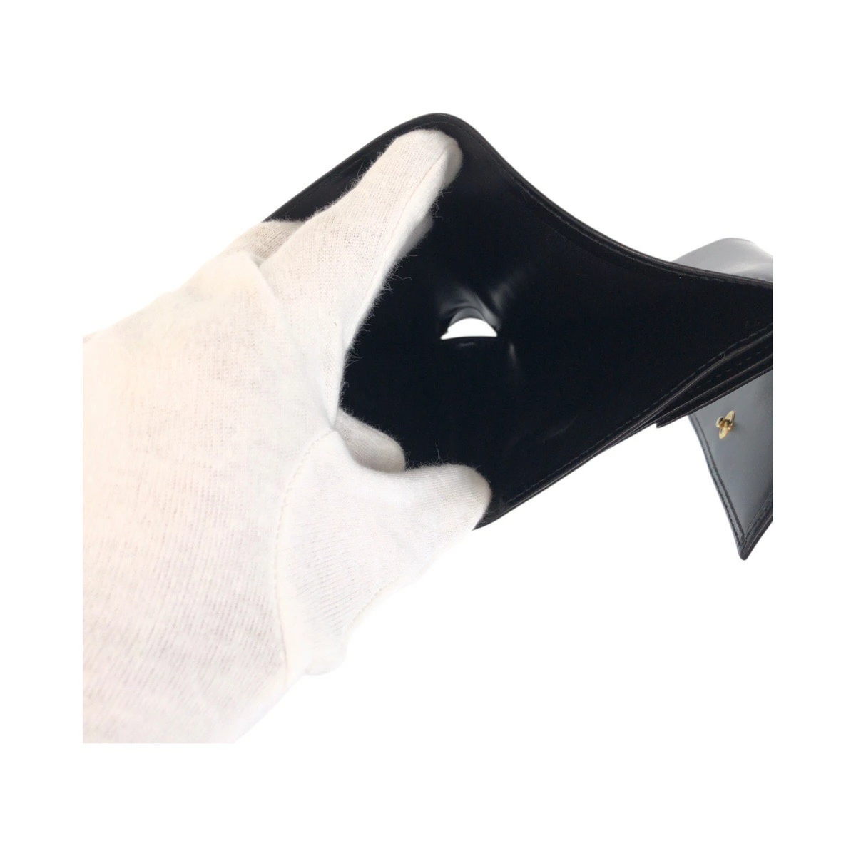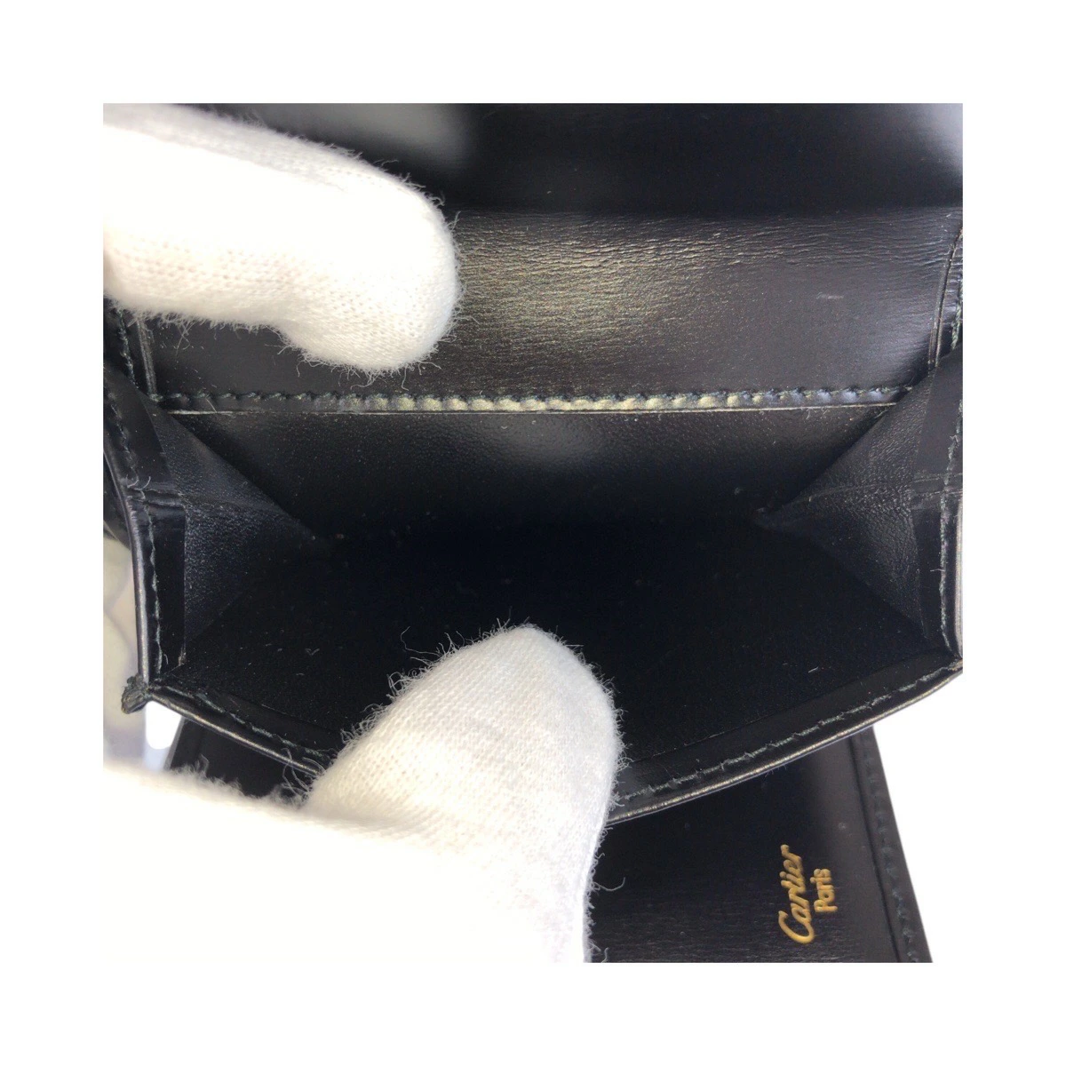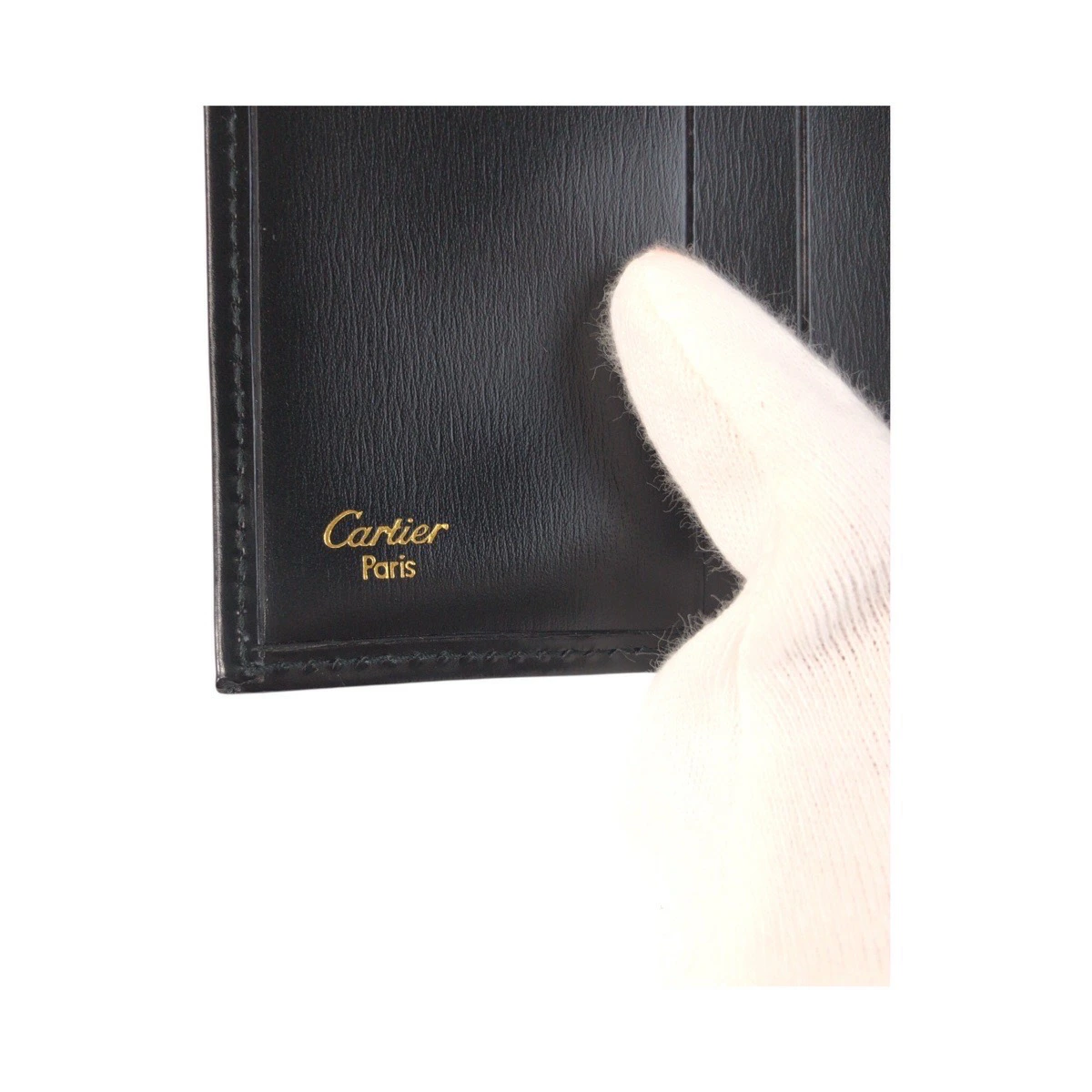 Excellent condition CARTIER Panther black calfskin tri-fold wallet with gold hardware. Compact wallet for women. 505163. [Pre-owned]