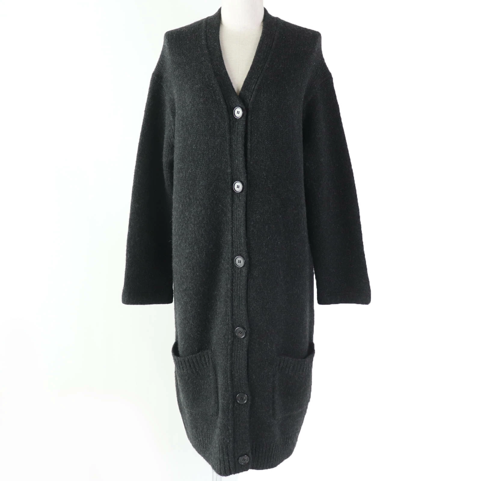 Excellent condition CELINE 2 5Q46/4206 100% cashmere Phoebe-era long-sleeved knit coat/cardigan in dark gray, size M. Authentic, pre-owned.