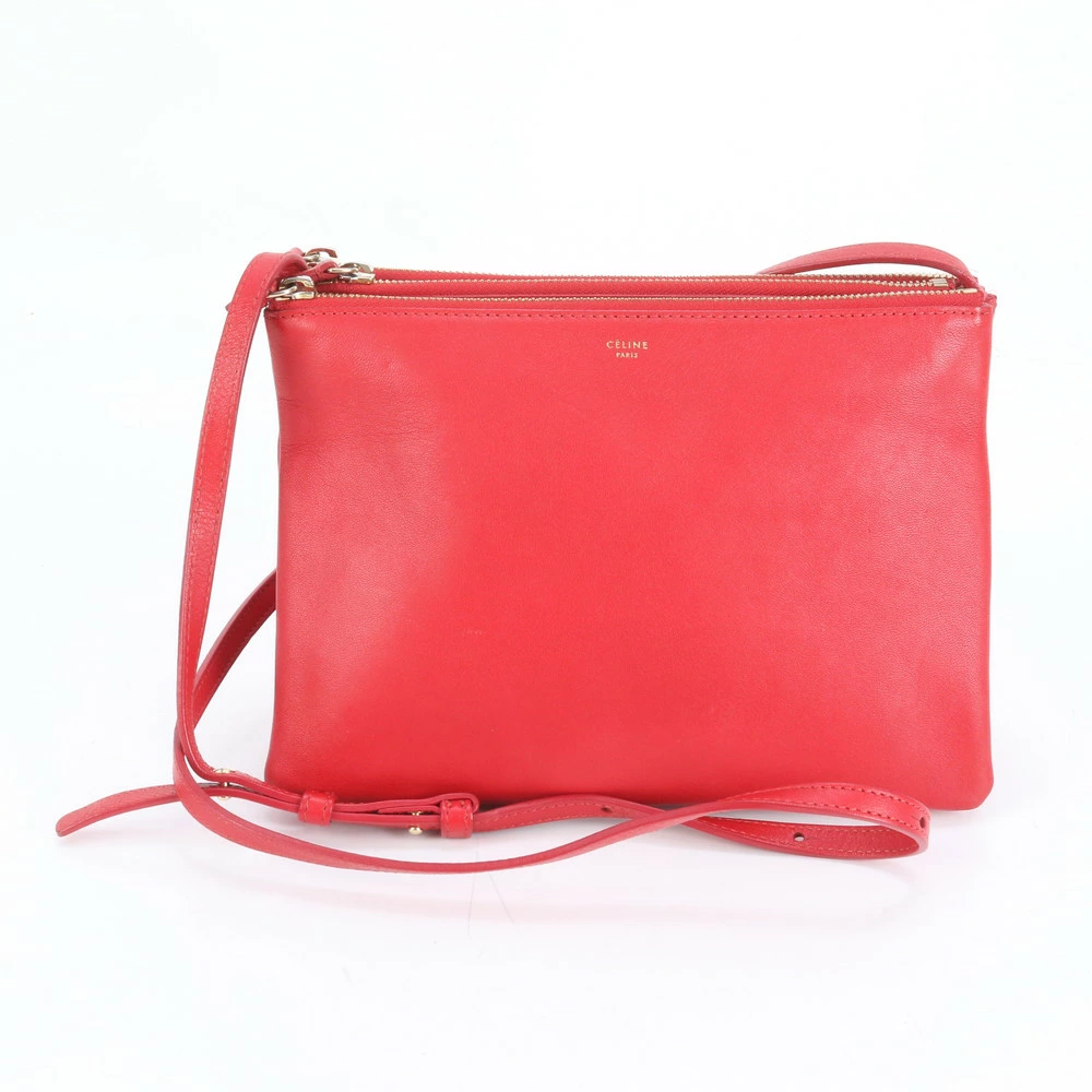 Excellent condition Celine Trio leather shoulder bag, crossbody, red, genuine leather, women's, CEM DB14-7