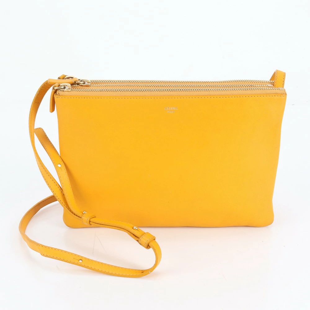 Excellent condition Celine Trio leather shoulder bag, crossbody, yellow, genuine leather, women's, CEM DB14-6