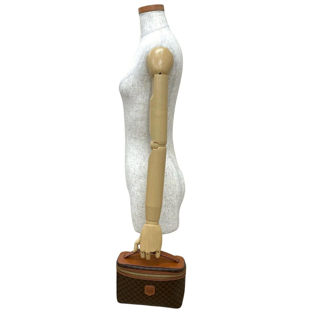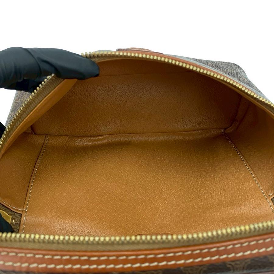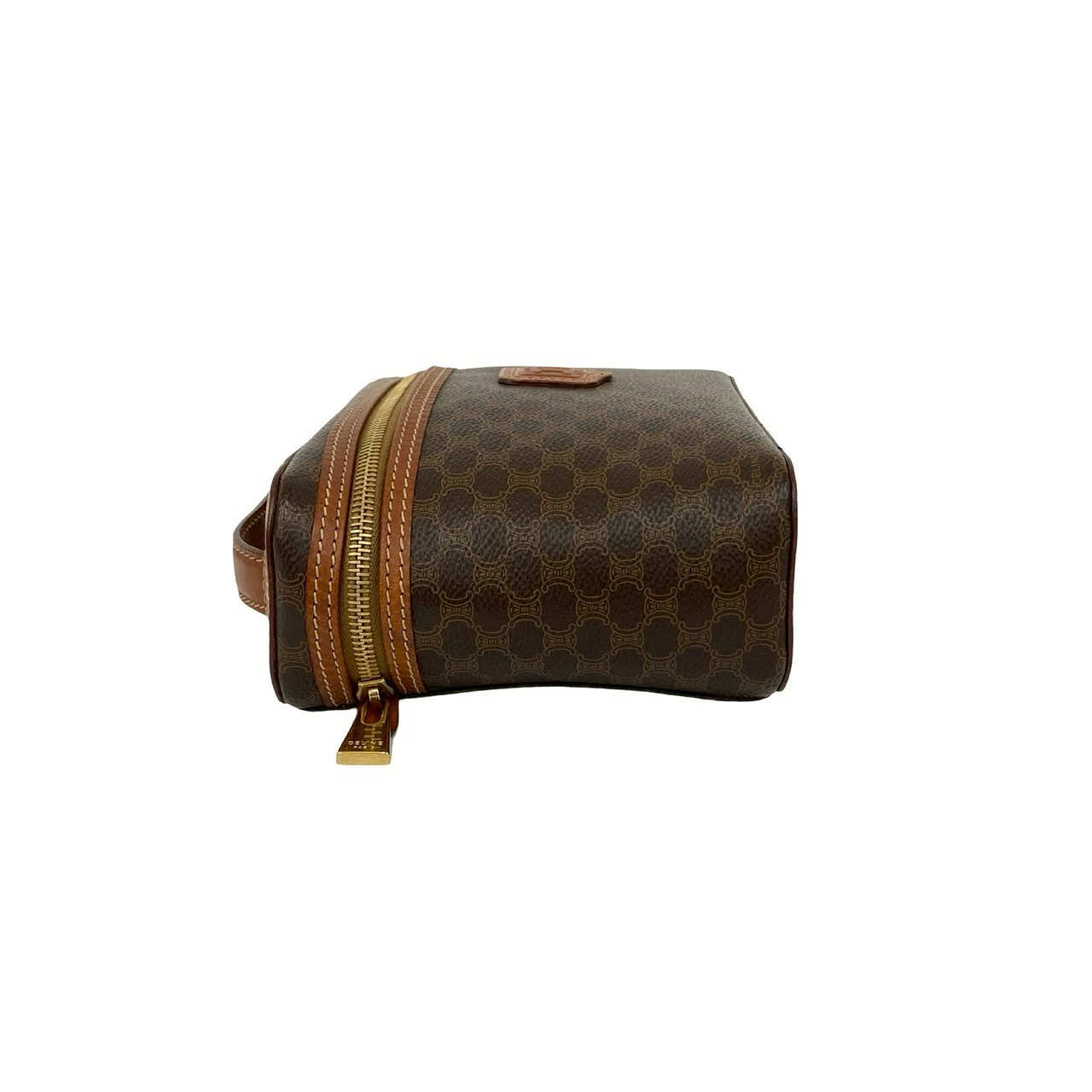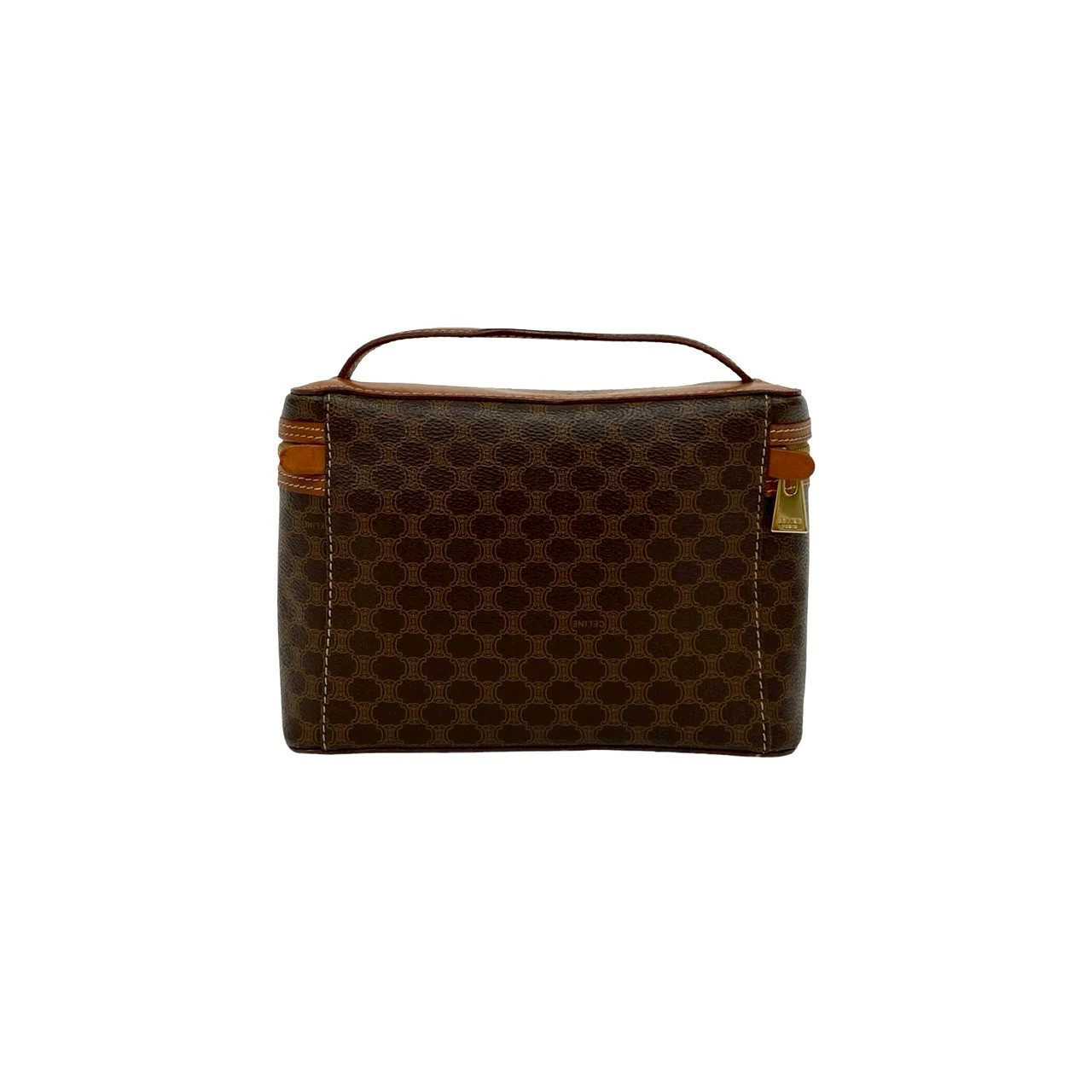 Excellent condition Celine Vintage Macadam Blason Triomphe pattern leather handbag/vanity bag/pouch, brown, 01677 [Pre-owned]