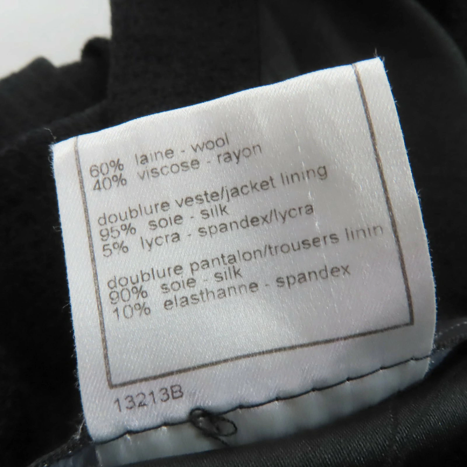 | 素材 (material) | 本体:ウール60% :レーヨン40% 裏地:シルク95% :スパンデックス5% 一部:シルク90% :エラステン10% | ||||||||||||||||