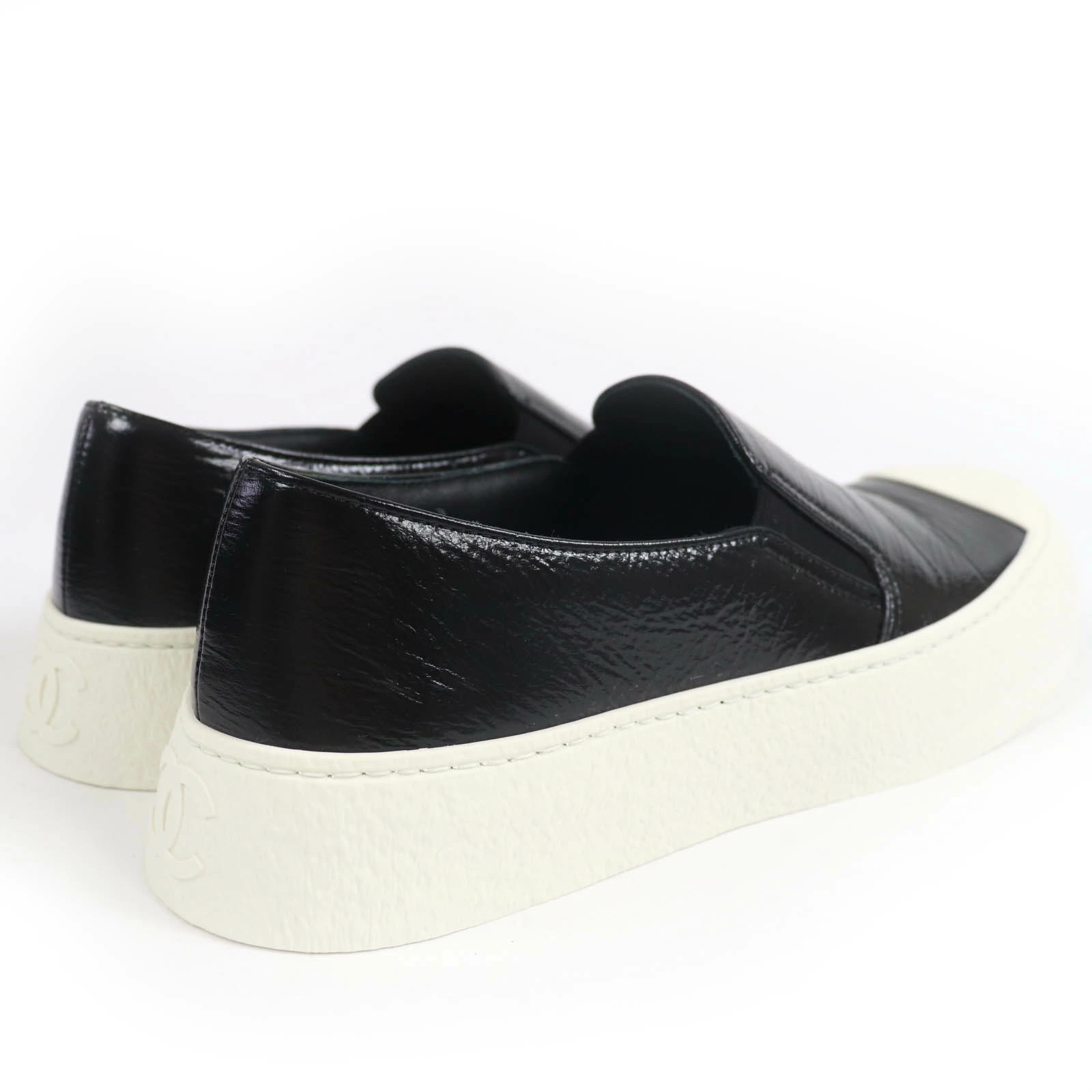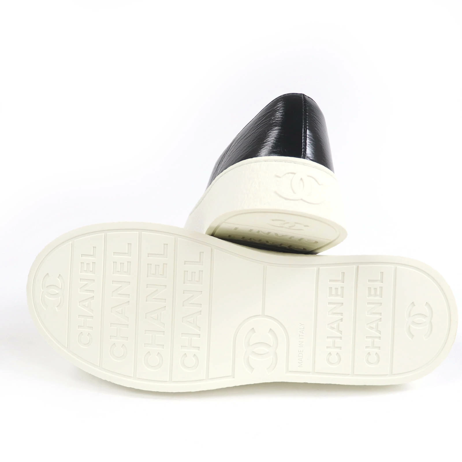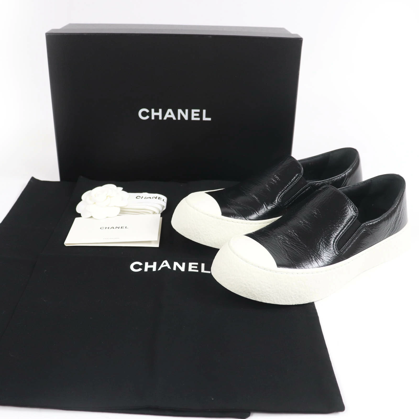 Excellent condition CHANEL 24P G45559 Coco Mark leather slip-on sneakers, black, size 39, with box and dust bag, made in Italy, women's [pre-owned]