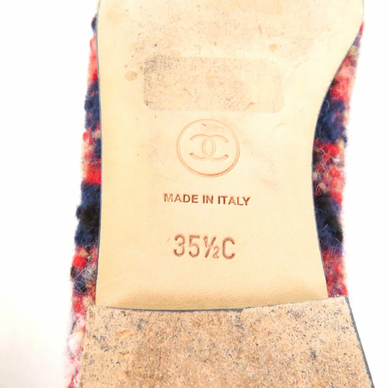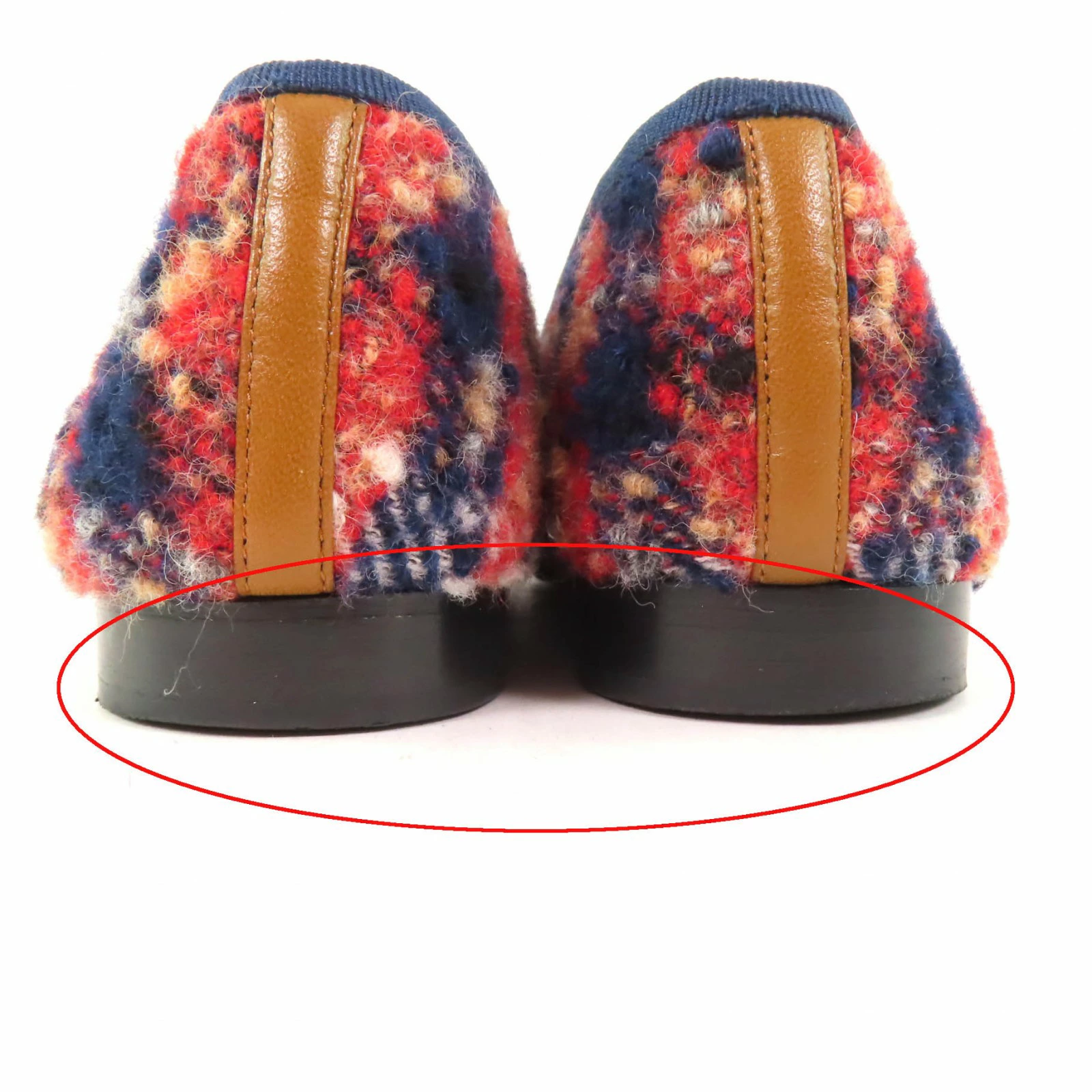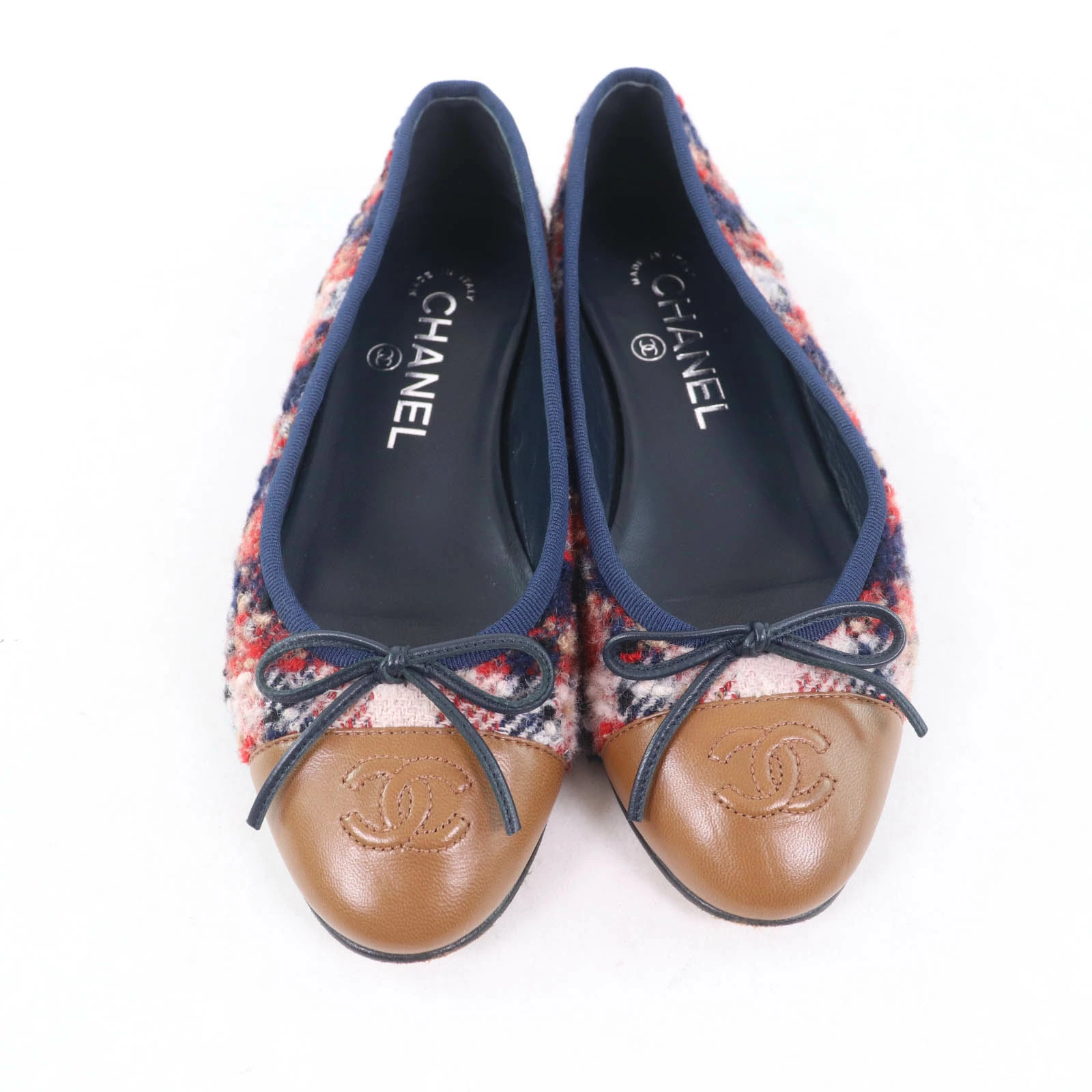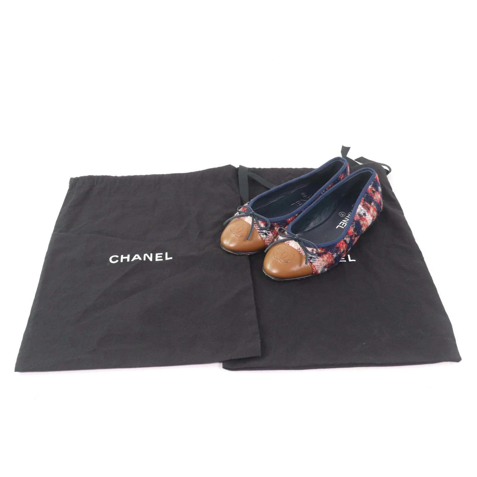 Excellent condition CHANEL Ballerina Coco Mark ribbon leather tweed flat pumps, multicolor, size 35.5, with dust bag, made in Italy, women's [pre-owned]