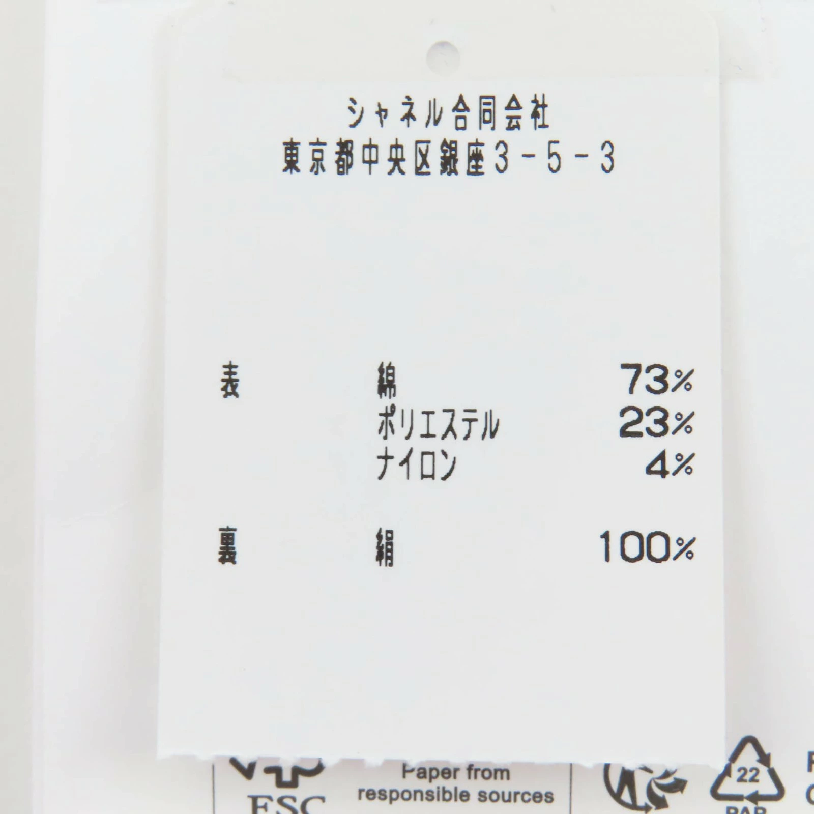 | 素材 (material) | 本体:コットン73% :ポリエステル23% :ナイロン4% 裏地:シルク100% | ||||||||||||||||