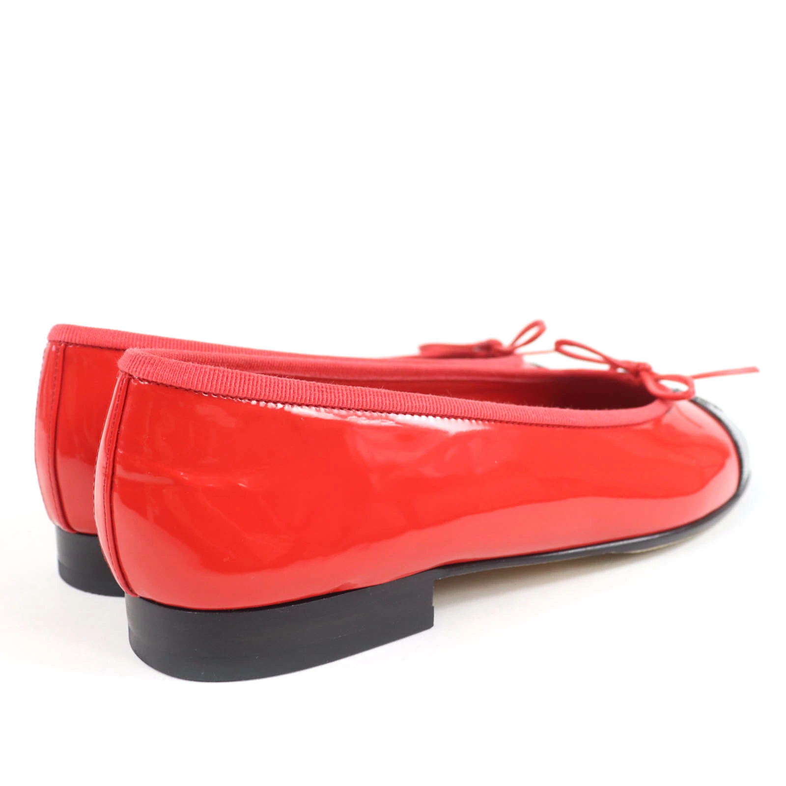 Excellent condition CHANEL G02819 patent leather Coco Mark two-tone flats, red and black, size 36, with box, made in Italy, women's [pre-owned]