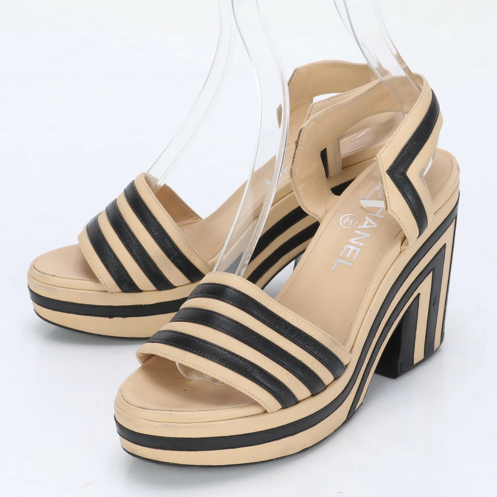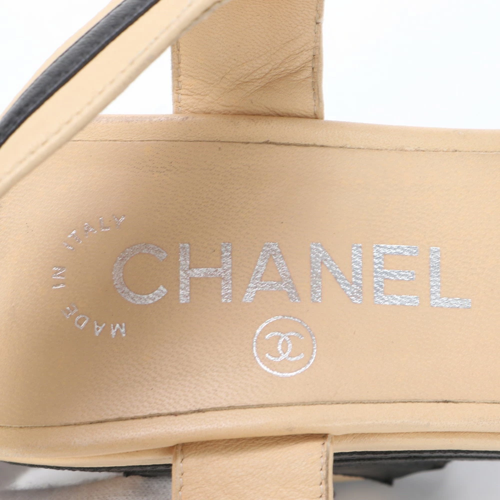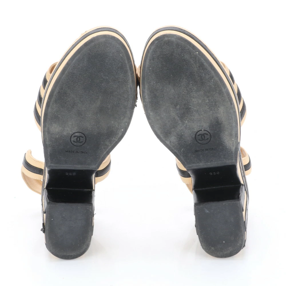 Excellent condition Chanel leather heeled sandals, shoes, mules, loafers, two-tone beige, size 38 (equivalent to 24cm), women's RRE BP7-3