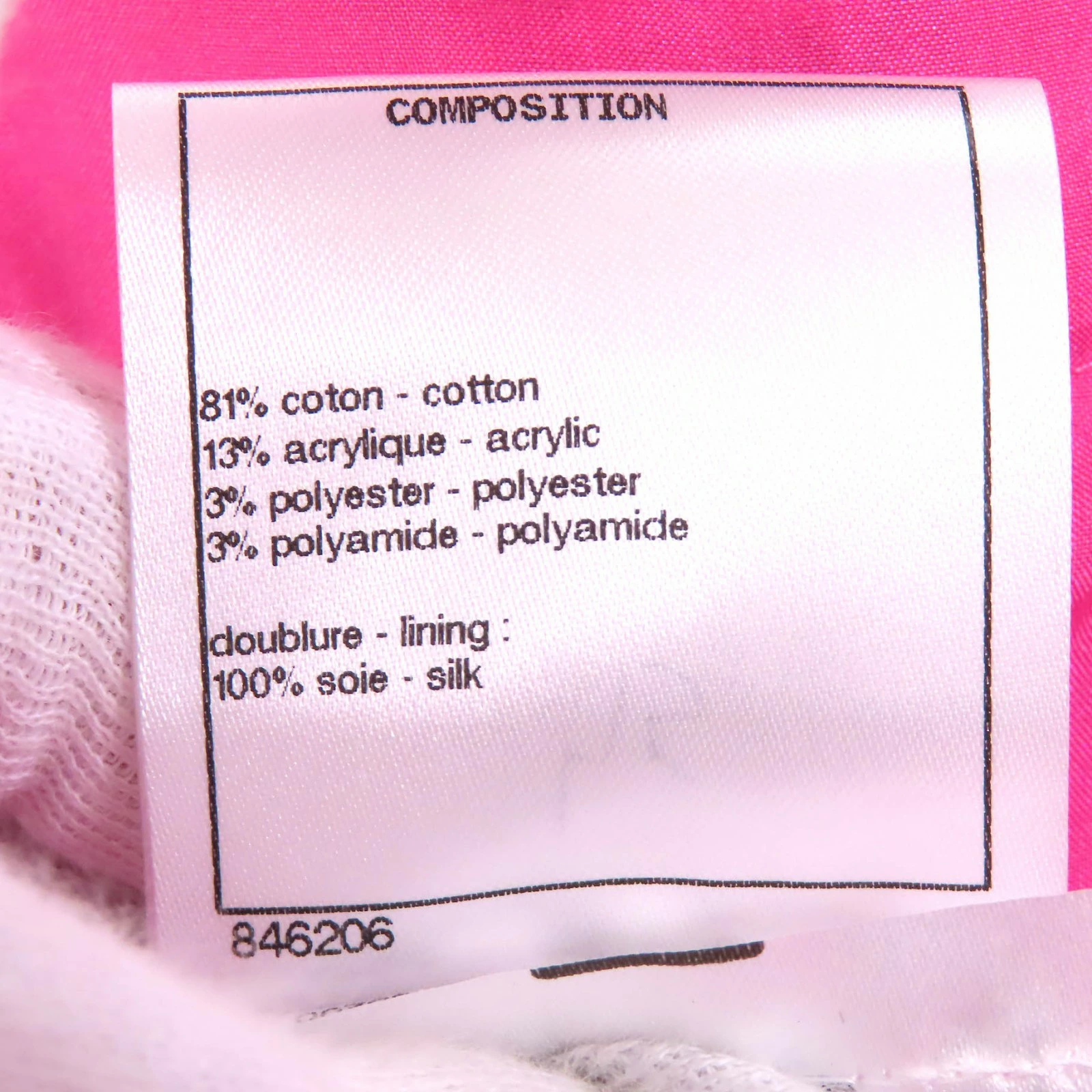 | 素材 (material) | 表地:コットン81% :アクリル13% :ポリエステル3% :ポリアミド3% 裏地:シルク100% | ||||||||||||||||