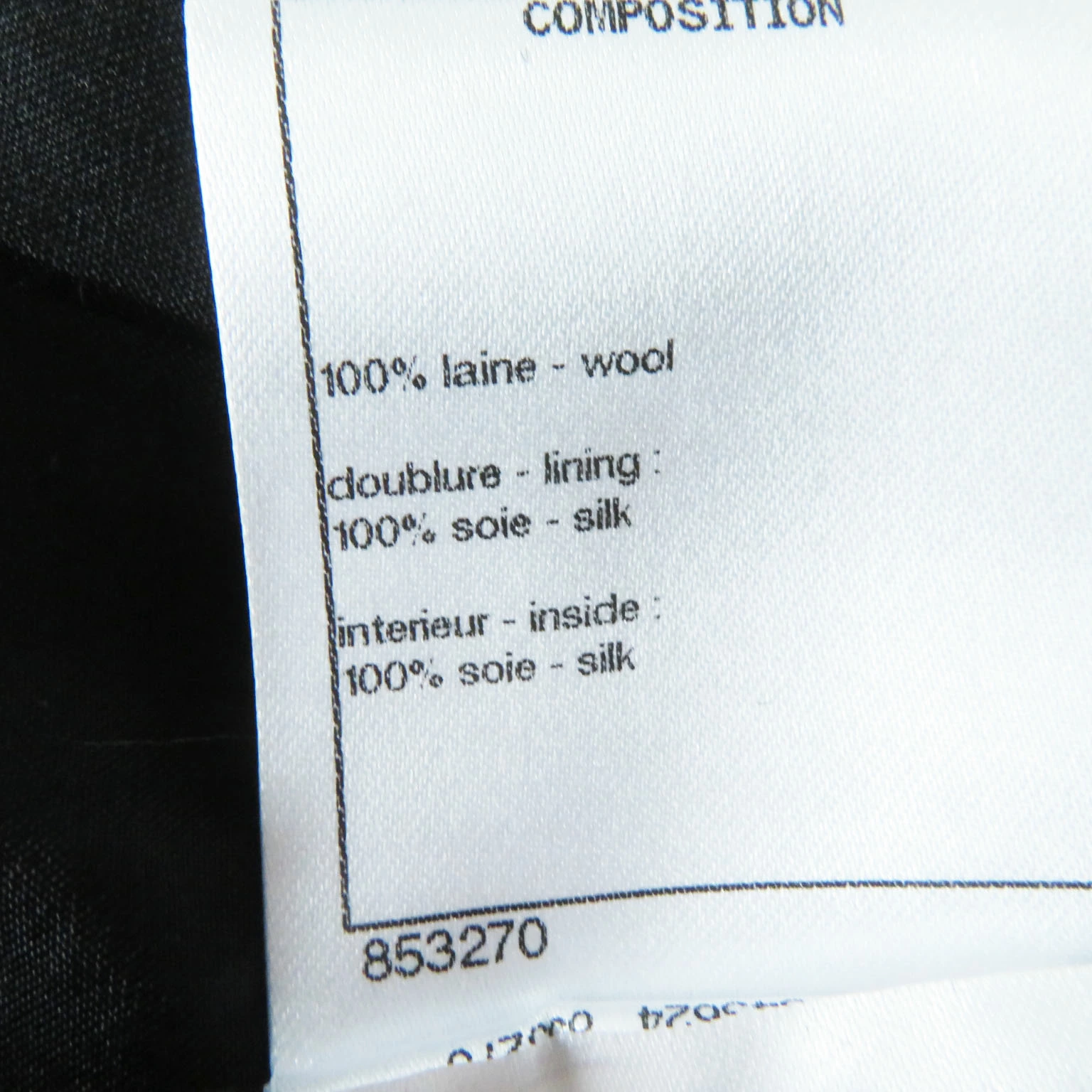 | 素材 (material) | 表地:ウール100% 裏地:シルク100% 一部:シルク100% | ||||||||||||||||