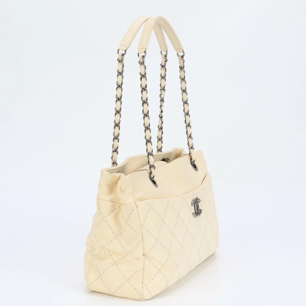 Excellent condition Chanel wild stitch leather shoulder bag/tote bag, women's, RRE BO4-5, from Mitsukoshi Ginza Boutique, guaranteed and serial number included.