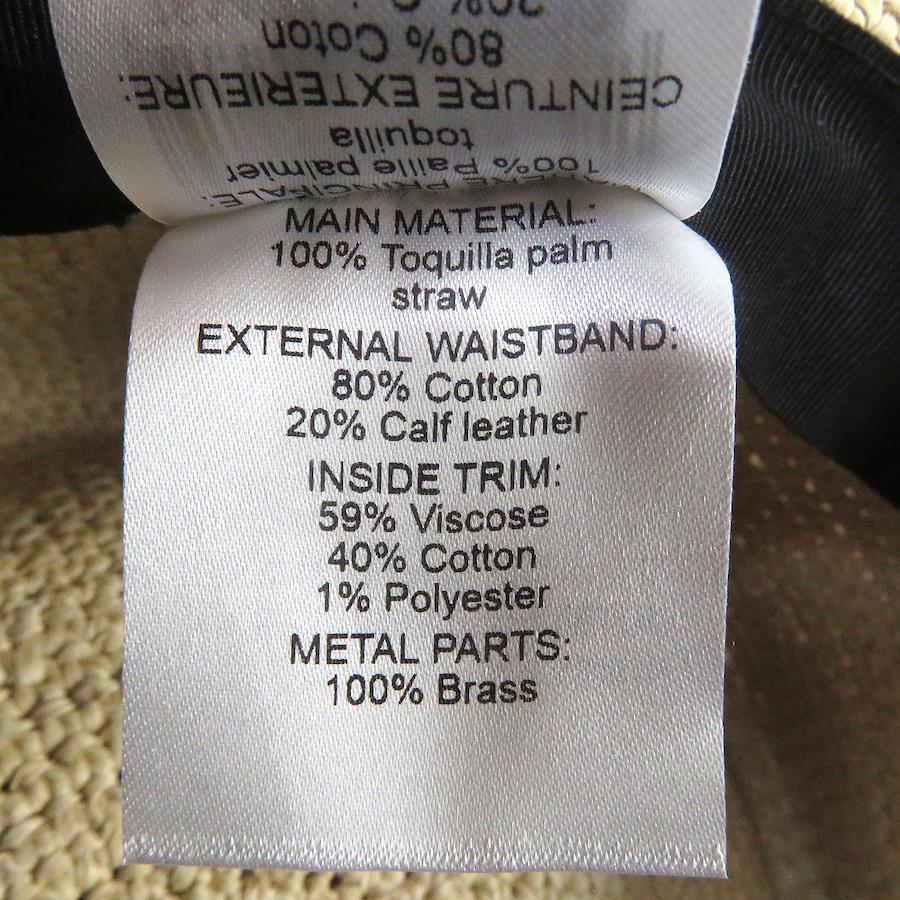 | 素材 (material) | わら100% ベルト:コットン80%、レザー20% トリム:レーヨン59%、コットン40%、ポリエステル1% | ||||||||||||||||