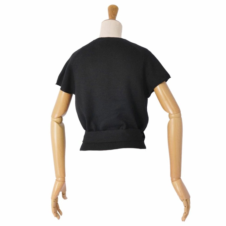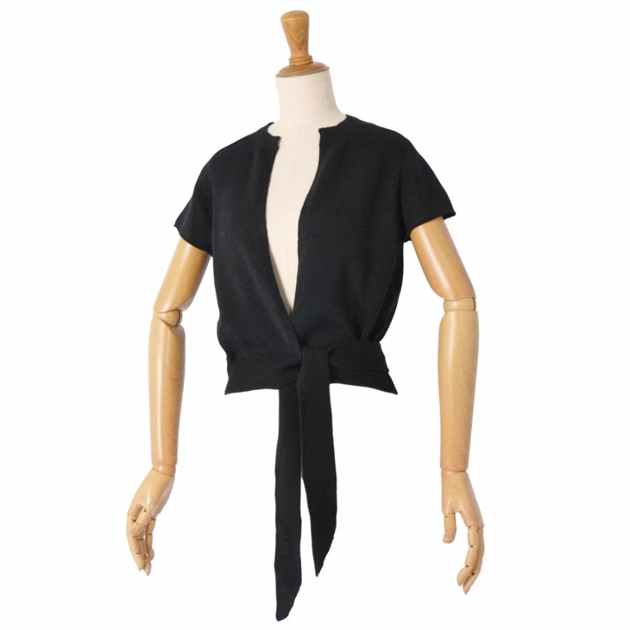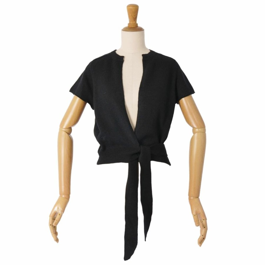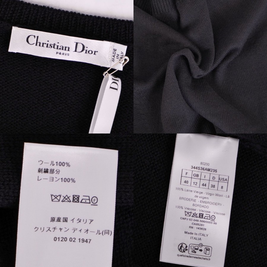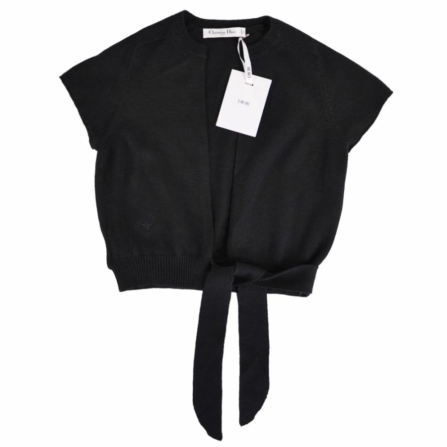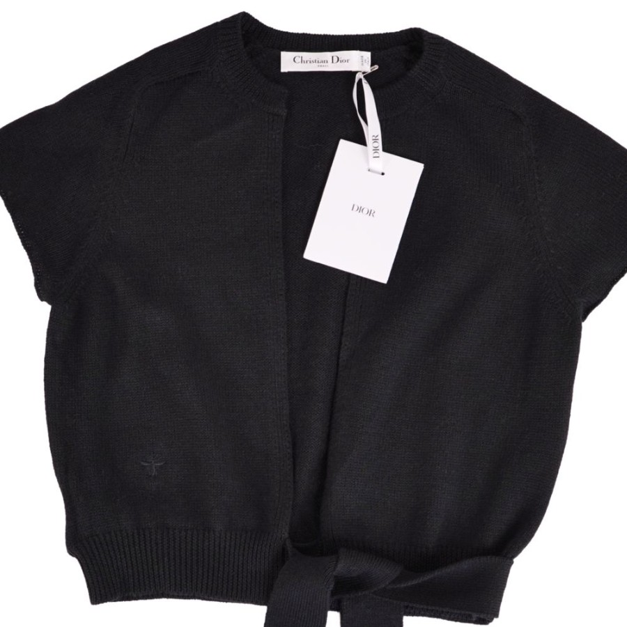 クリスチャンディオール Christian Dior カーディガン 2023 ニット ショートスリーブ 半袖 ウール トップス レディース イタリア製 ブラック サイズ40(L相当)