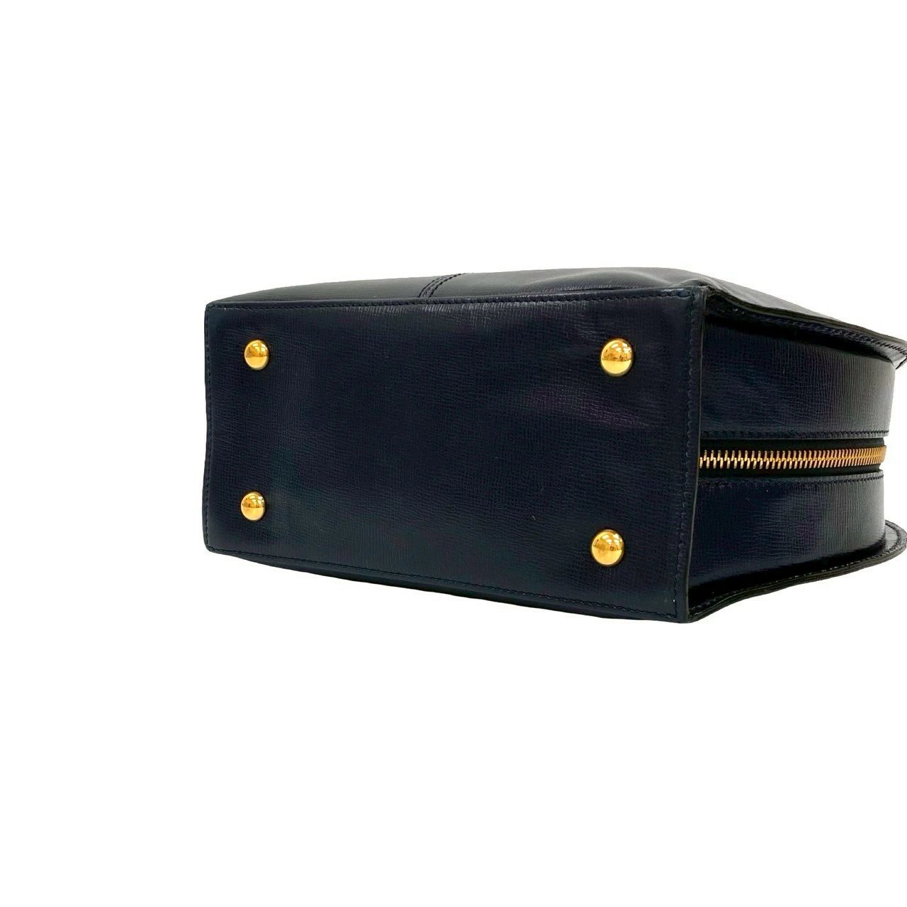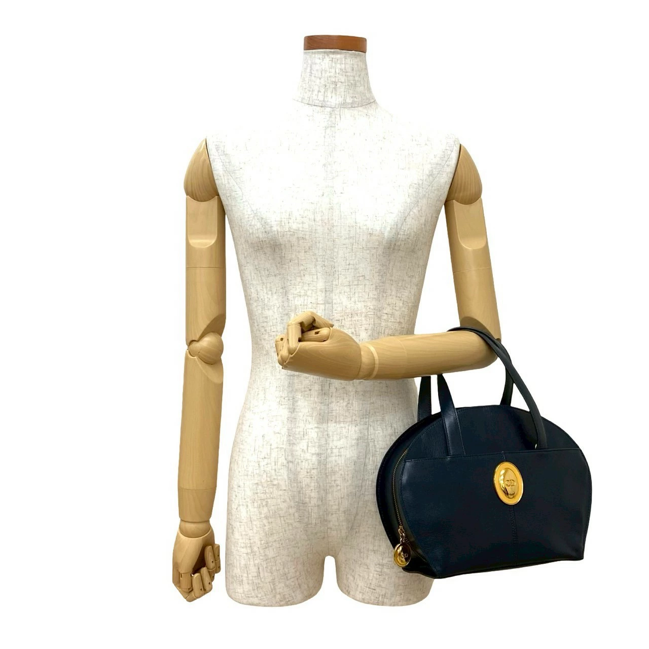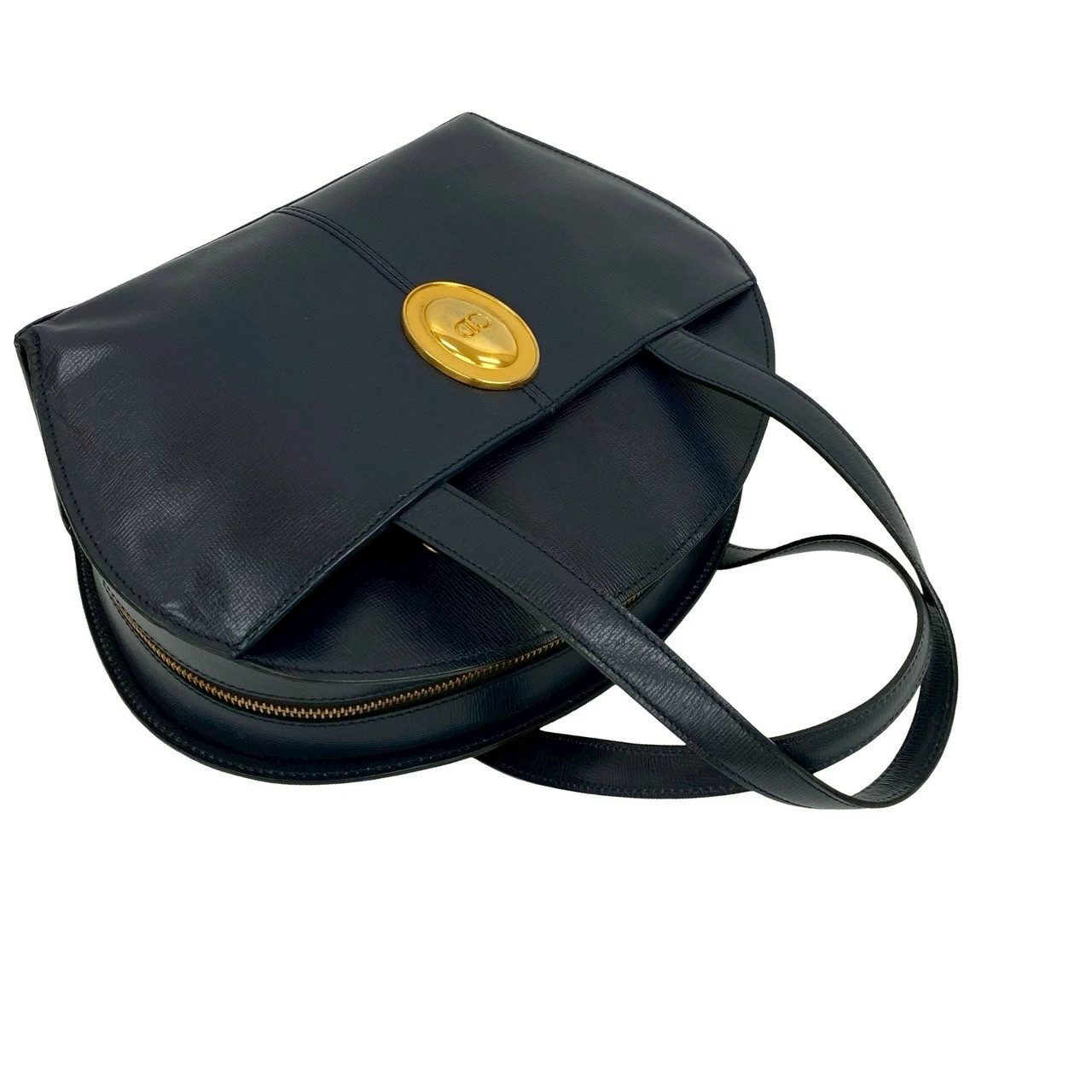 Excellent condition Christian Dior CD logo hardware genuine leather handbag/boston bag/tote bag navy 31989 [pre-owned]