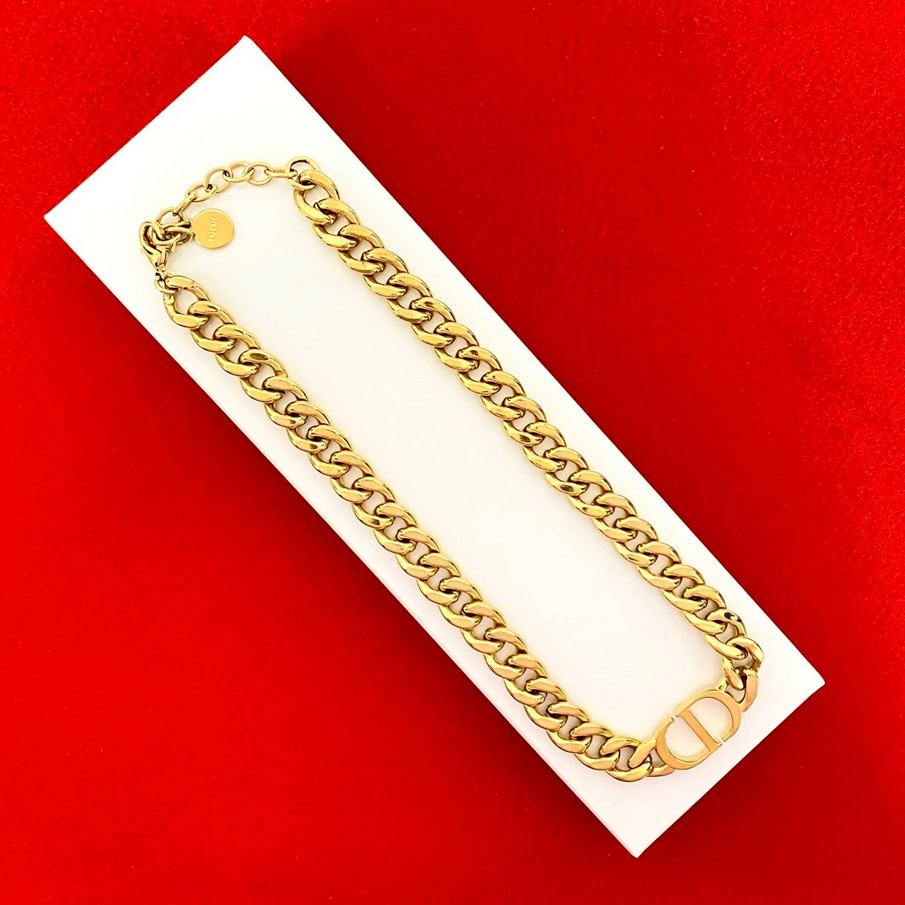 Excellent condition Christian Dior CD logo motif GP chain necklace pendant in gold (item number 04989) [pre-owned]