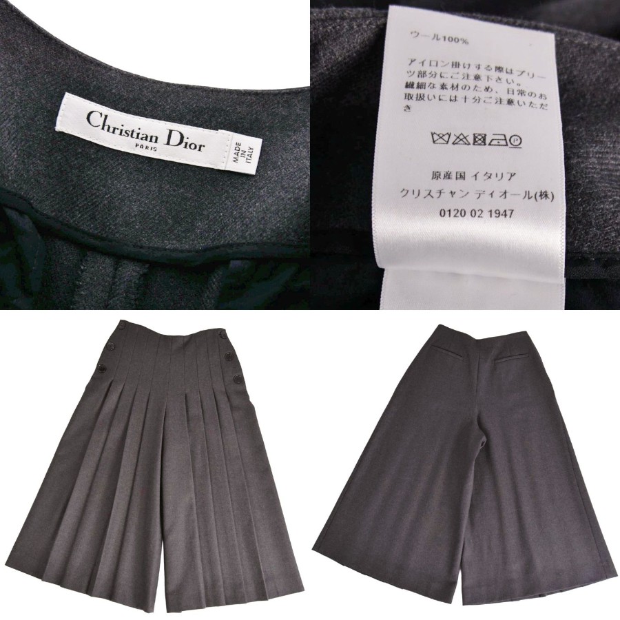 クリスチャンディオール Christian Dior パンツ ワイドパンツ ロングパンツ プリーツ ウール ボトムス レディース グレー サイズF36 USA4 I40(S相当)