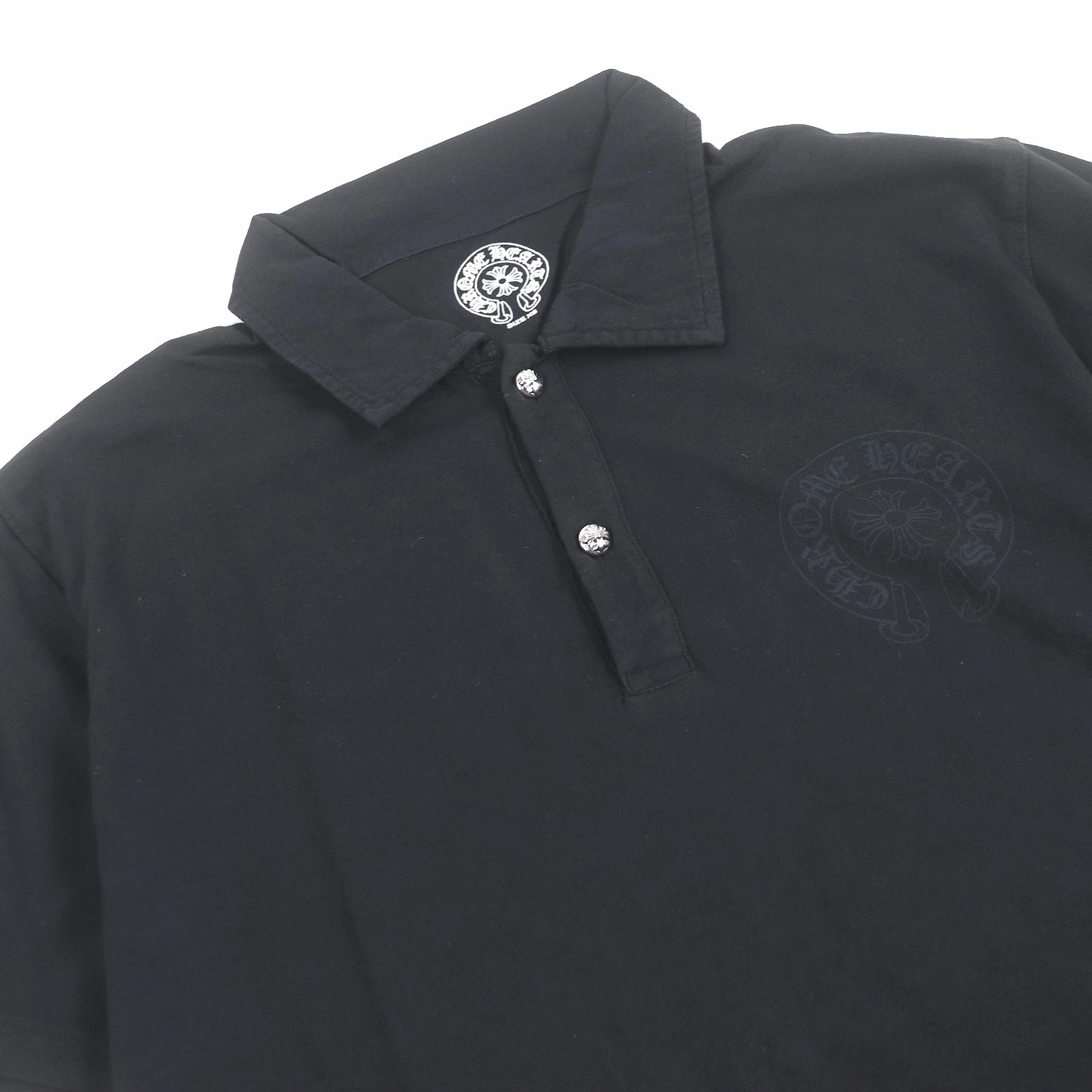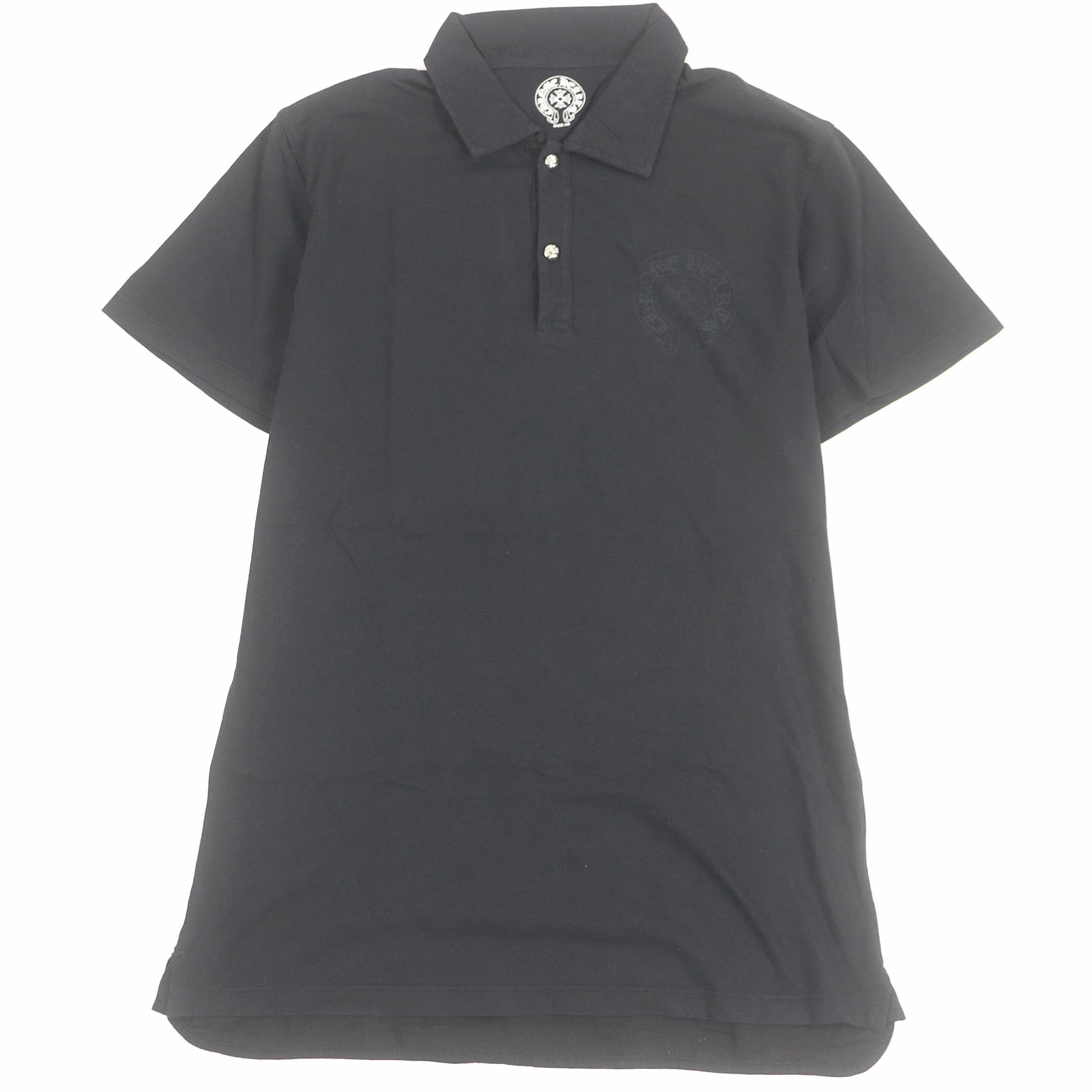 Excellent condition CHROME HEARTS 100% cotton cross ball button, horseshoe logo, lightweight, short-sleeved polo shirt, black, size XS, made in USA, authentic, men's [pre-owned]