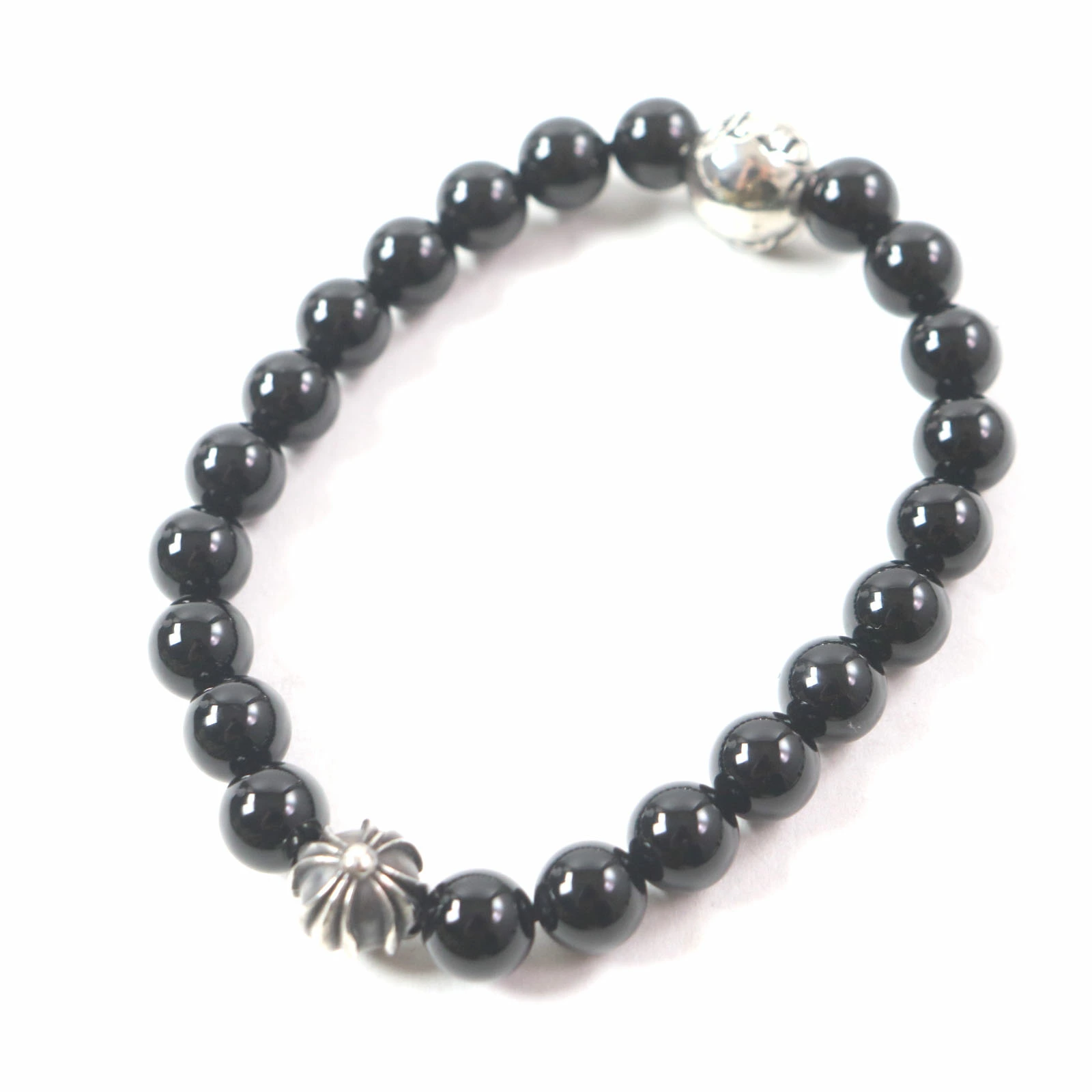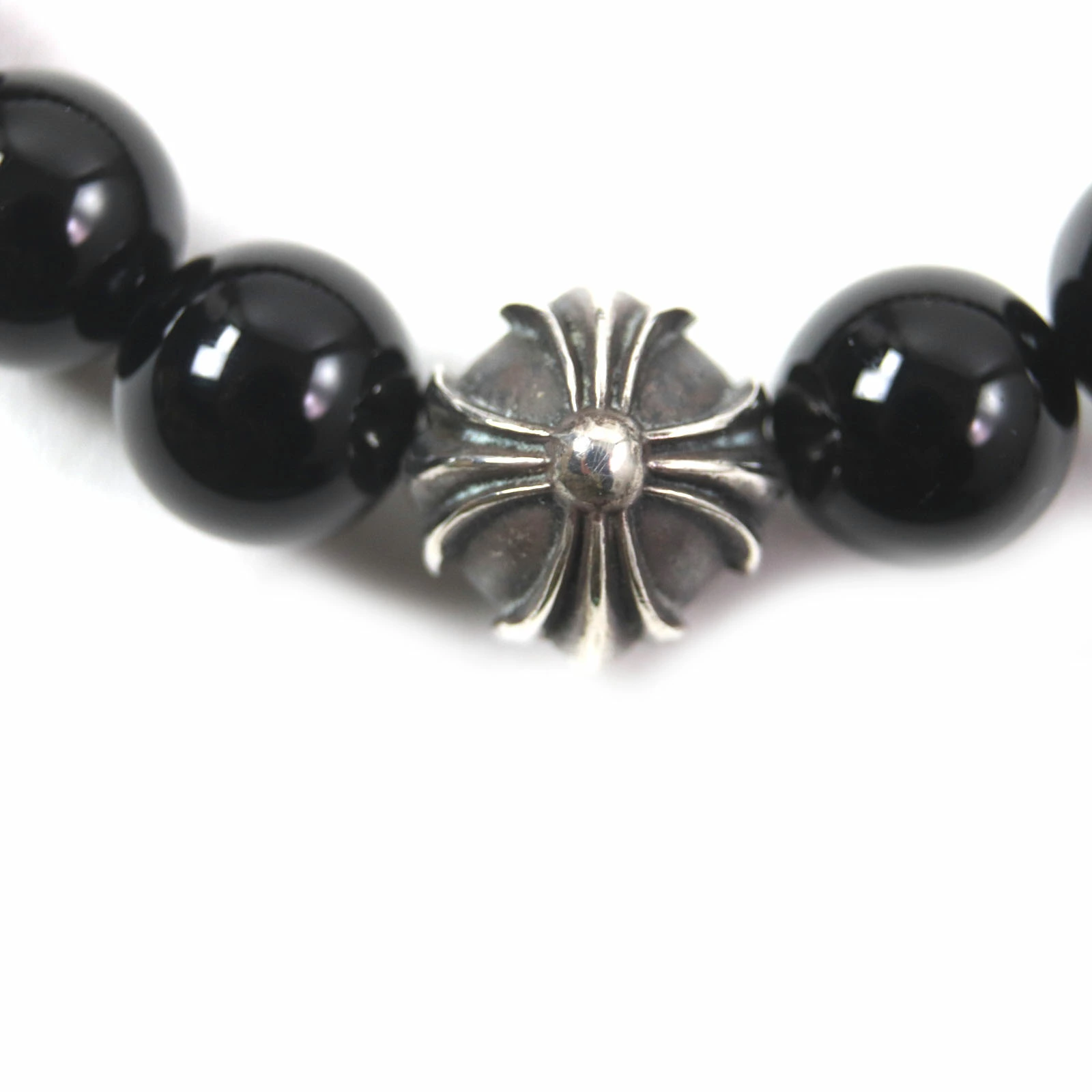 Excellent condition: CHROME HEARTS CH Plus BEAD bracelet with onyx, SV925, black and silver, 8mm. Men's and women's accessories. [Pre-owned]