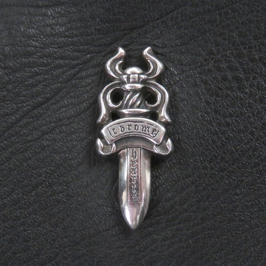 Excellent condition CHROME HEARTS DRACULA leather dagger scroll label handbag, mini bag, black and silver, men's [pre-owned]