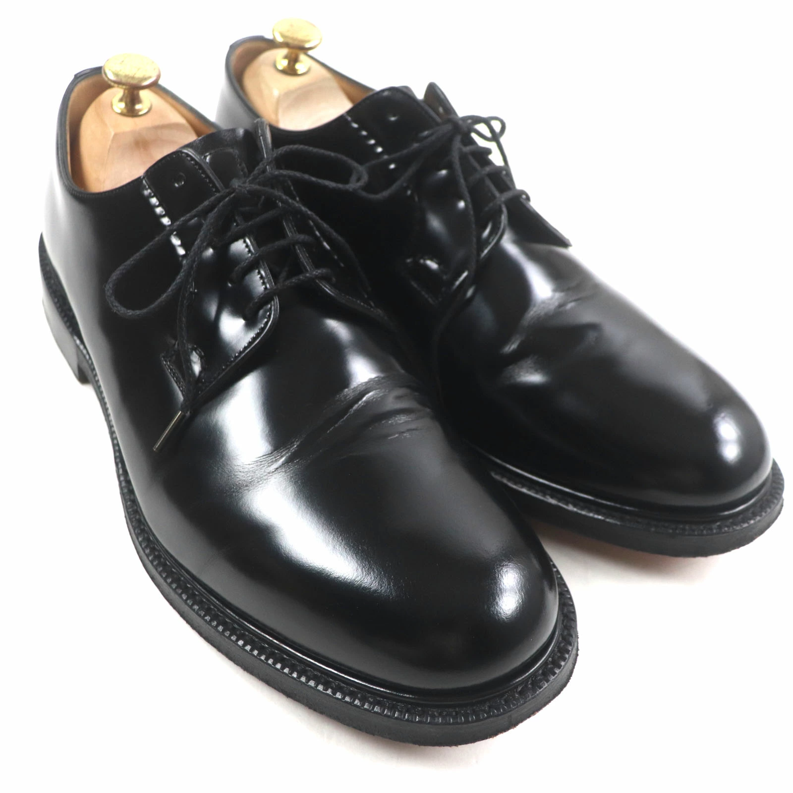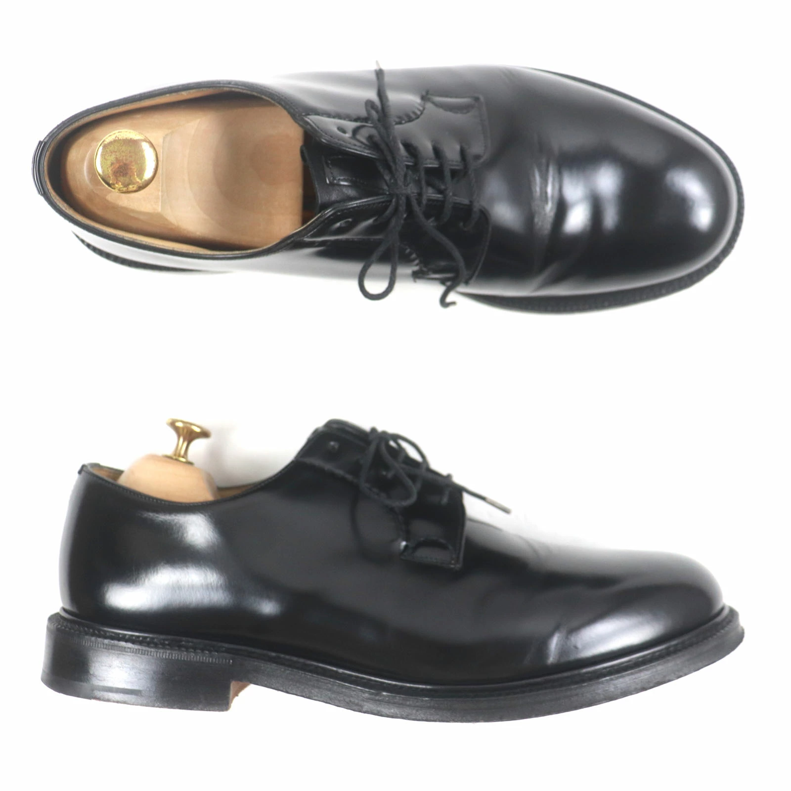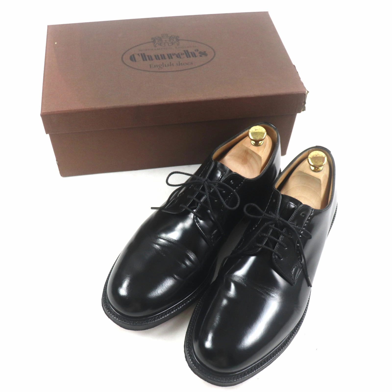 Excellent condition: CHURCH'S SHANNON polished binder calf leather plain-toe lace-up leather shoes, black, size 9.5, made in England. Pre-owned.