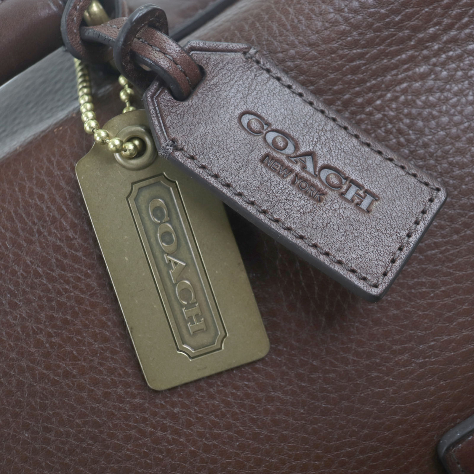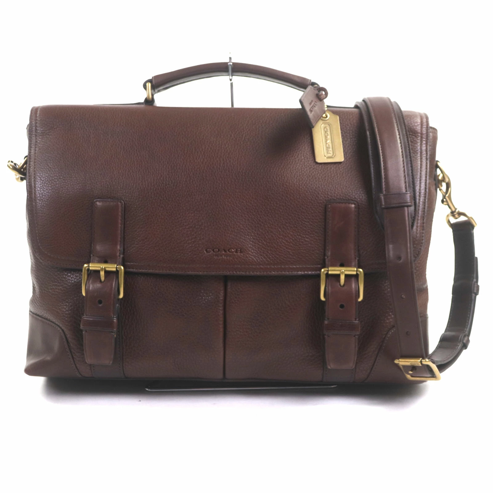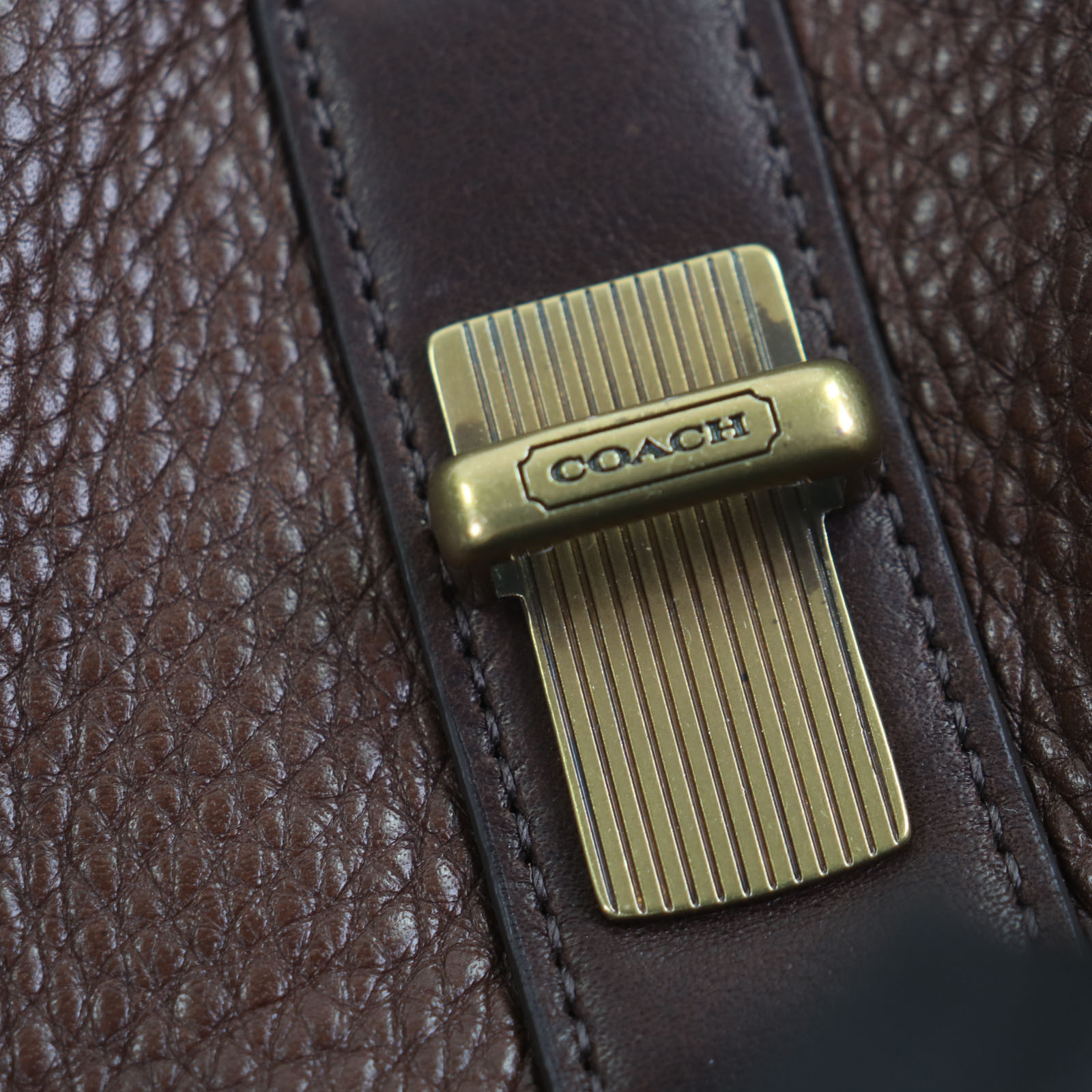 Excellent condition: COACH 70480 leather, old Coach flap-style 2-way business bag/briefcase, dark brown, with dust bag. Pre-owned.