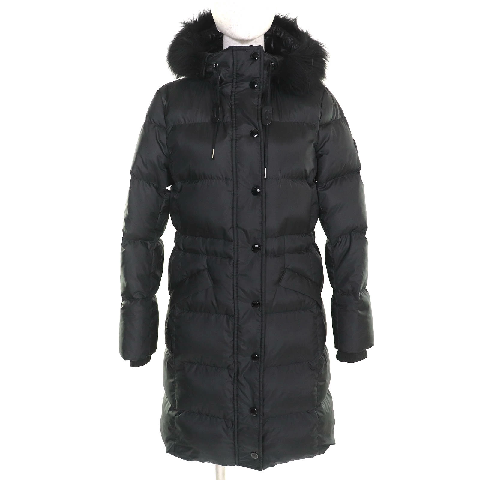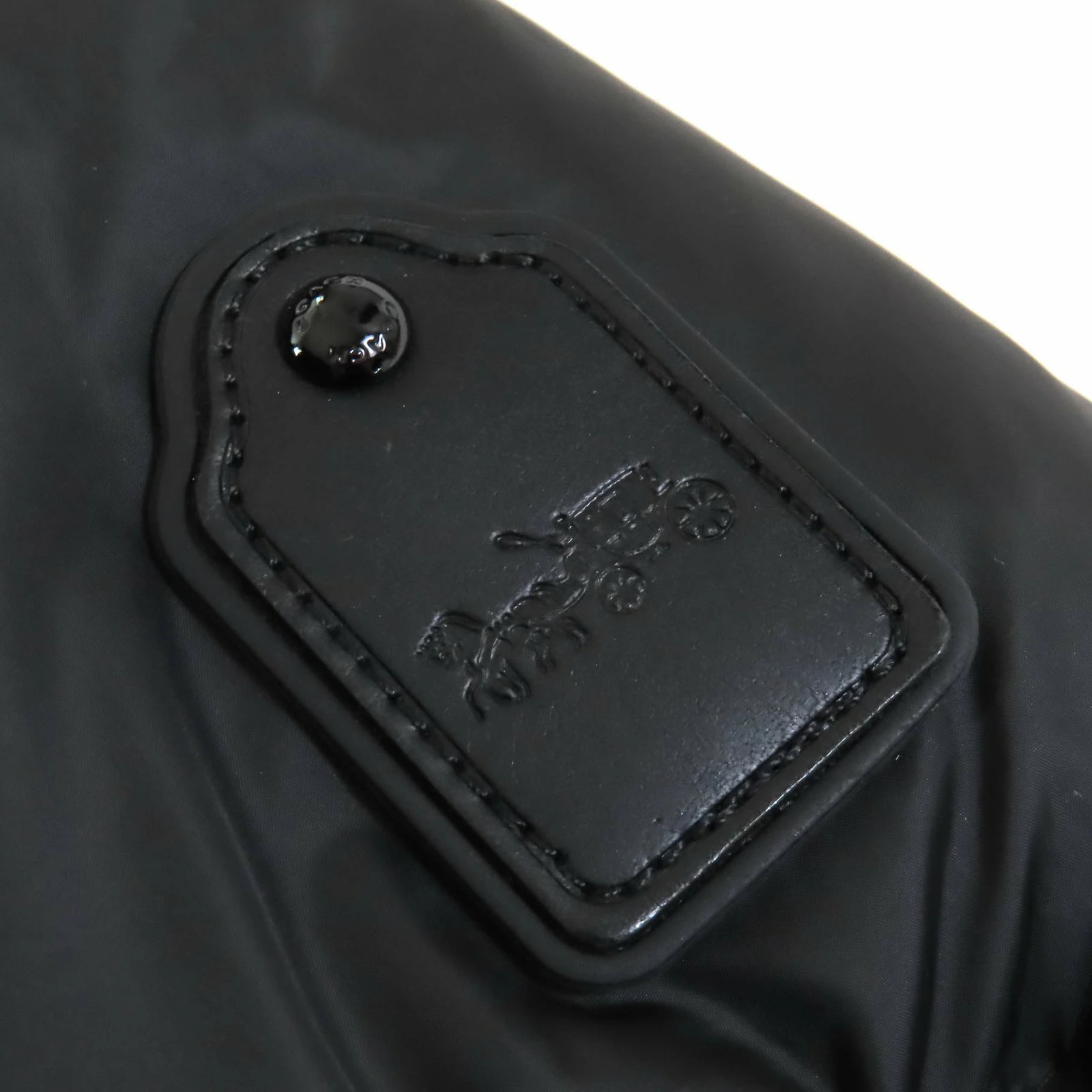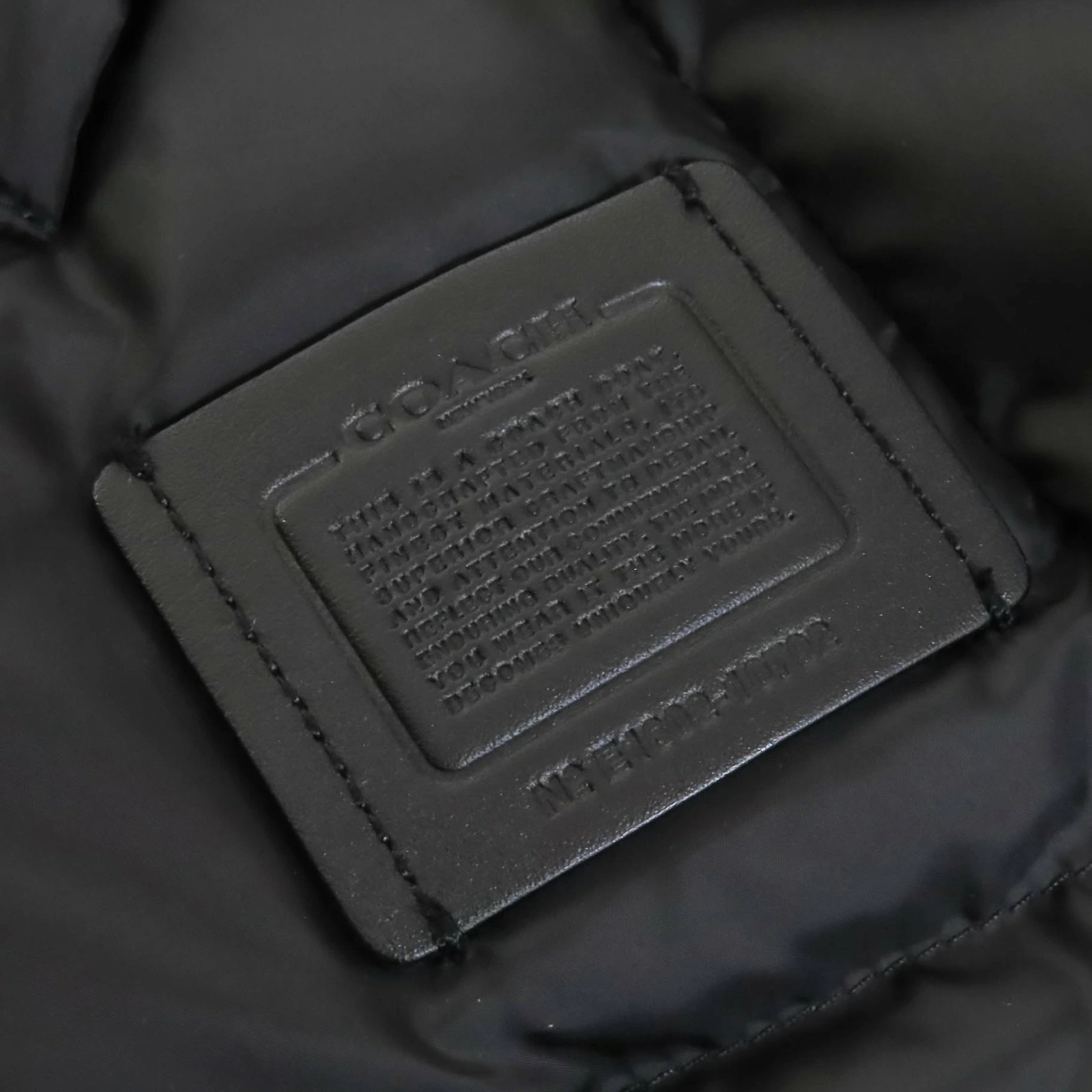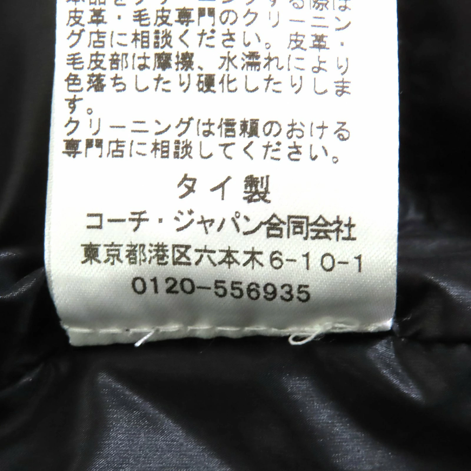Excellent condition COACH E1602-10792 leather logo patch fur hooded zip-up down coat, black, size XS, authentic, women's [pre-owned]