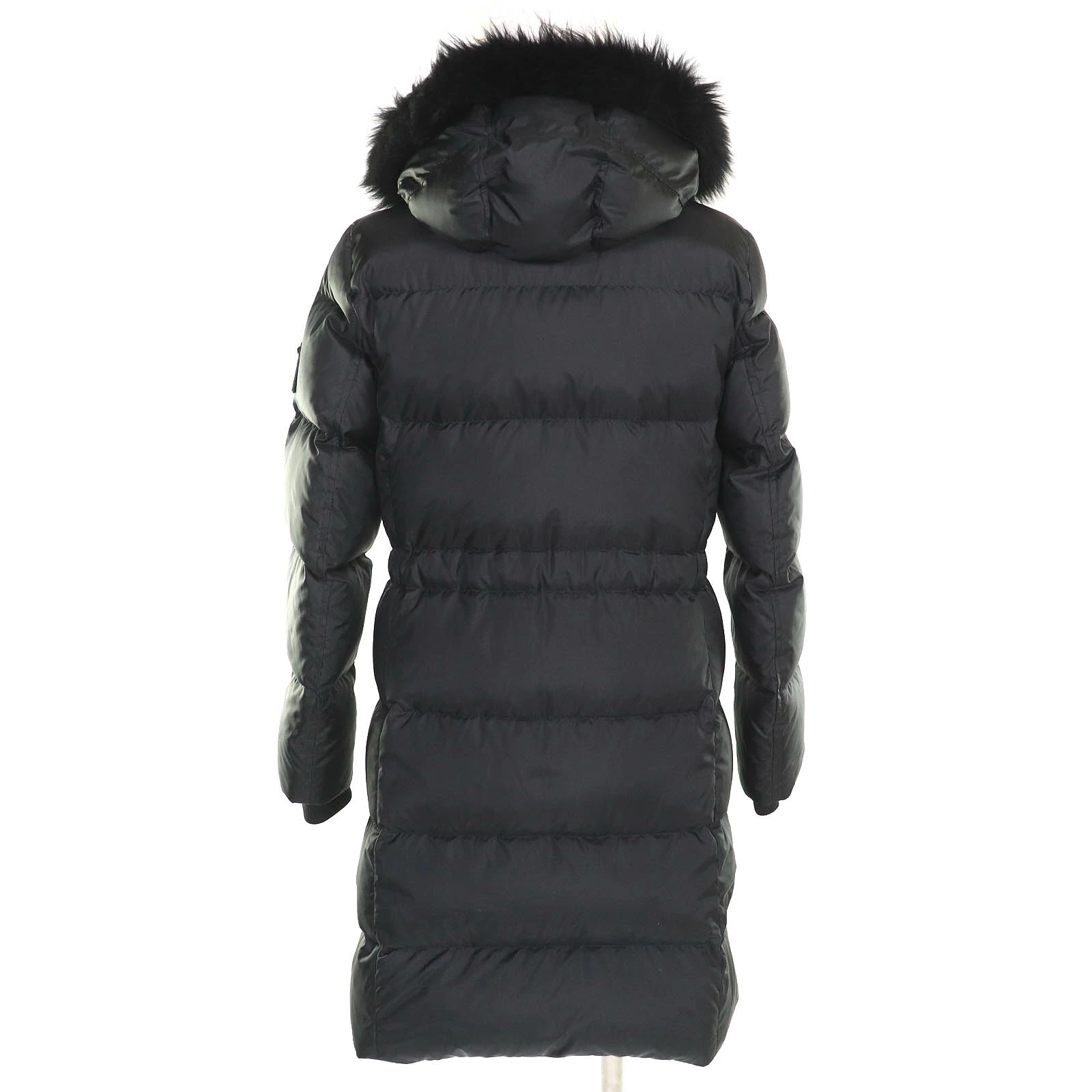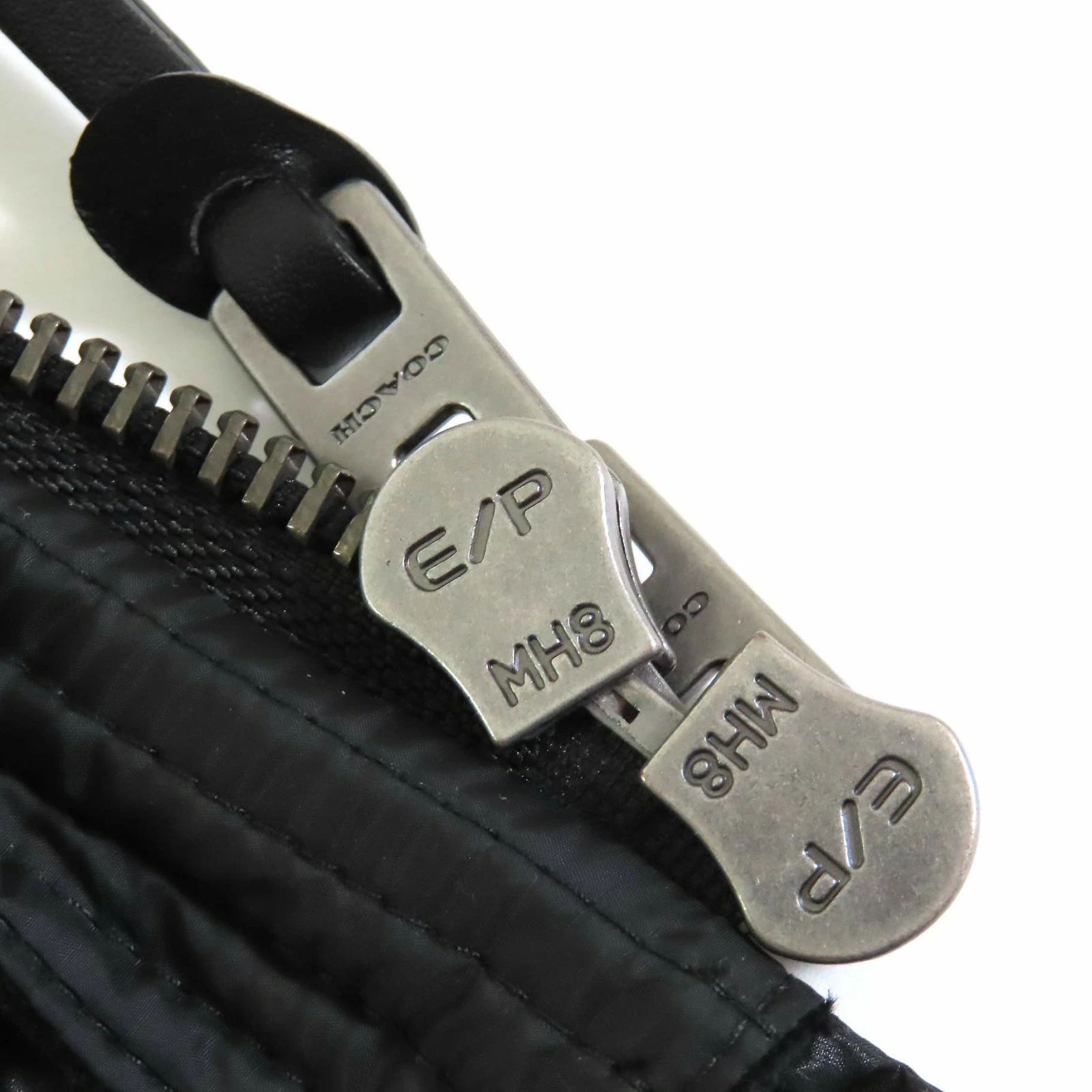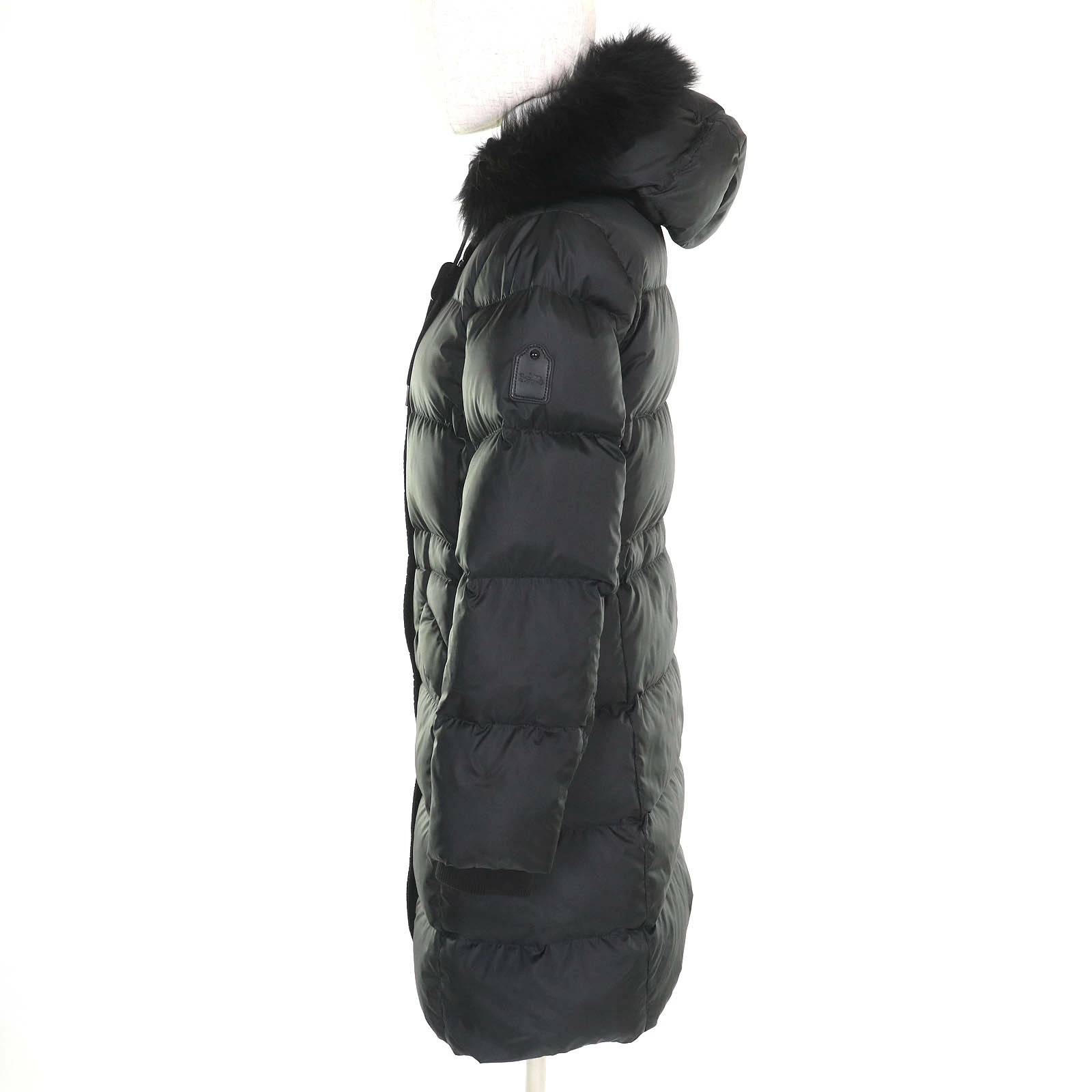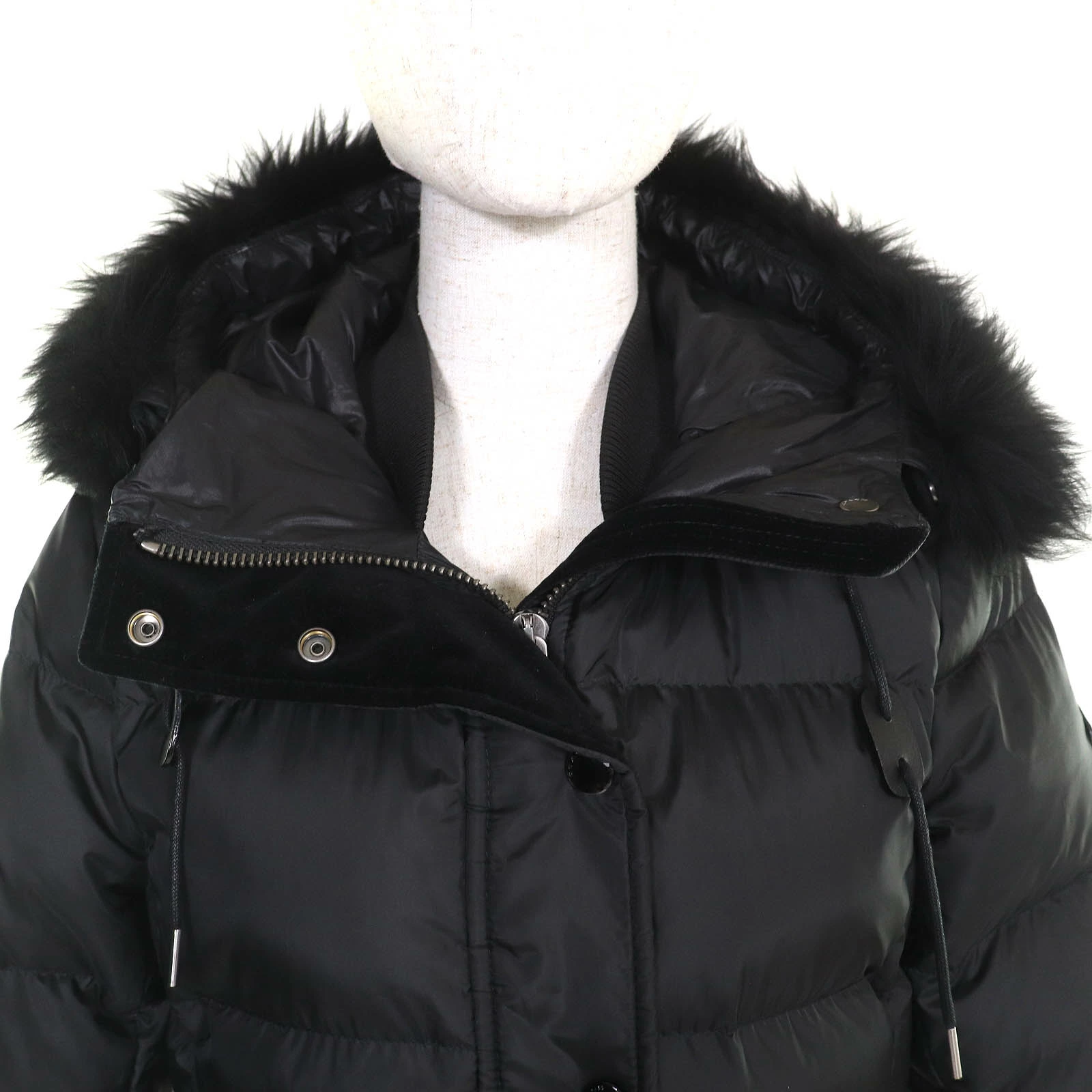 Excellent condition COACH E1602-10792 leather logo patch fur hooded zip-up down coat, black, size XS, authentic, women's [pre-owned]