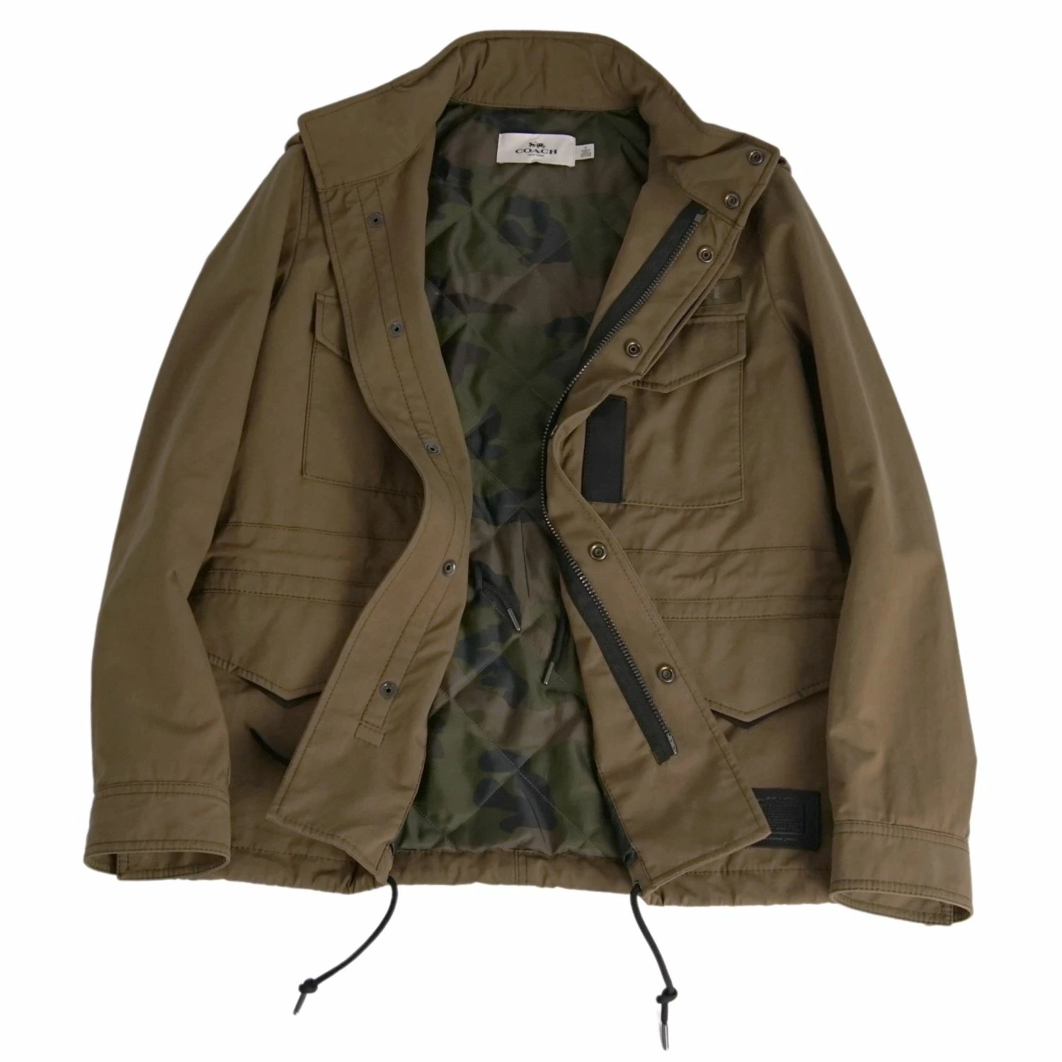 [Excellent Condition] Coach Men's Military Jacket, Padded Cotton, Khaki, Size M (Pre-owned)