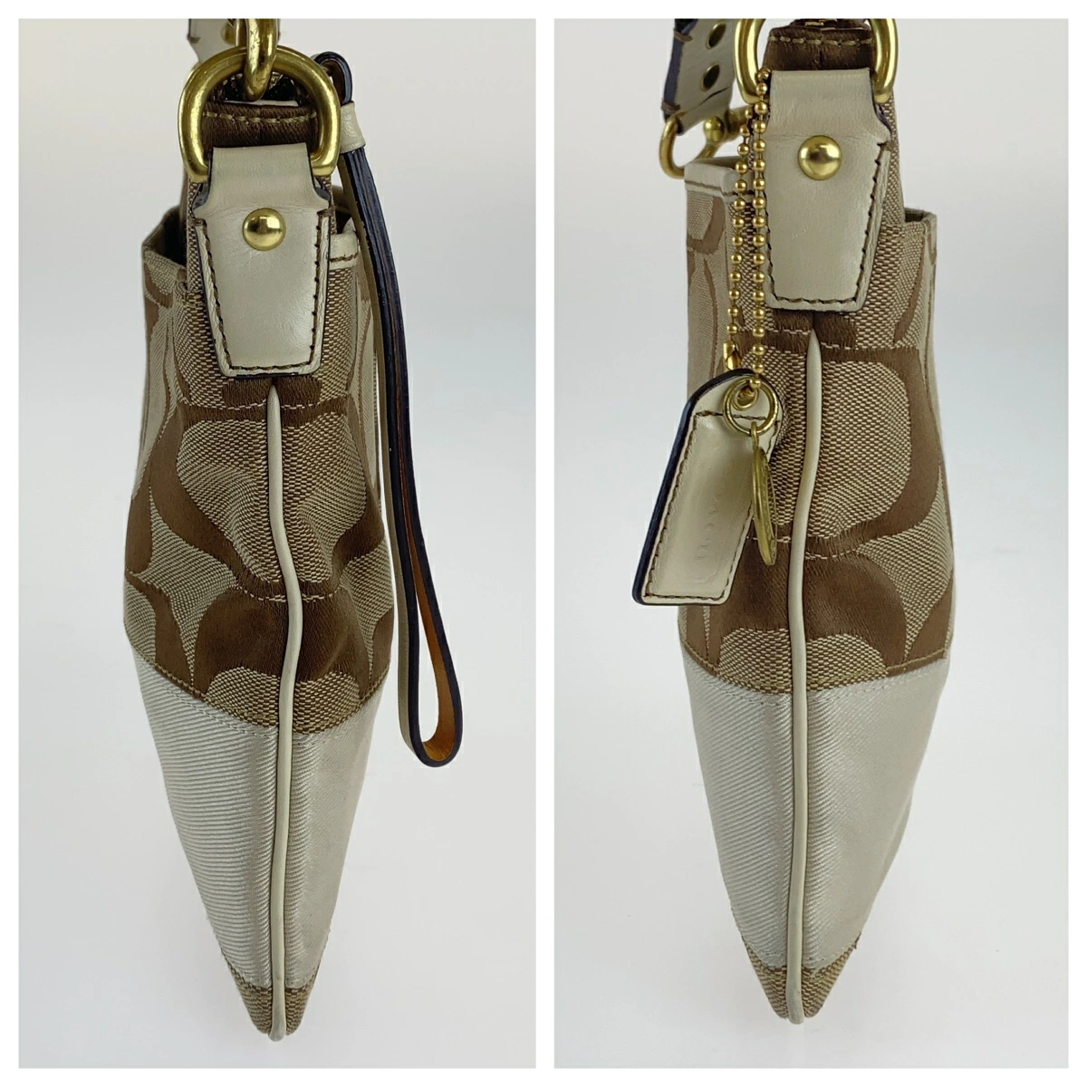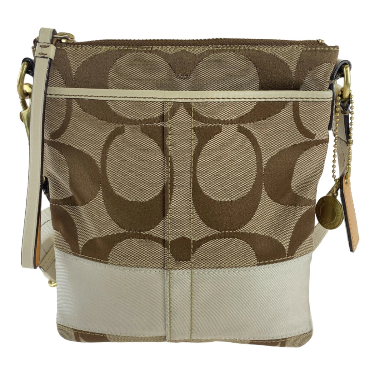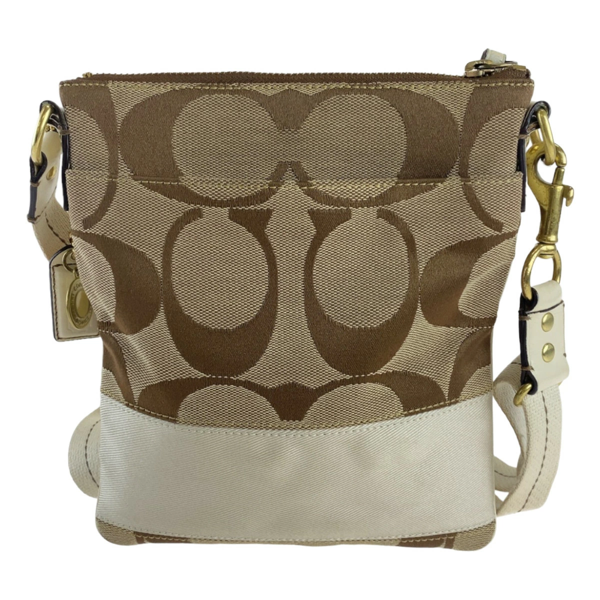 Excellent condition Coach Signature beige/white canvas/leather shoulder bag with gold hardware. Can be worn crossbody. Women's. 401952. [Pre-owned]