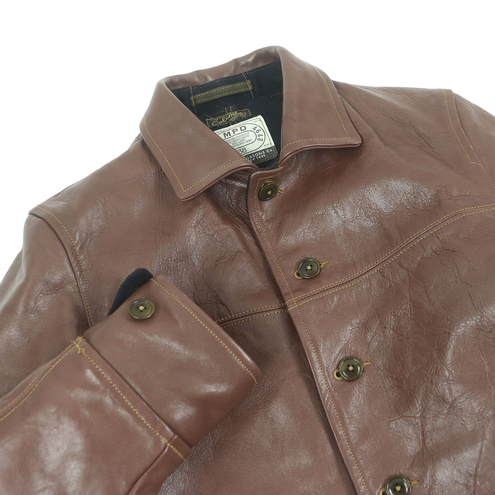 Excellent condition COLIMBO horsehide with wool lining, stockman's work coat, car coat, leather jacket, brown, size 38, recommended for men. Pre-owned.