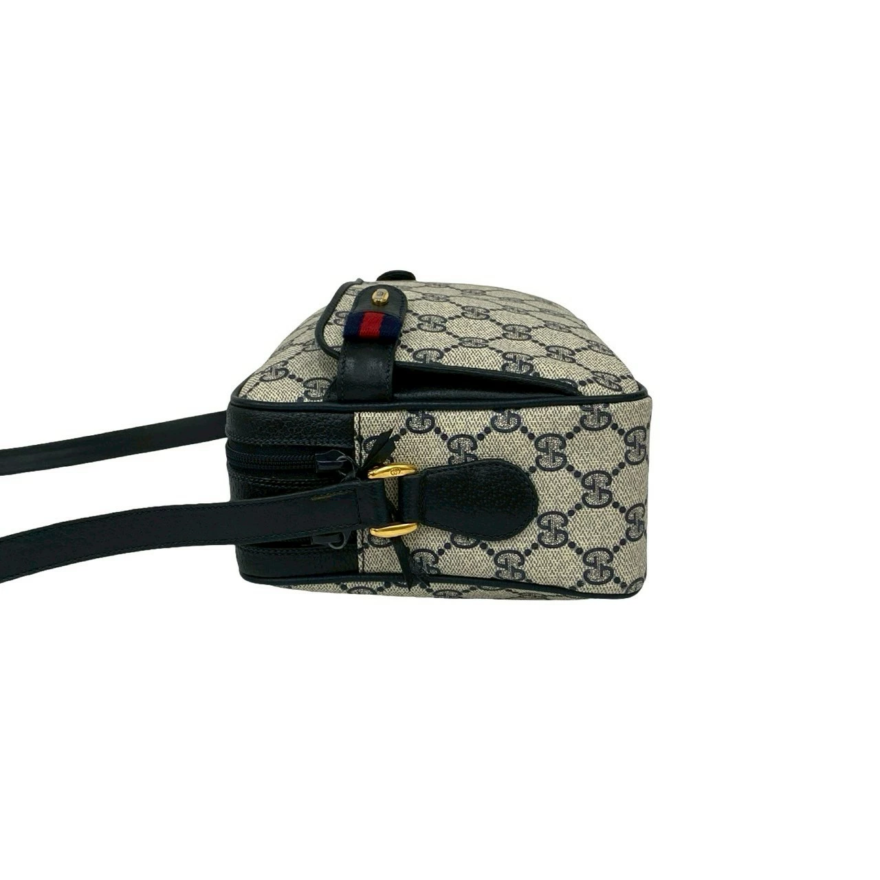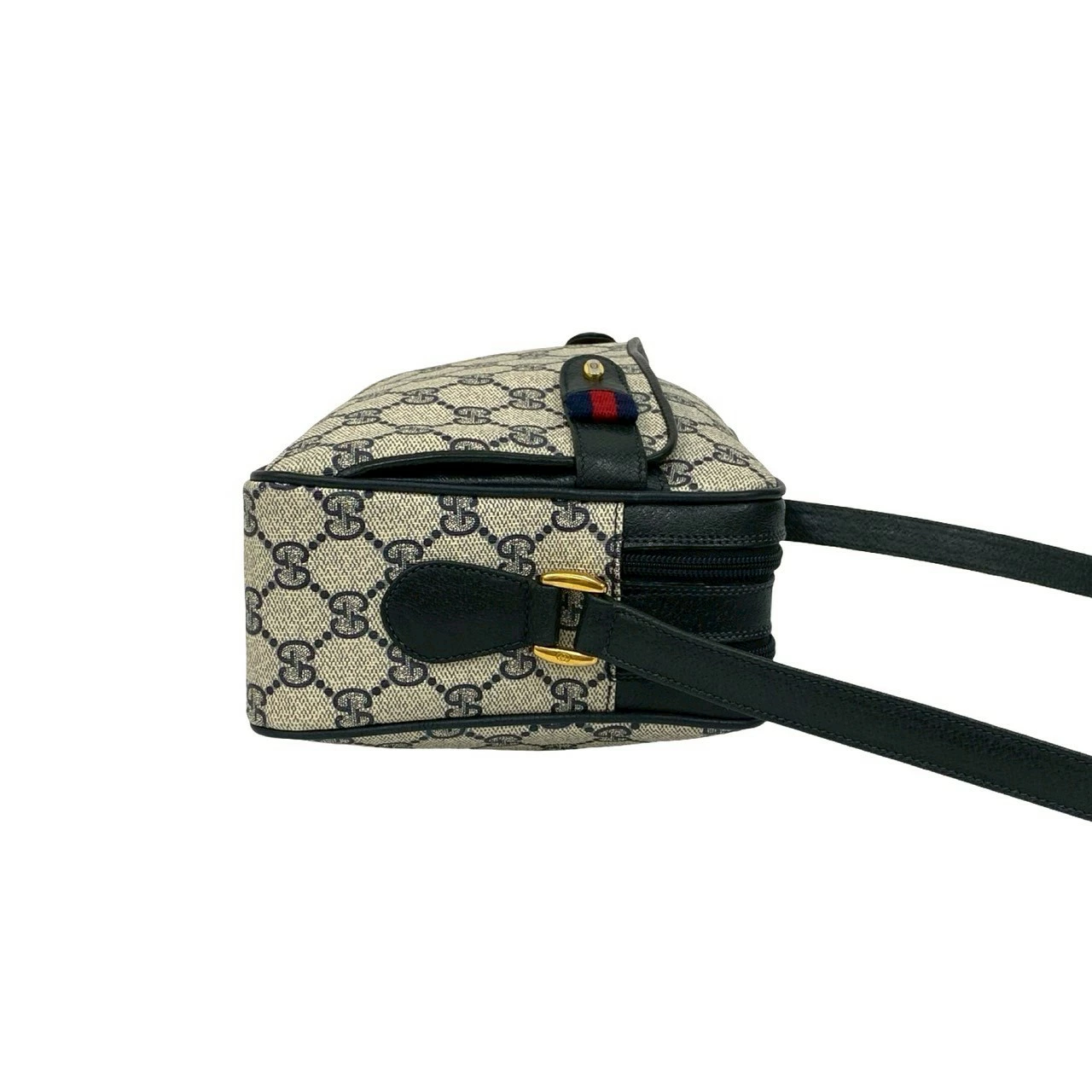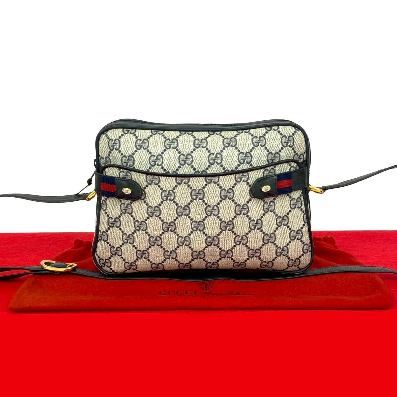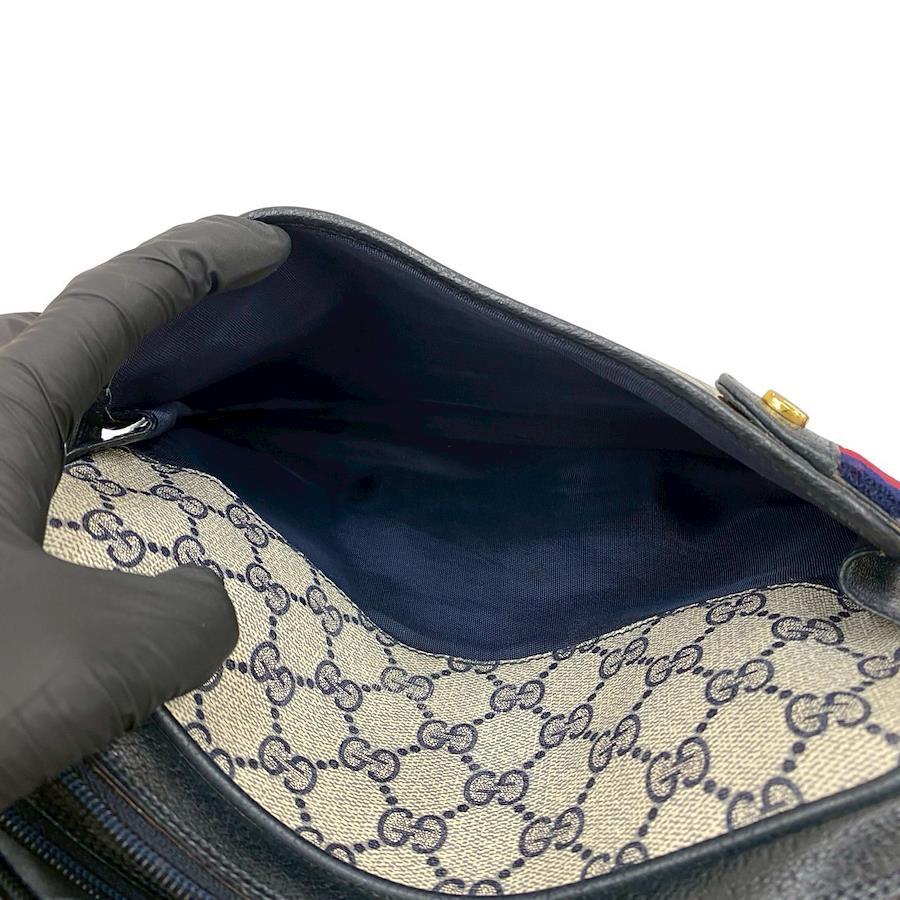 Excellent condition, comes with bag. GUCCI vintage Sherry line GG logo hardware leather shoulder bag, navy blue, 83341. [Pre-owned]