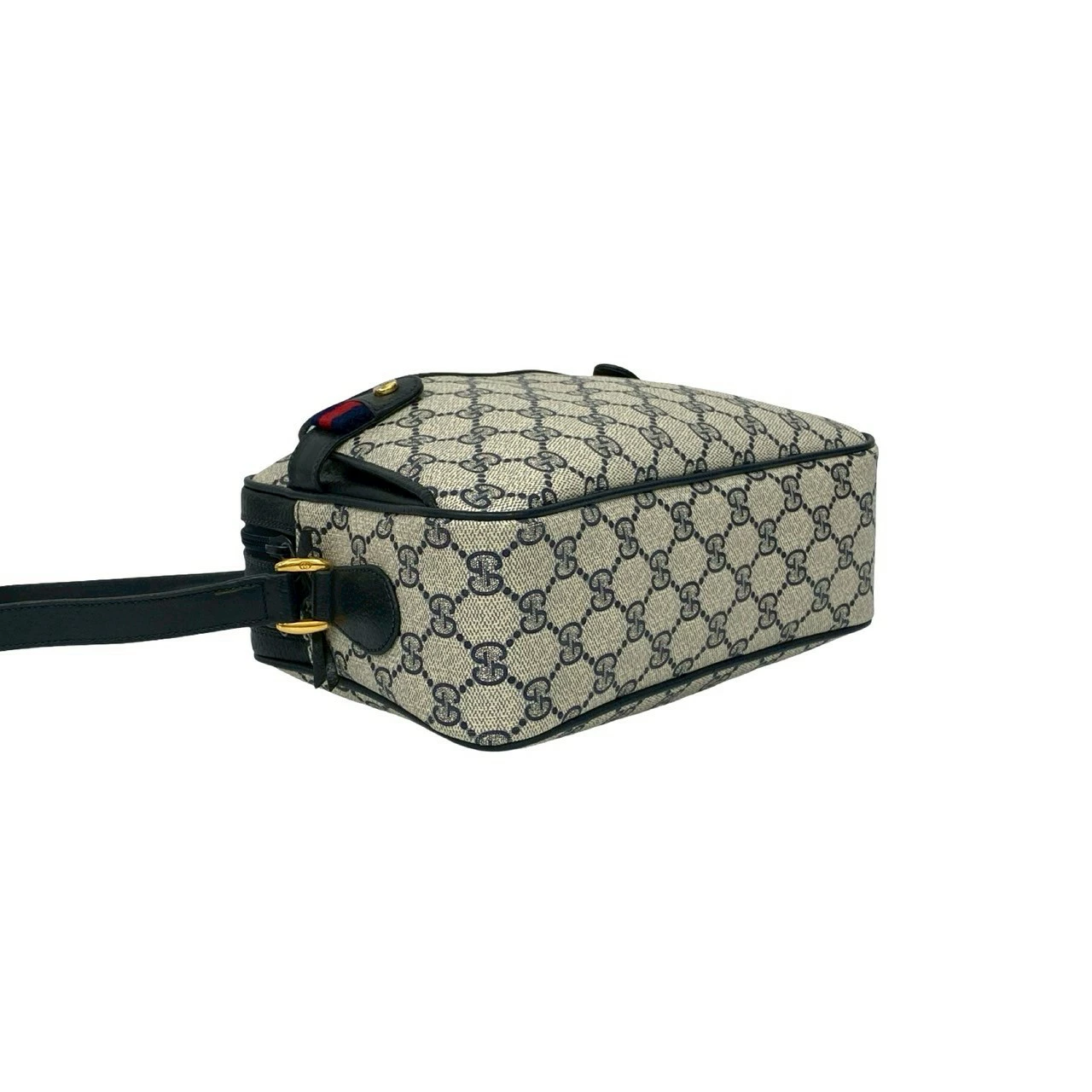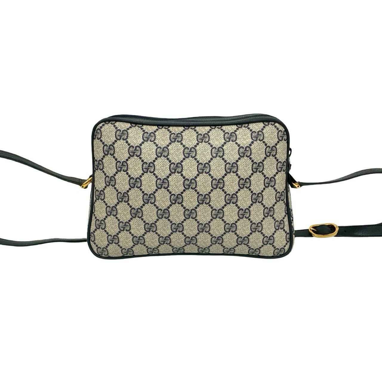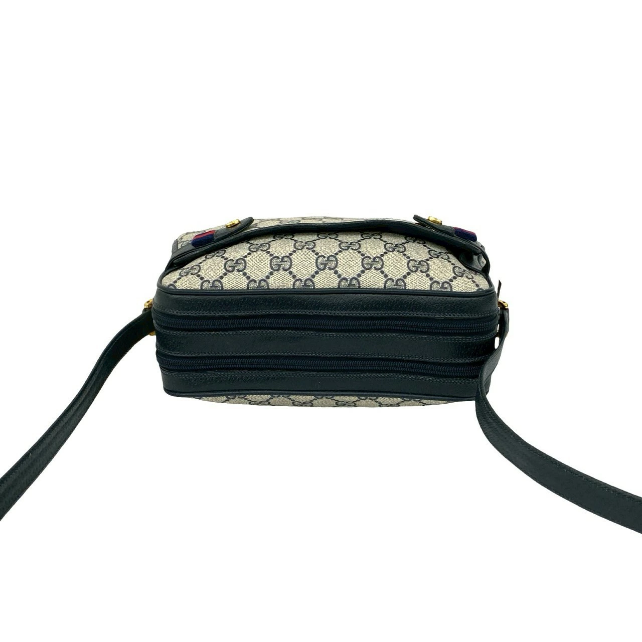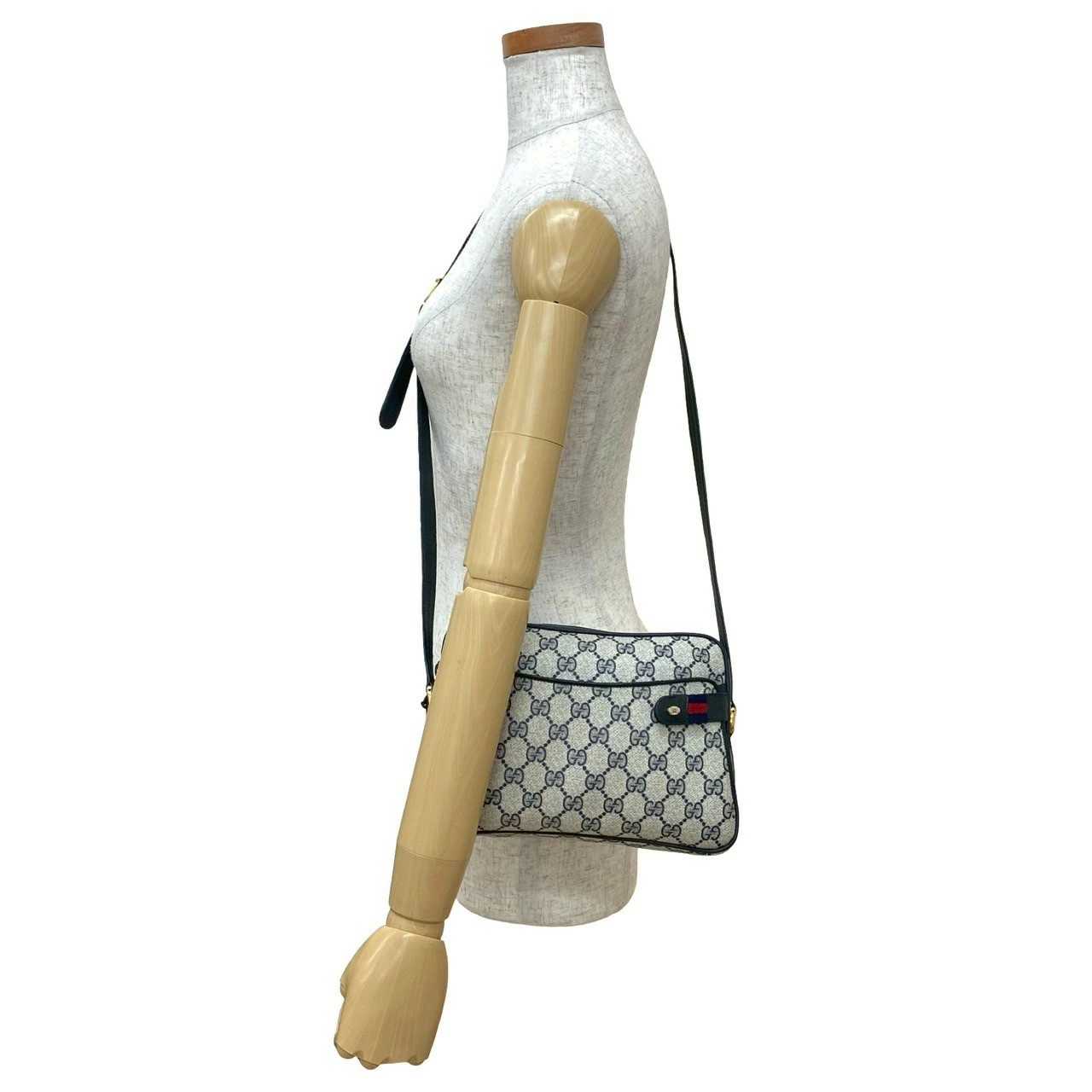 Excellent condition, comes with bag. GUCCI vintage Sherry line GG logo hardware leather shoulder bag, navy blue, 83341. [Pre-owned]