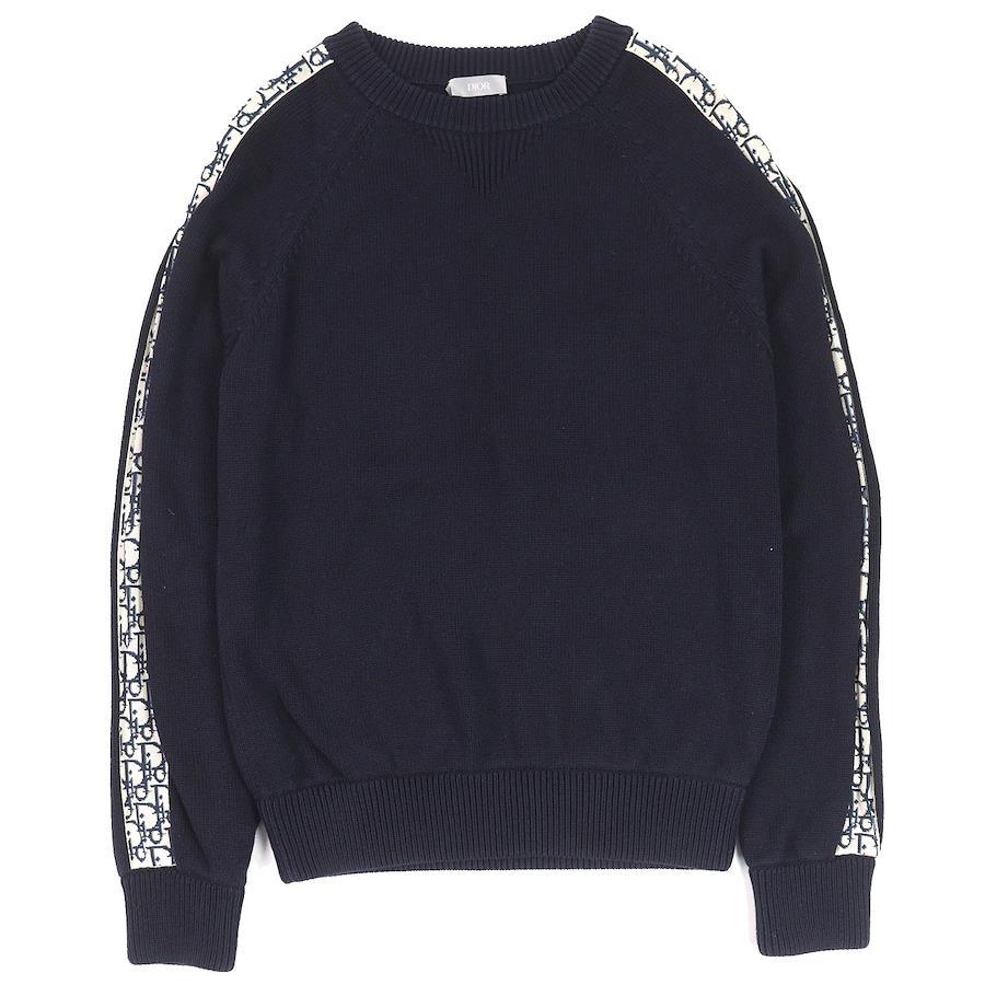 Excellent condition: DIOR Homme 113M638AT187 Cotton and Silk Oblique Sleeve Pullover Knit Sweater, Navy, Size XS, Made in Italy, Authentic, Men's [Pre-owned]