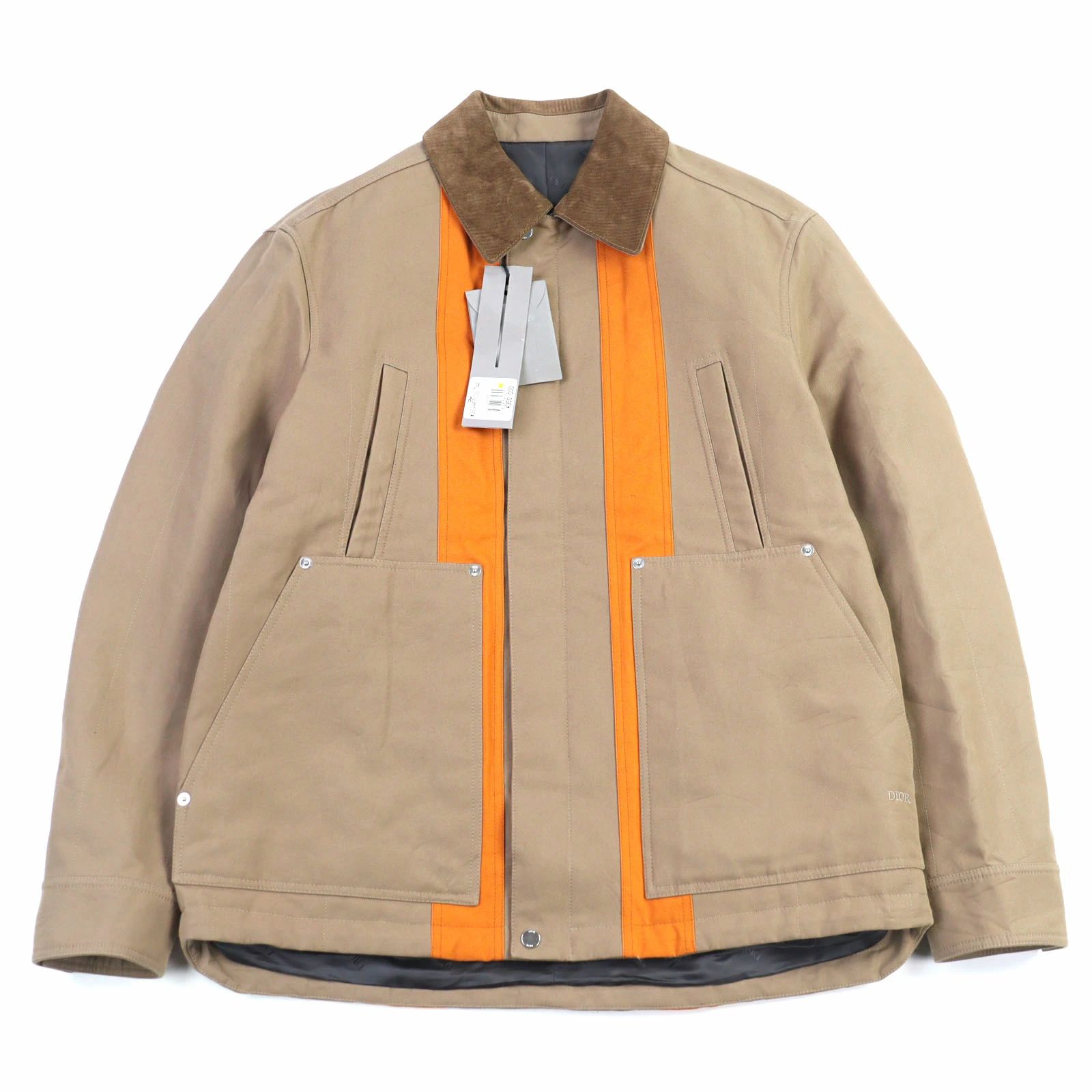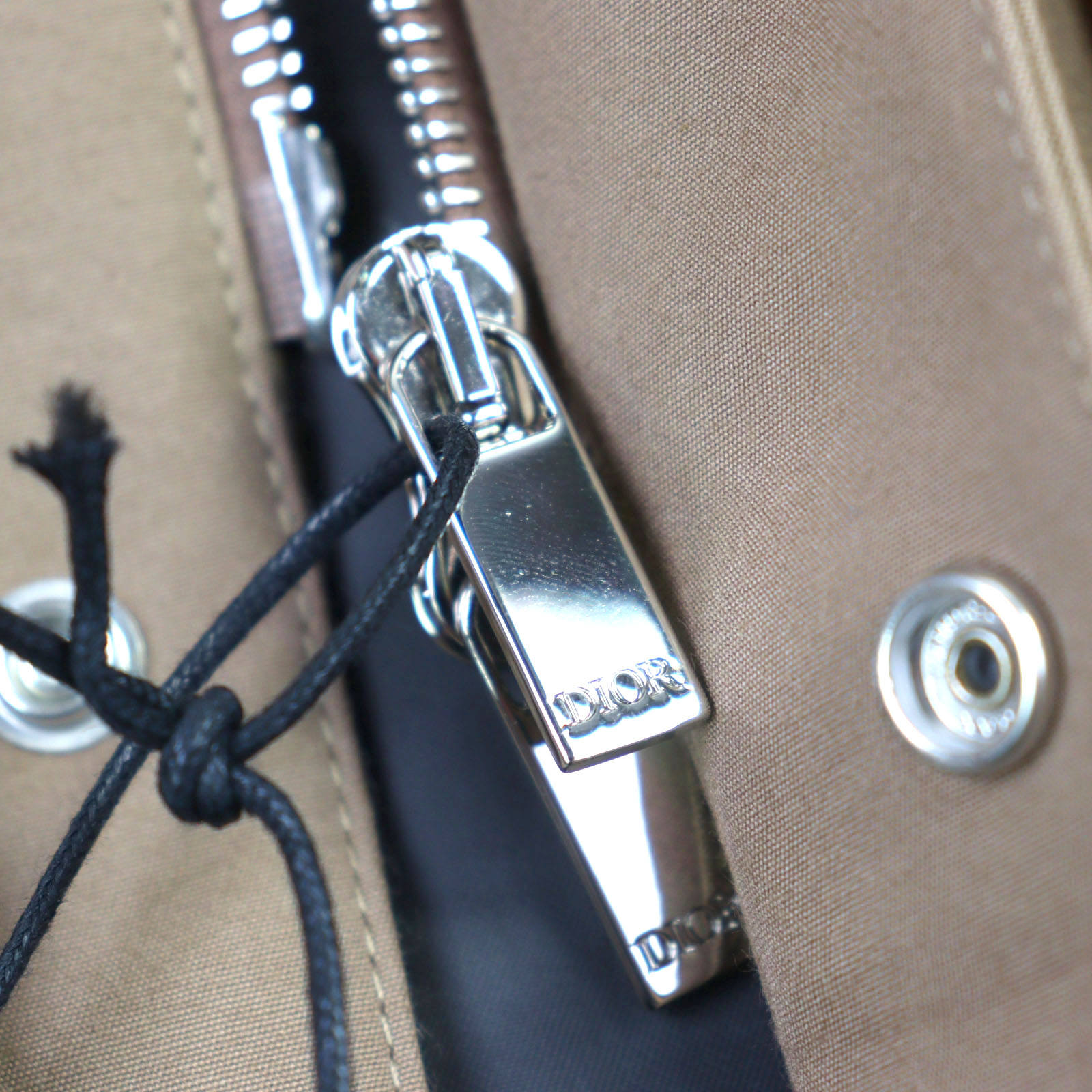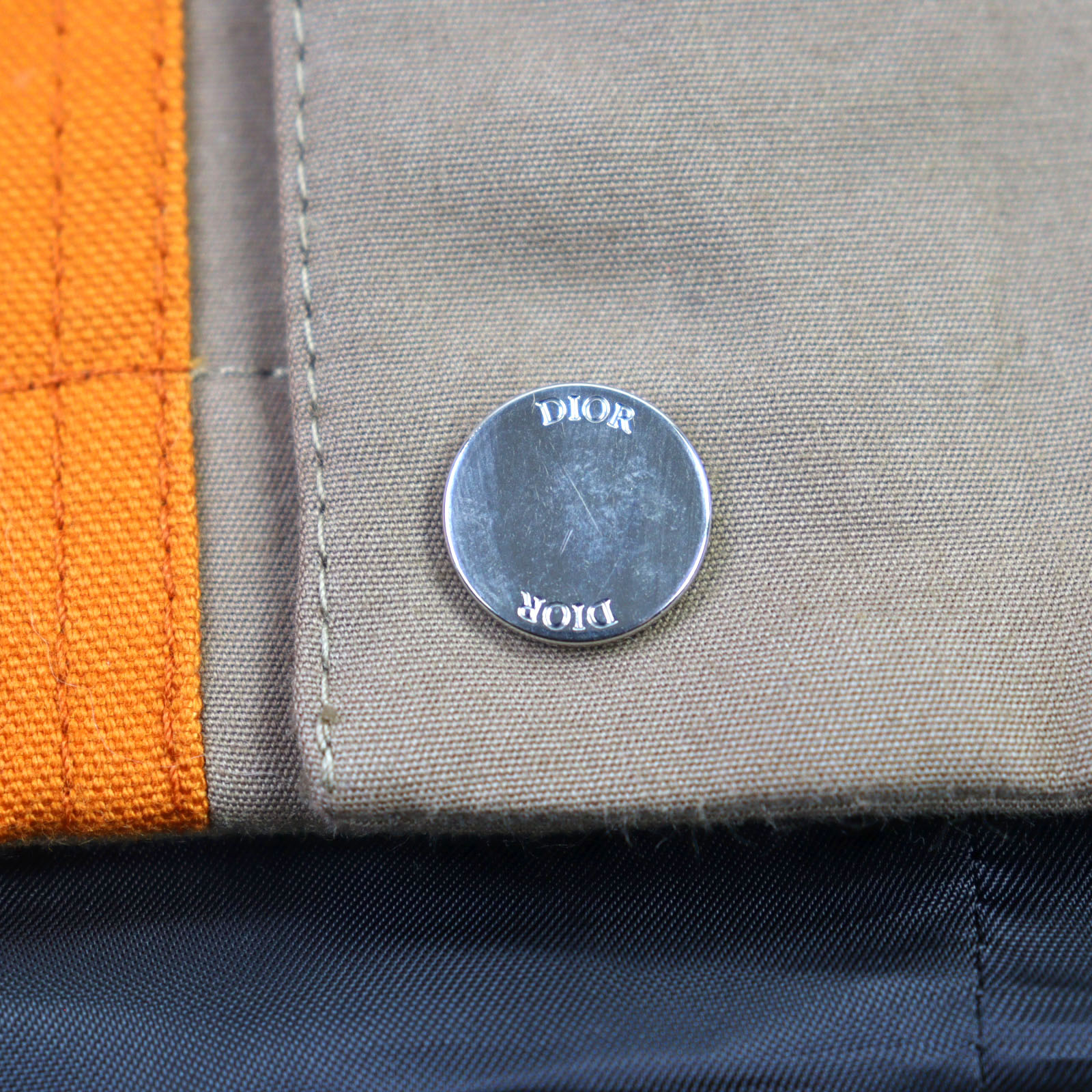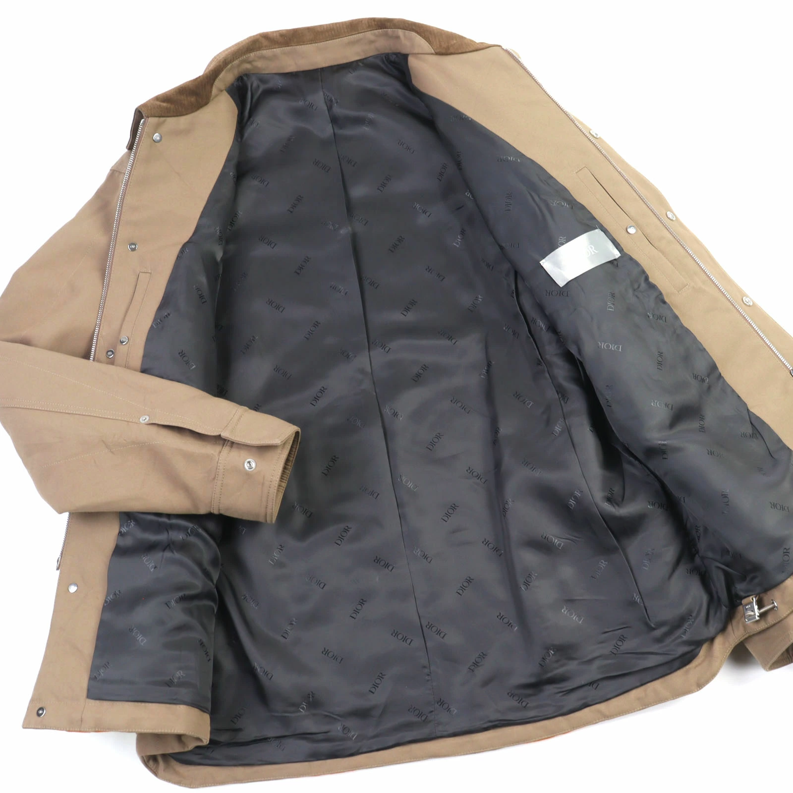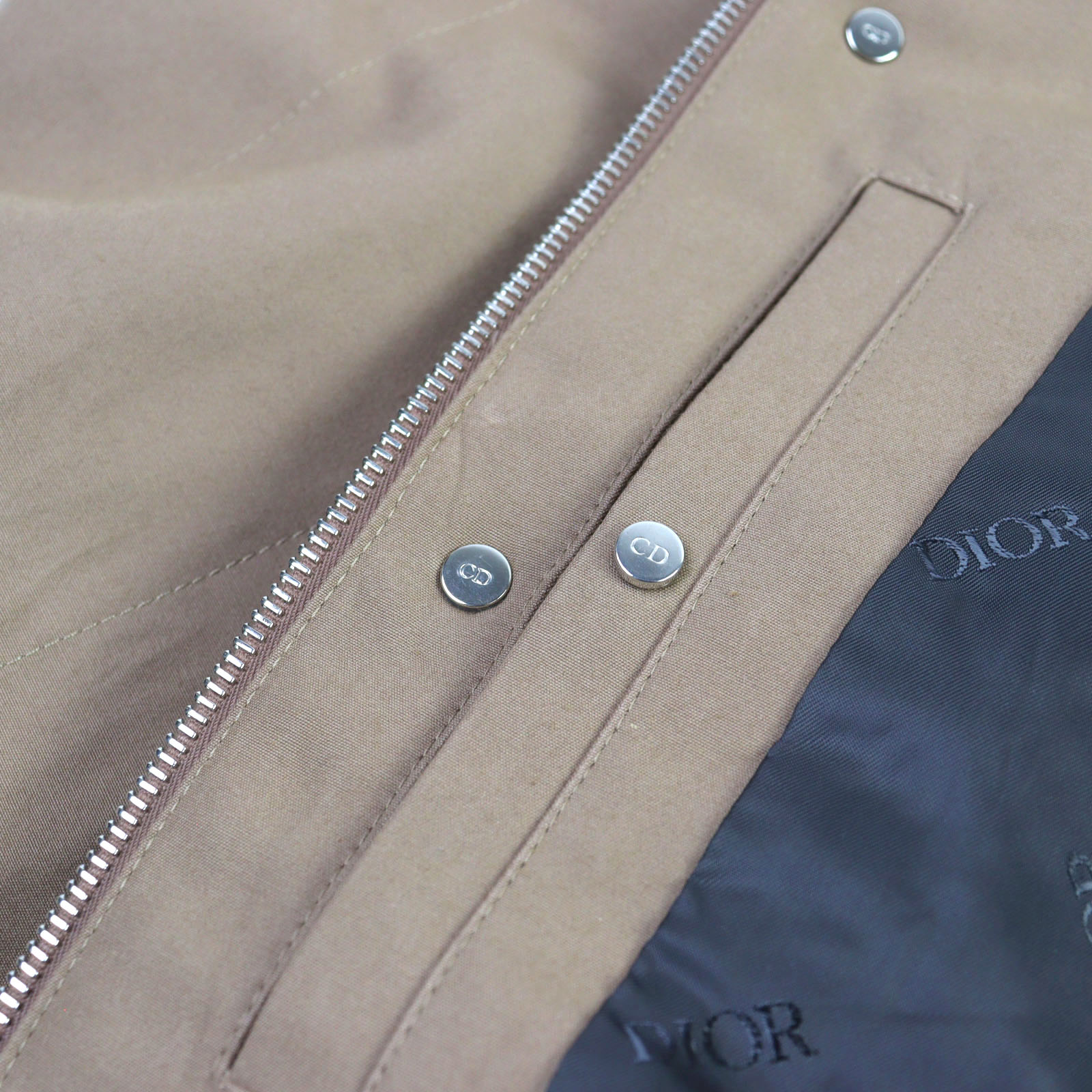 Excellent condition: Dior Homme 2022 model 293C404A5556. Features an embroidered logo and an all-over logo lining. Leather-colored cotton jacket/blouson in brown, size 44. Authentic, made in Italy. Pre-owned.